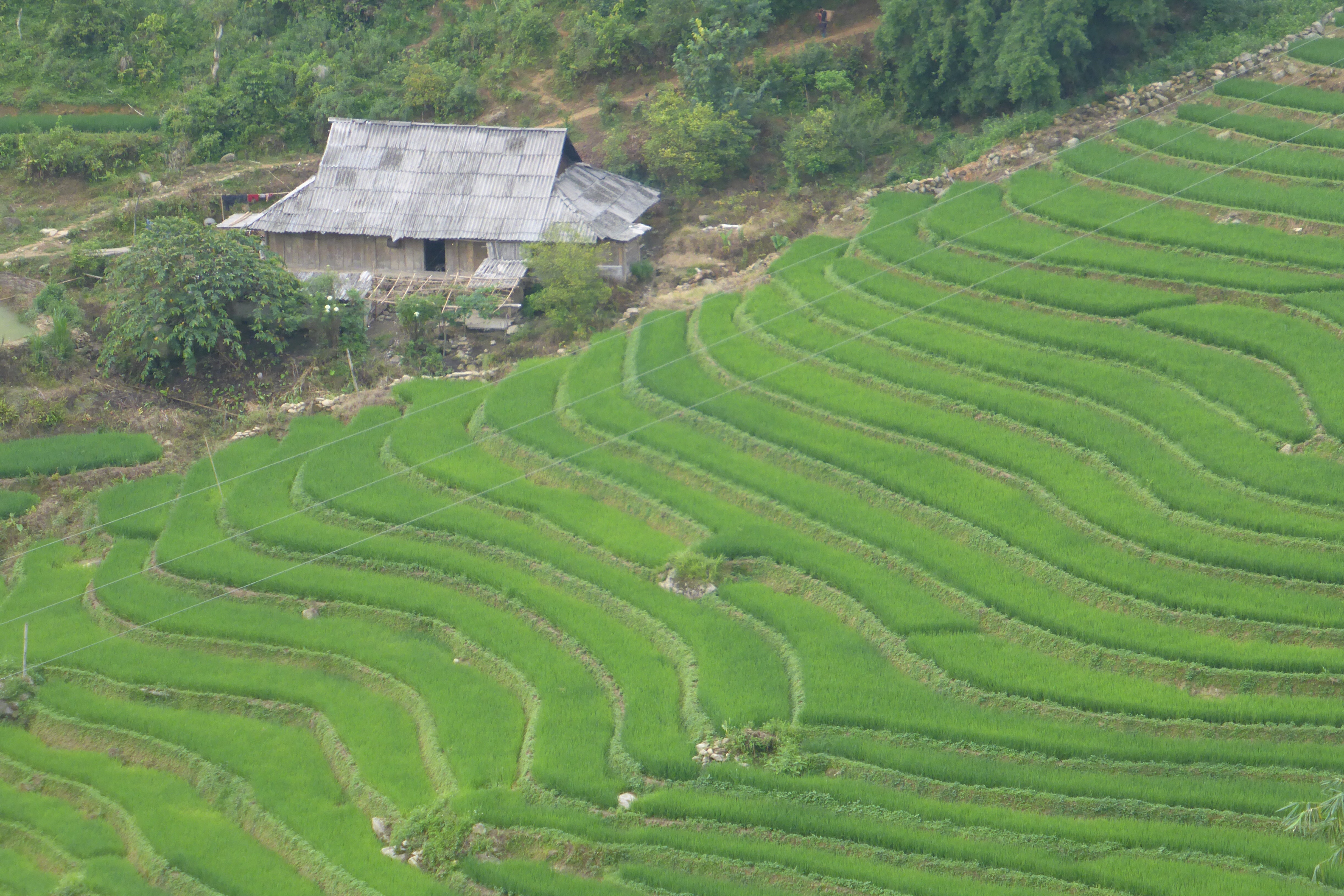 We reached Lao Cai on the Chinese border early in the morning. Our new guide How and his driver took us up a windy, hilly road into the mountains to Sapa. The journey took about an hour, but afforded us amazing views down into the valley. As we climbed higher terraced rice fields on steep mountain hillsides began to dominate the landscape. The vegetation was lush.