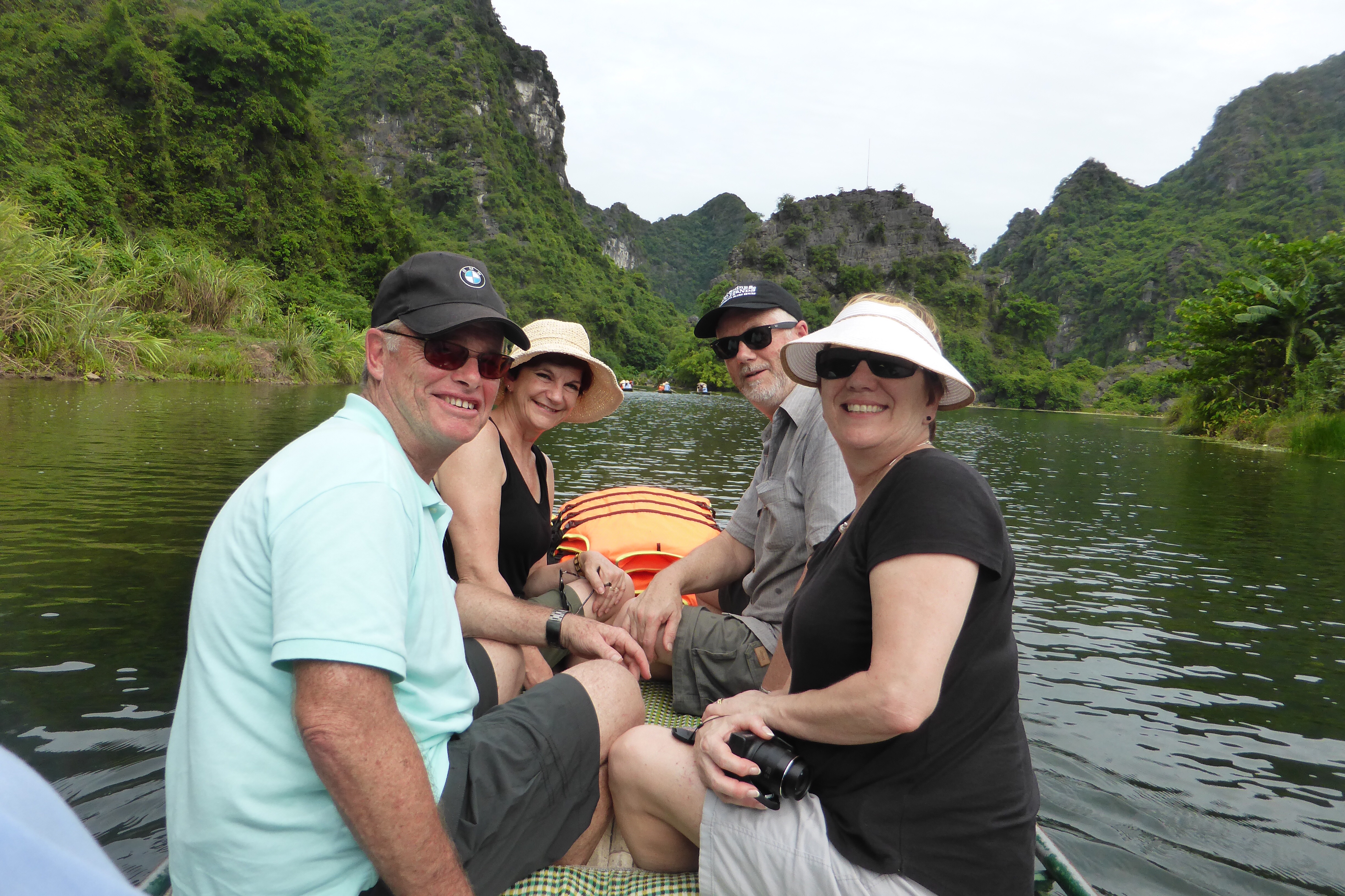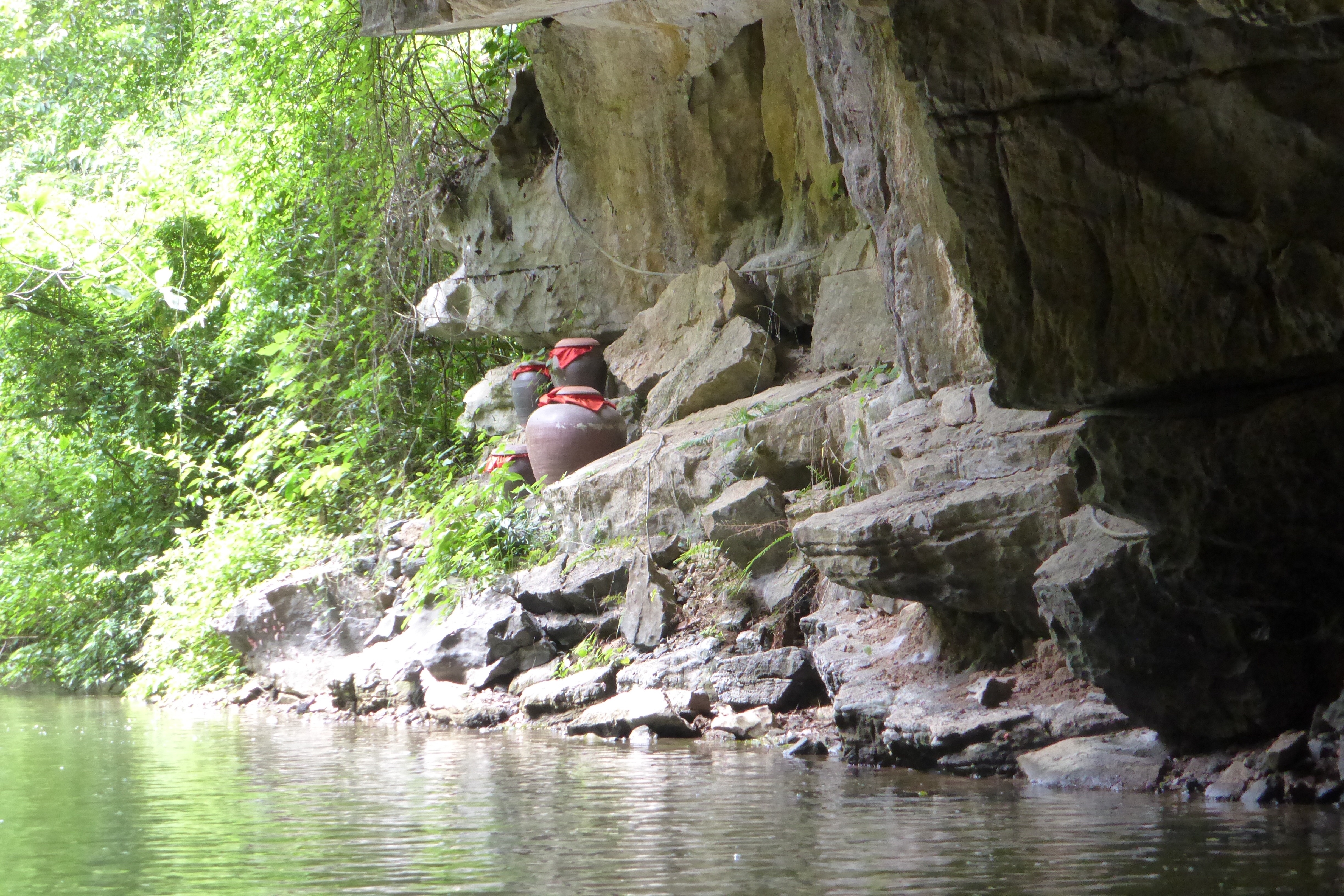 Passing through the grottoes was very peaceful, and each seemed to have its own character. They were illuminated with just enough light to see the shapes of the rock formations above our heads and the crystal salt formations that had taken shape over many decades. One grotto is famed for being the perfect temperature for the storage of rice wine, and there were several hundred clay jars of the wine neatly stowed there. The Trang An grotto complex has been a highlight of our trip to date.