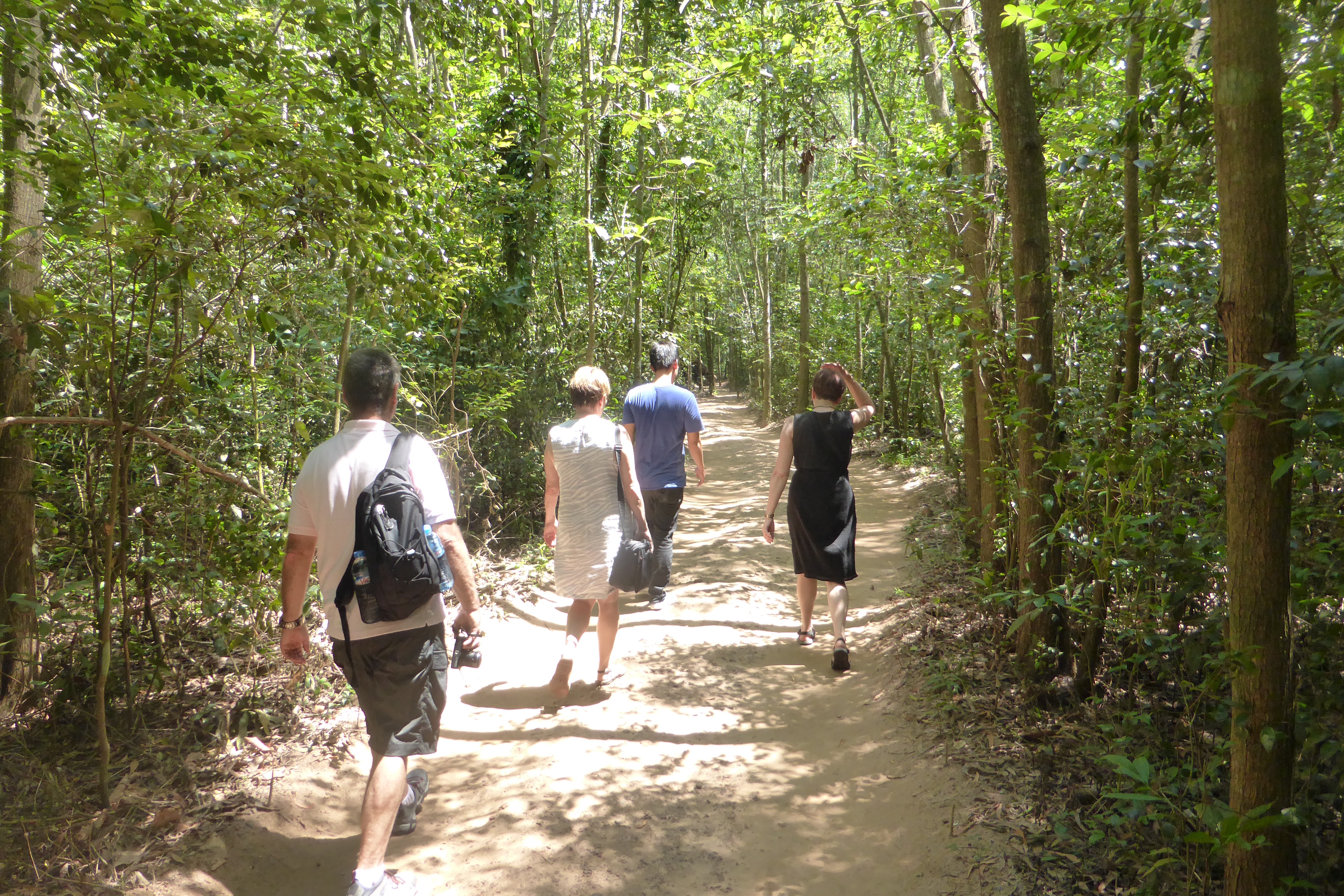 The network of tunnels near Cu Chi was a grim reminder of how difficult it must have been fighting a war where one of the enemy’s best strategies was concealment. The tunnels were originally dug by the Vietnamese as a defence against the French, but were then used as a key part of the guerilla warfare waged by the Viet Cong against US troops. The network extended for over 200 km and included living spaces, storerooms, kitchens, wells and medical clinics. They also had lethal booby traps, often using sharp spikes intended to impale the ‘tunnel rats’ of the US whose job it was to enter the tunnels and drive out the enemy. I had no desire to go down into the tunnels, as it was an extremely tight fit and I feared I would get stuck down there. I cannot imagine what it was like to live down there throughout a war. During our visit, there was the constant sound of rifle fire from the shooting range that gave visitors the opportunity to use real weapons and ammunition to fire at targets. Heading back to Ho Chi Minh City, we passed a number of war cemeteries in the fields along the road.