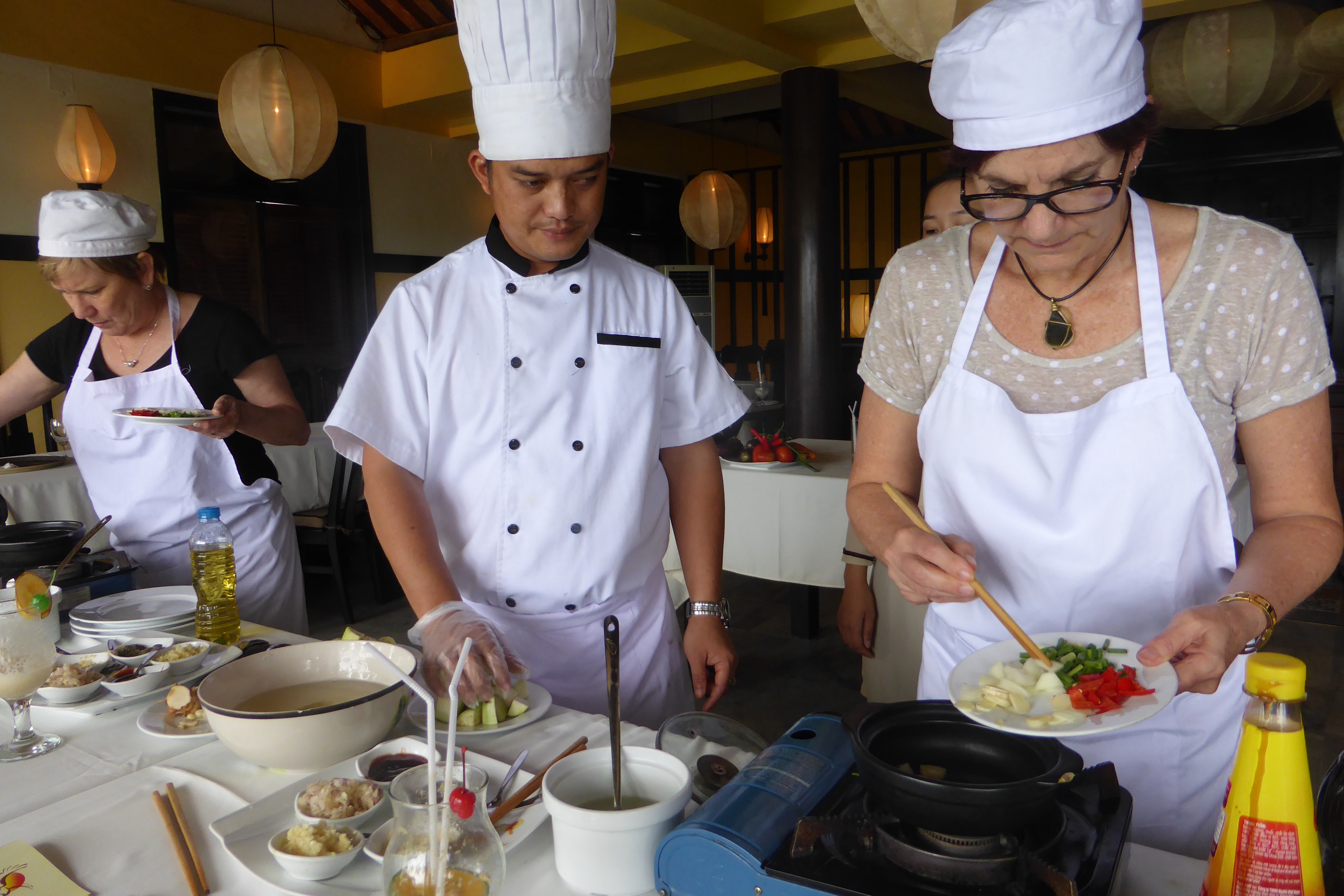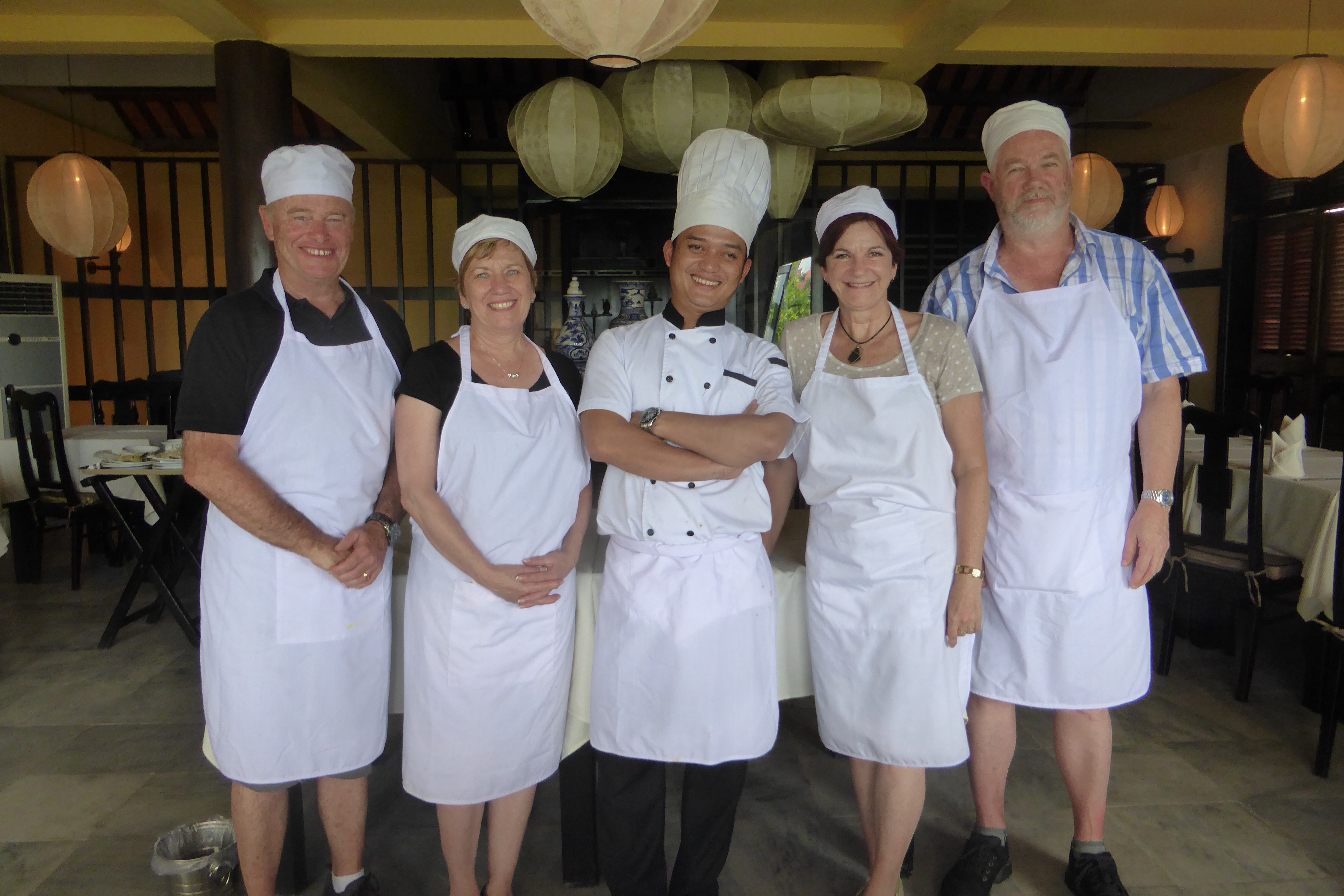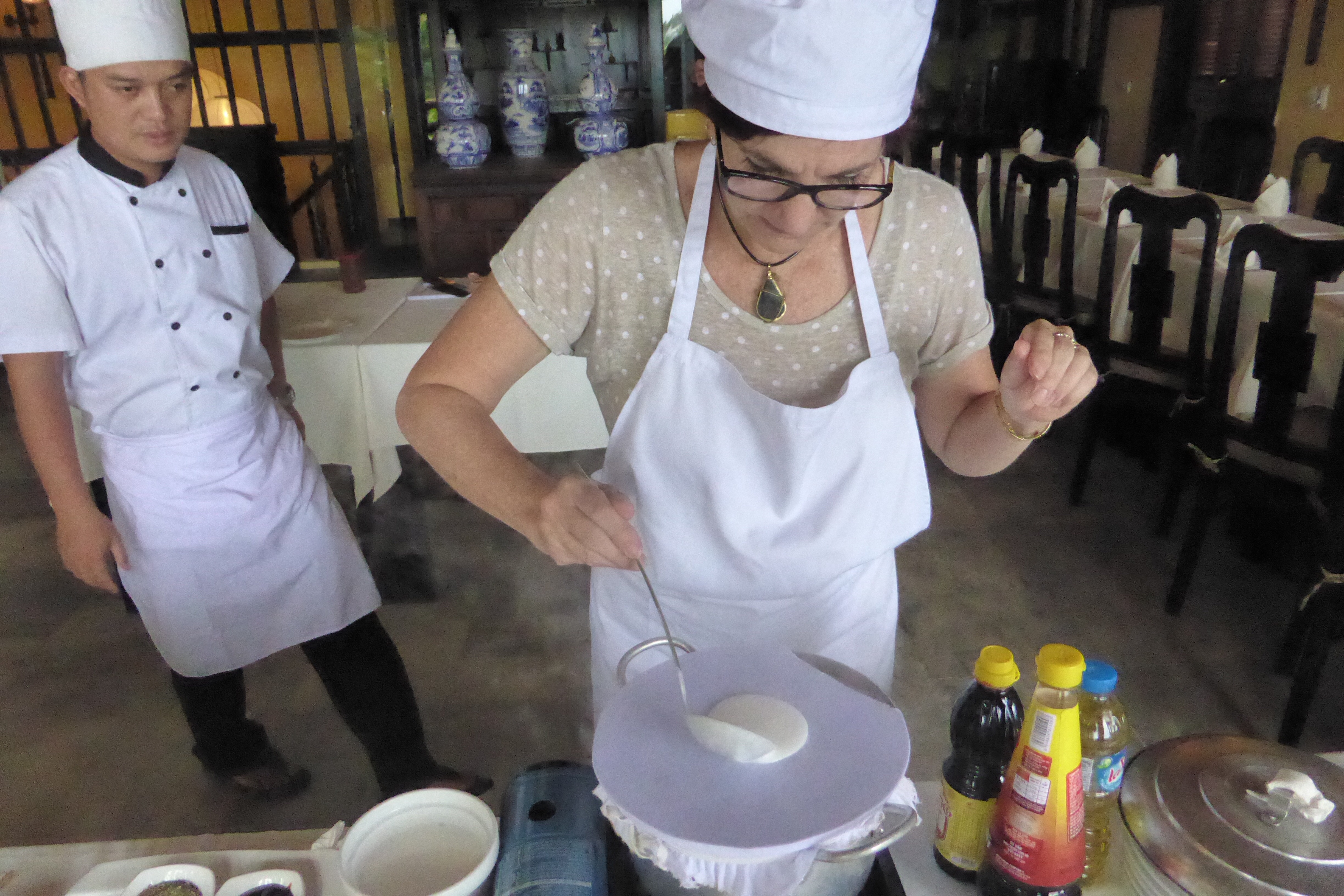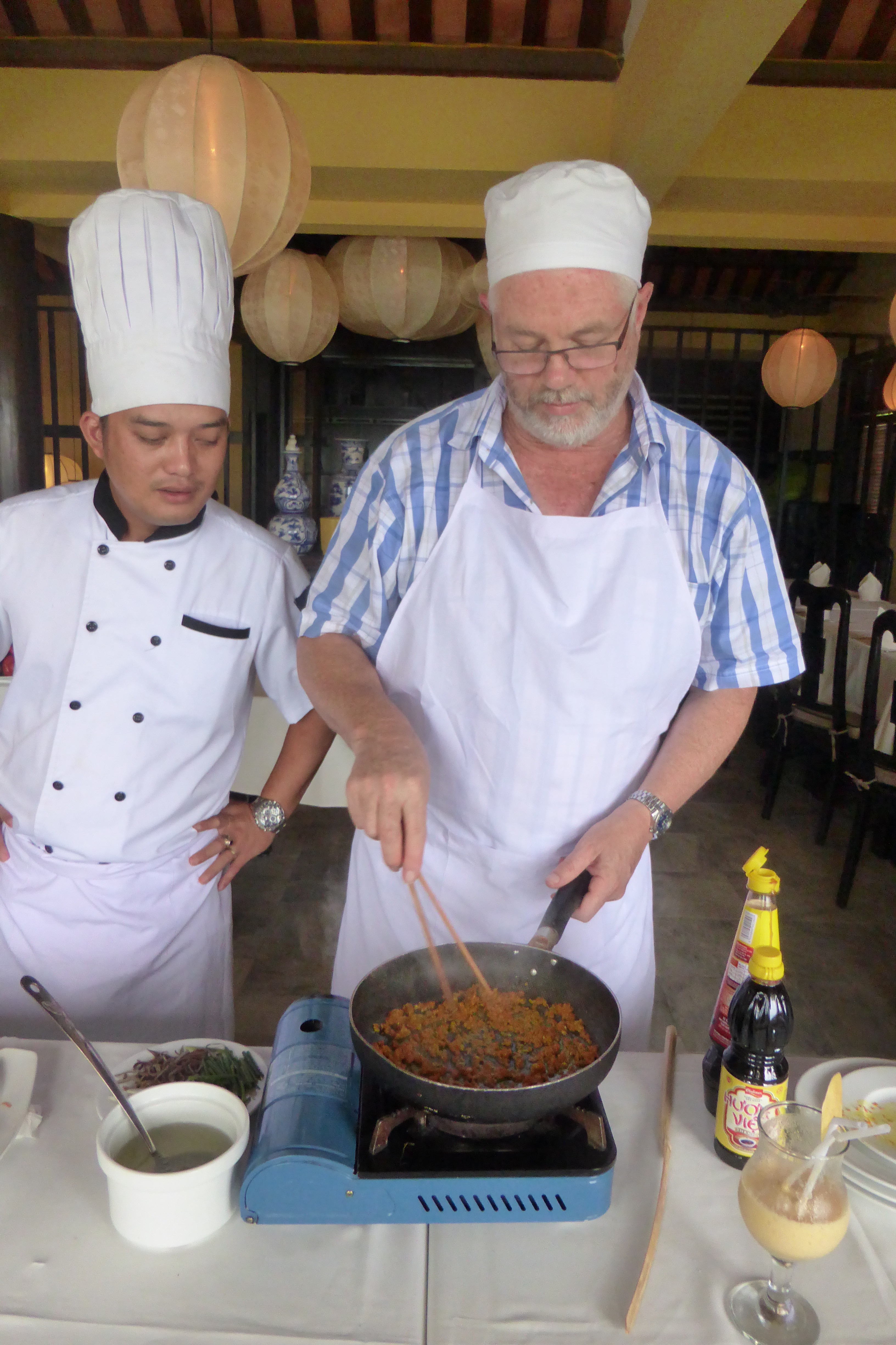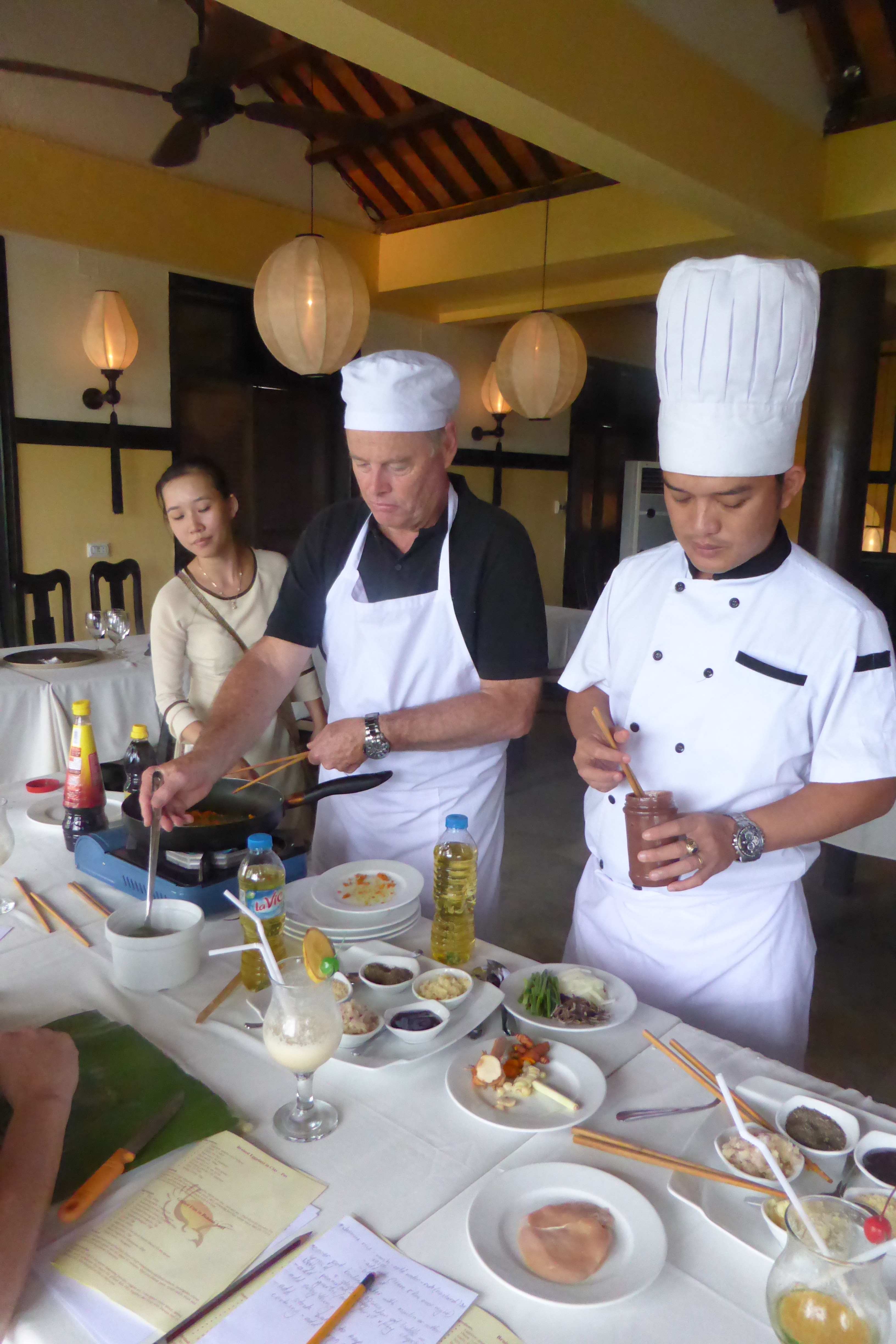 The eggplant and fish dishes were also not too difficult to make, though Viet combines comedy with cooking and this often made getting the recipe right just a little more challenging. He finished by teaching us how to peel a tomato and use the peel to make a perfect tomato rose. Marg’s was perfect – mine was a mess! This was a lot of fun and I’m hoping to use some of the knowledge I gained in my own kitchen when I get back home.