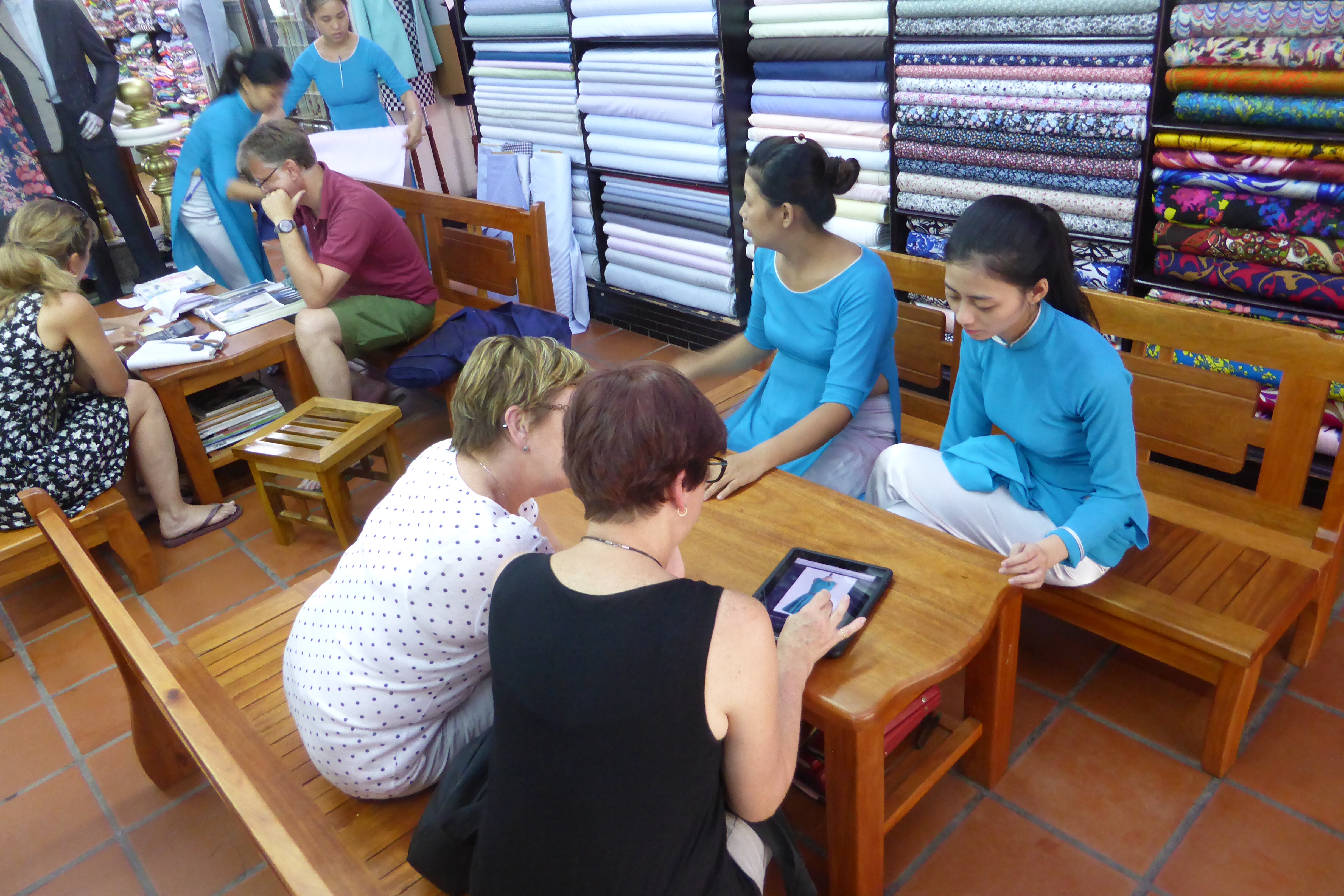 One of the first things we had to do when we reached Hoi An late in the afternoon was visit a tailor. Hoi An is noted for its quality clothing at good prices and if we were to buy anything, it would need to be ordered upon arrival so that it could be made up and delivered before we left the city. My companions left the shop disappointed with the range of products on sale soon after, which took a bit of pressure off the credit card bill.