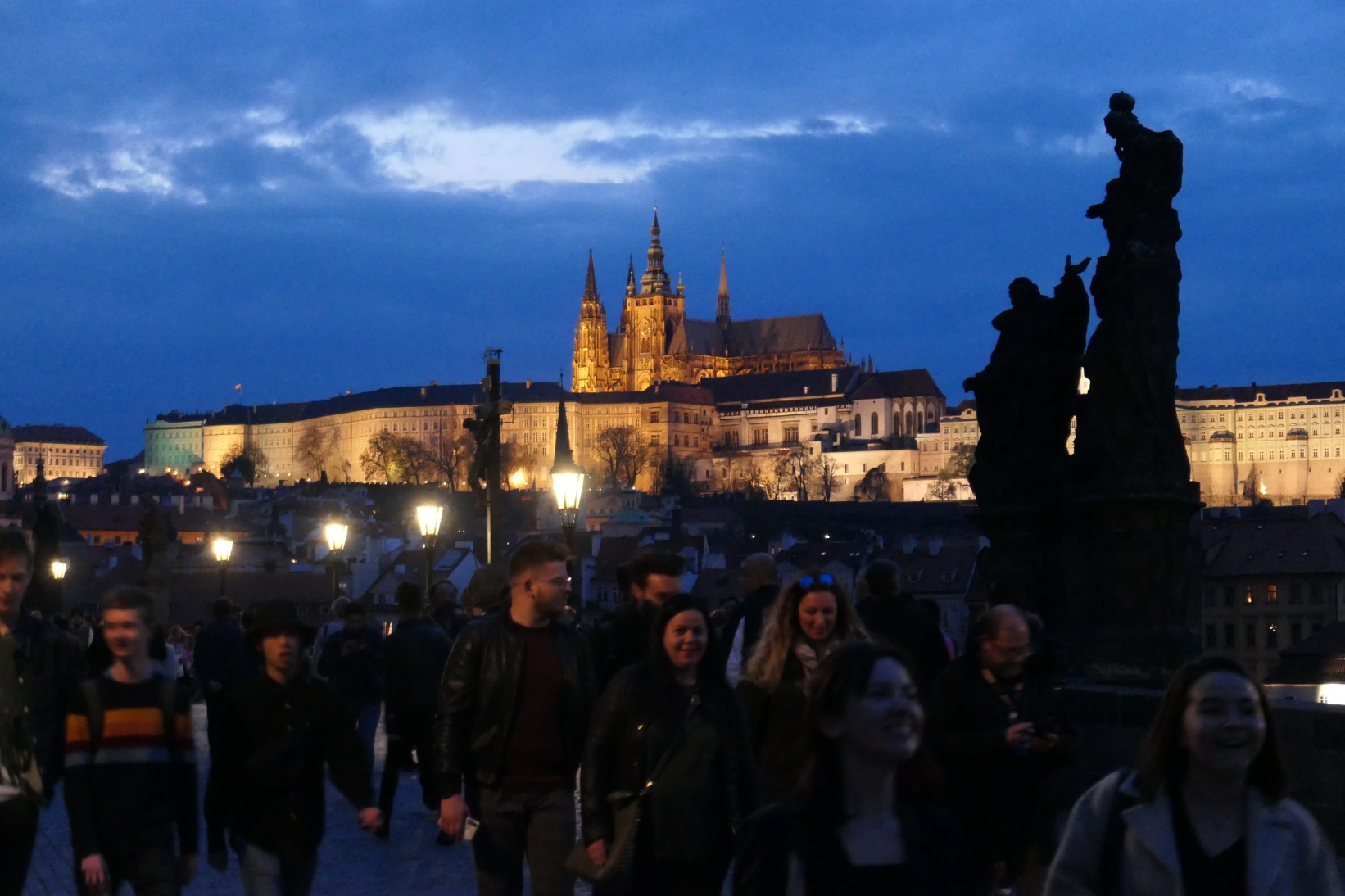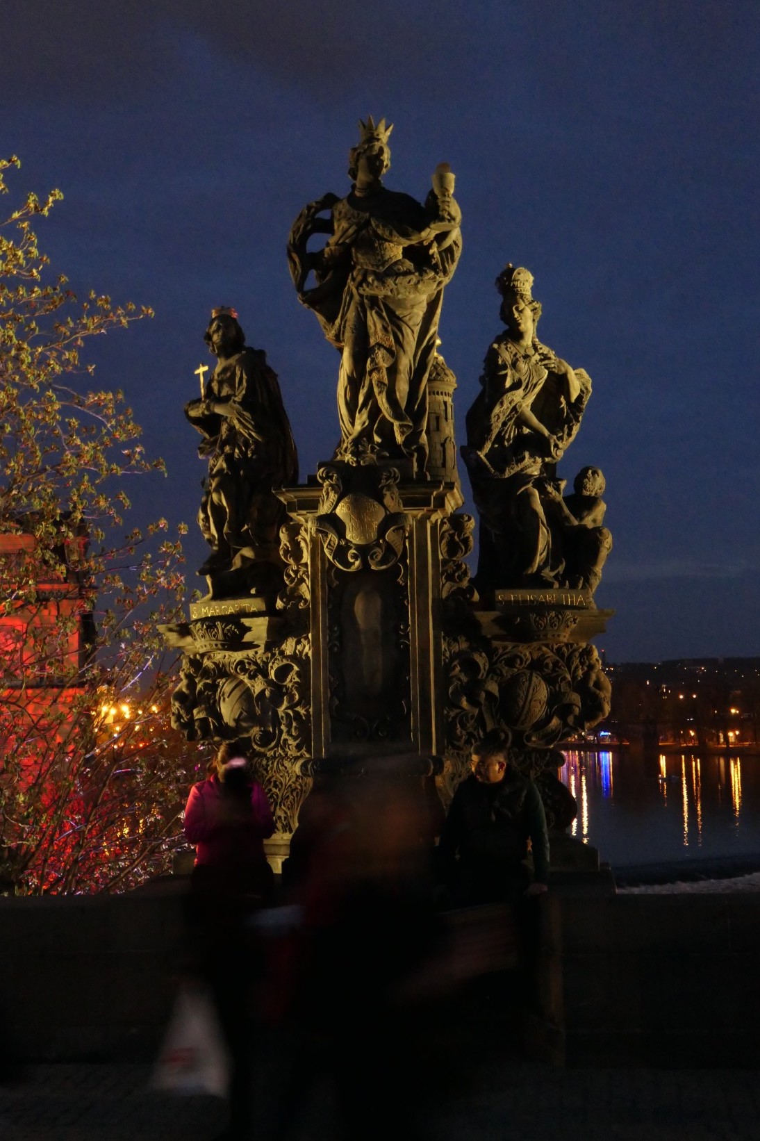 Later in the evening we went for a walk around the Old Town. The lights came on to illuminate the streets, the statues on the bridges, and even the castle on the hill. It was a fitting way to end a really good day. And my Fitbit registered 29,000 steps – not bad for an old bugger like me!