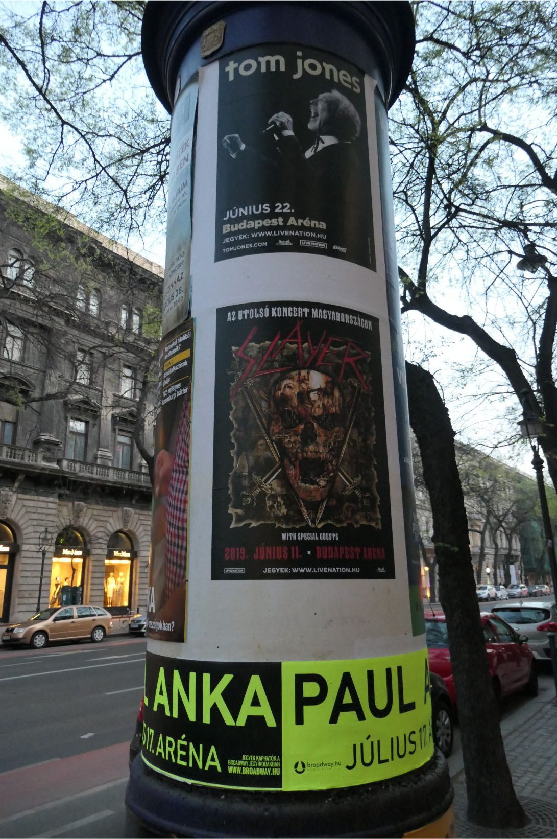Three upcoming concerts were advertised. Which one would I choose? Paul Anka? I thought he died years ago. He’s the guy whose song became a hit, believe it or not, for Ernie Sigley and Denise Drysdale. Slayer? Ah no, I’m no headbanger. But I’ll bet some of those beer drinking Brits in Prague would have bought tickets if they were in town, providing of course that beer would be served in the stadium. So I guess it would be Tom Jones, who at least was cool enough to record with Van Morrison. And Green, Green Grass of Home would be very fitting, as the Hungarian fields we passed through on our earlier train journey were a brilliant shade of green.