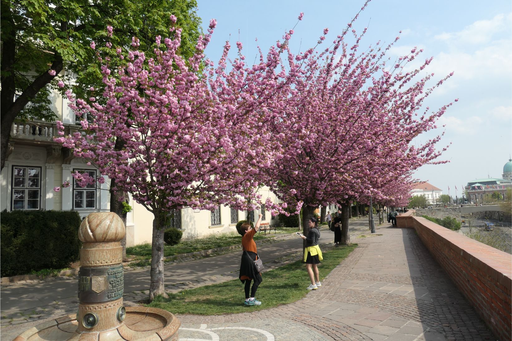 We took a bus up to the first stop and walked from there. The pink blossom trees lining the castle wall were all in bloom and quite beautiful. I took some time to visit the Hospital in the Rock, a WWII hospital that was constructed in the labyrinth of caves directly beneath the castle. As the Russian troops laid siege to Budapest and inflicted massive casualties on the Hungarian soldiers and their German allies, the number of patients in the subterranean hospital seeking treatment swelled into the hundreds.