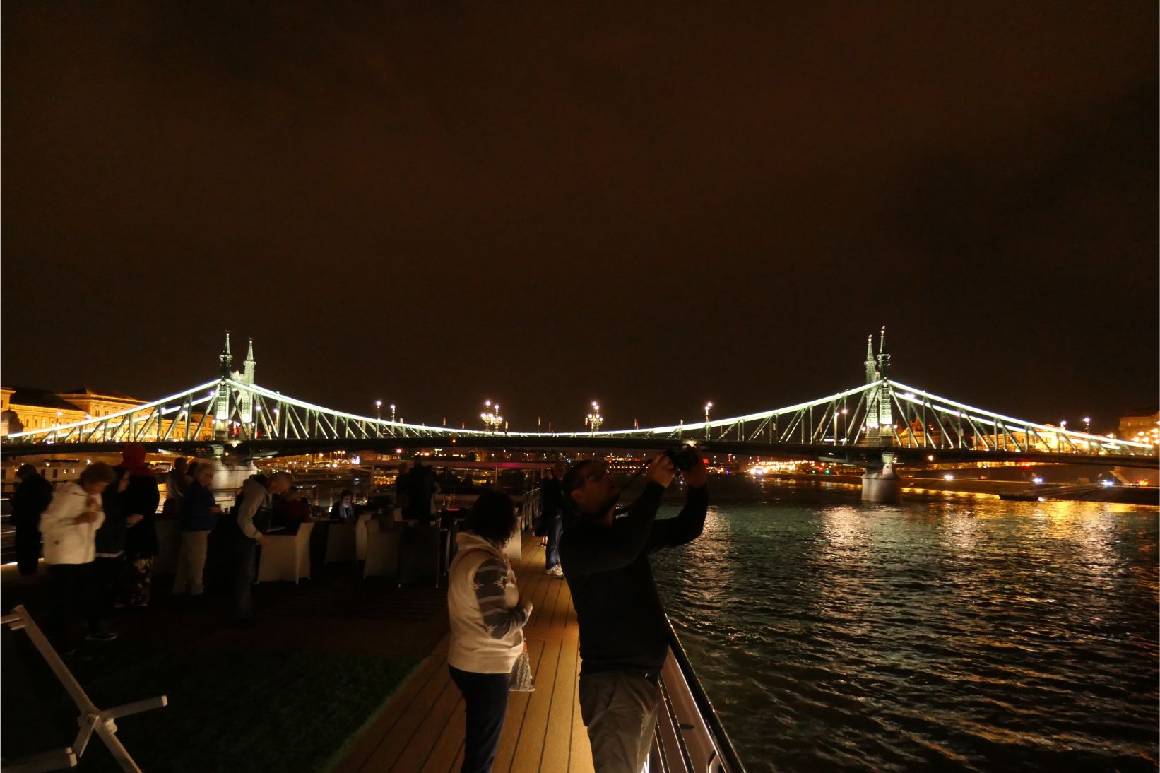 Back on board we sat down in the lounge for a drink. It didn’t take long to meet other people, and the time passed quickly as we chatted for a while leading up to the welcome and introductory briefing from the cruise director and her team. After dinner we were treated to a night cruise along the Danube, past the illuminated landmarks on both sides of the river. Tomorrow morning we will explore Budapest once more, and in the afternoon we will leave for Vienna.