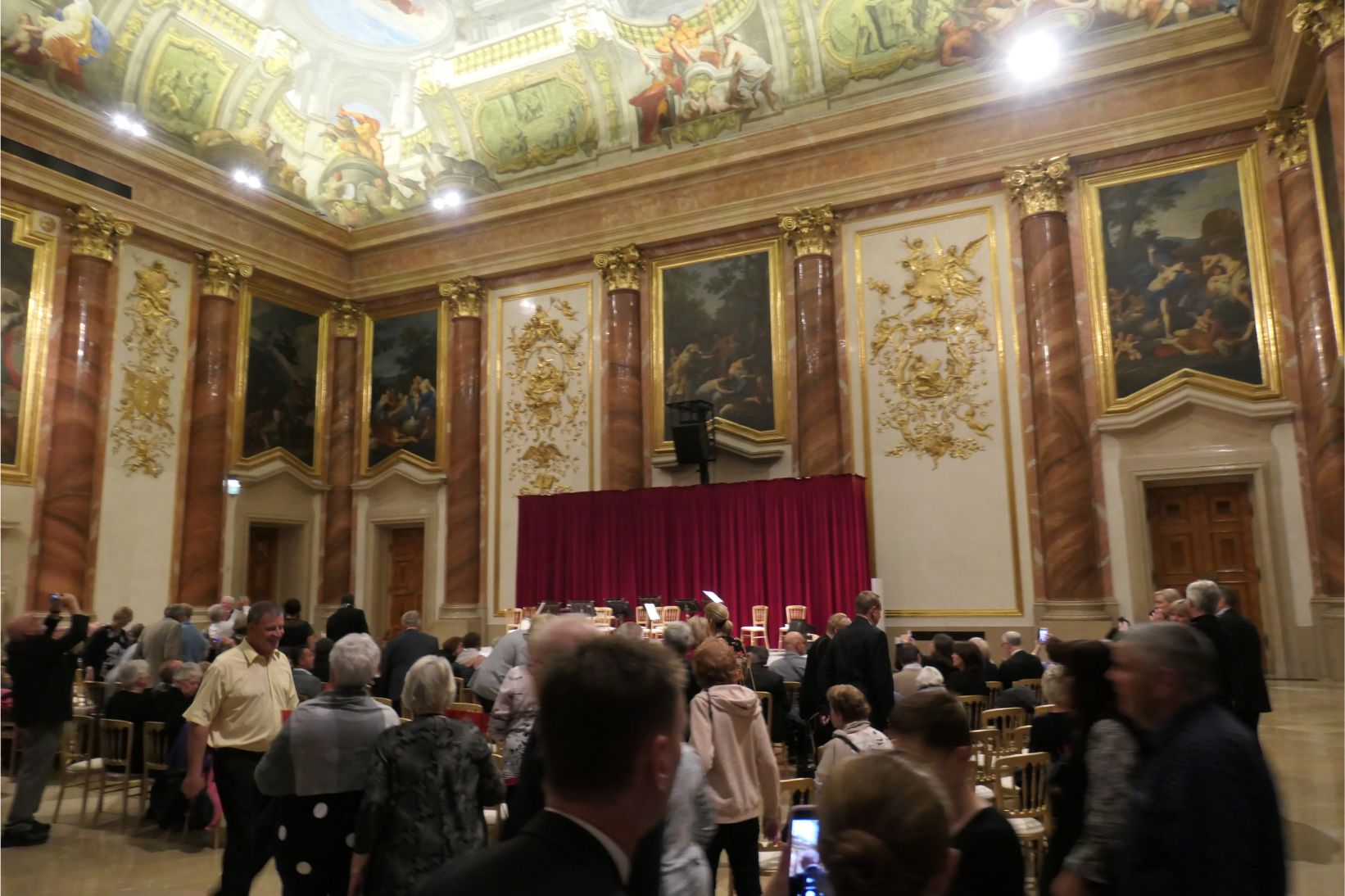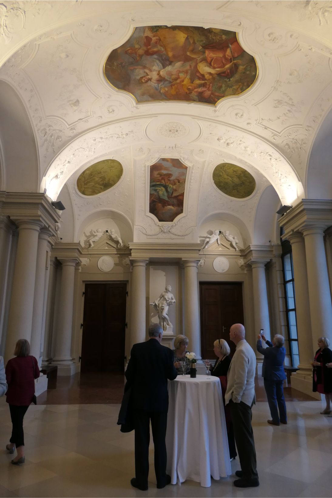 On Friday evening we were taken by bus to Palais Liechtenstein, home of the princely family of Liechtenstein, for a concert in one of its spacious state rooms. The palace houses magnificent works of art on its walls, in its galleries, on its ceilings and in its gardens.