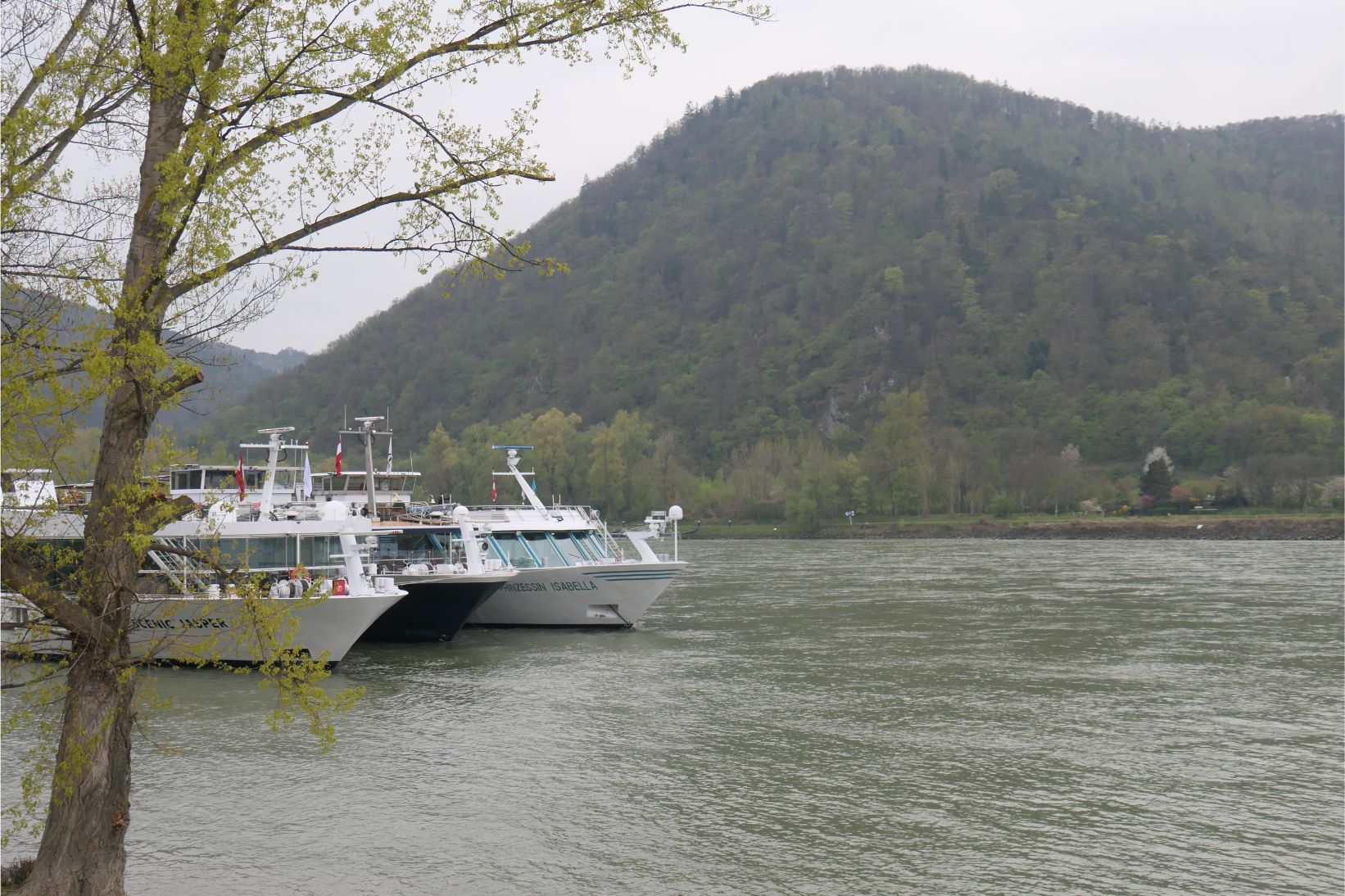 Our ship docked at Dürnstein, on the Danube in Lower Austria, at about 6am. An hour later there were two more cruise ships tied up alongside us and three more tied up right behind us. Dürnstein lies in a very picturesque region on a bend in the river, right at the entrance to the Wachau Valley. We will leave here by 10.30am and cruise through the valley en route to Melk, which we should reach some time around 2pm today.