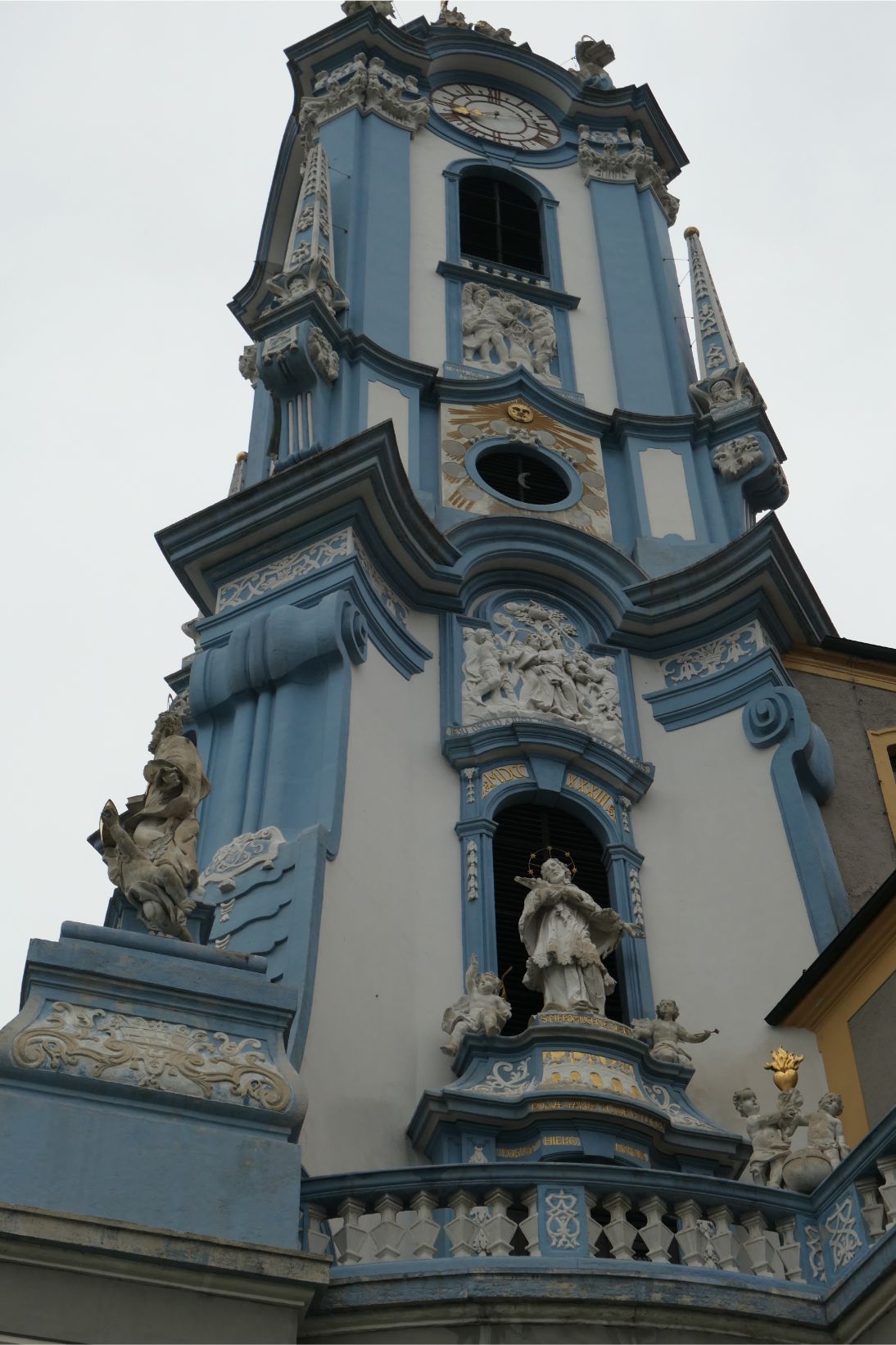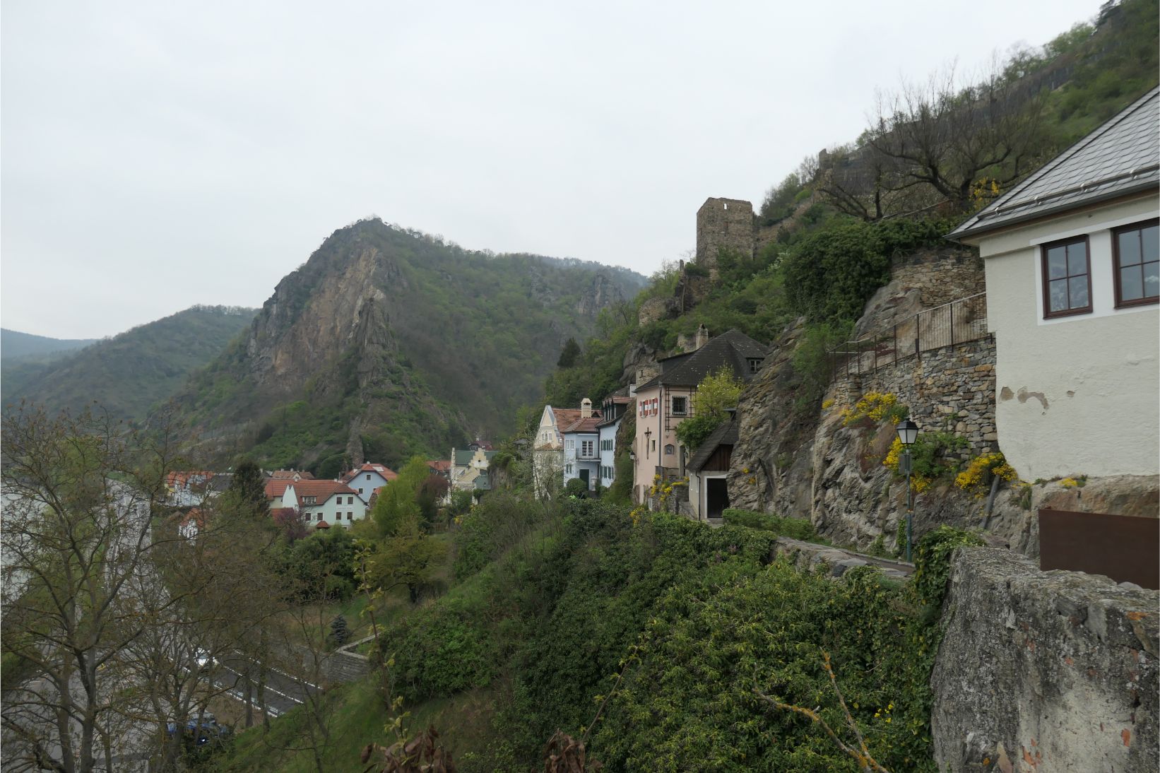 The ruins of Kuenringerburg Castle dominate a steep hill above Dürnstein. Some members of our cruise climbed to the ruins early this morning, but I was happy enough to take on the easier challenge of climbing the steps and the hilly streets of the town.