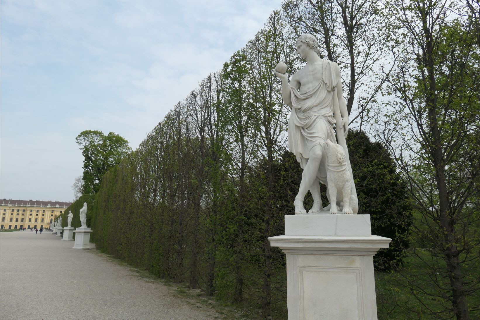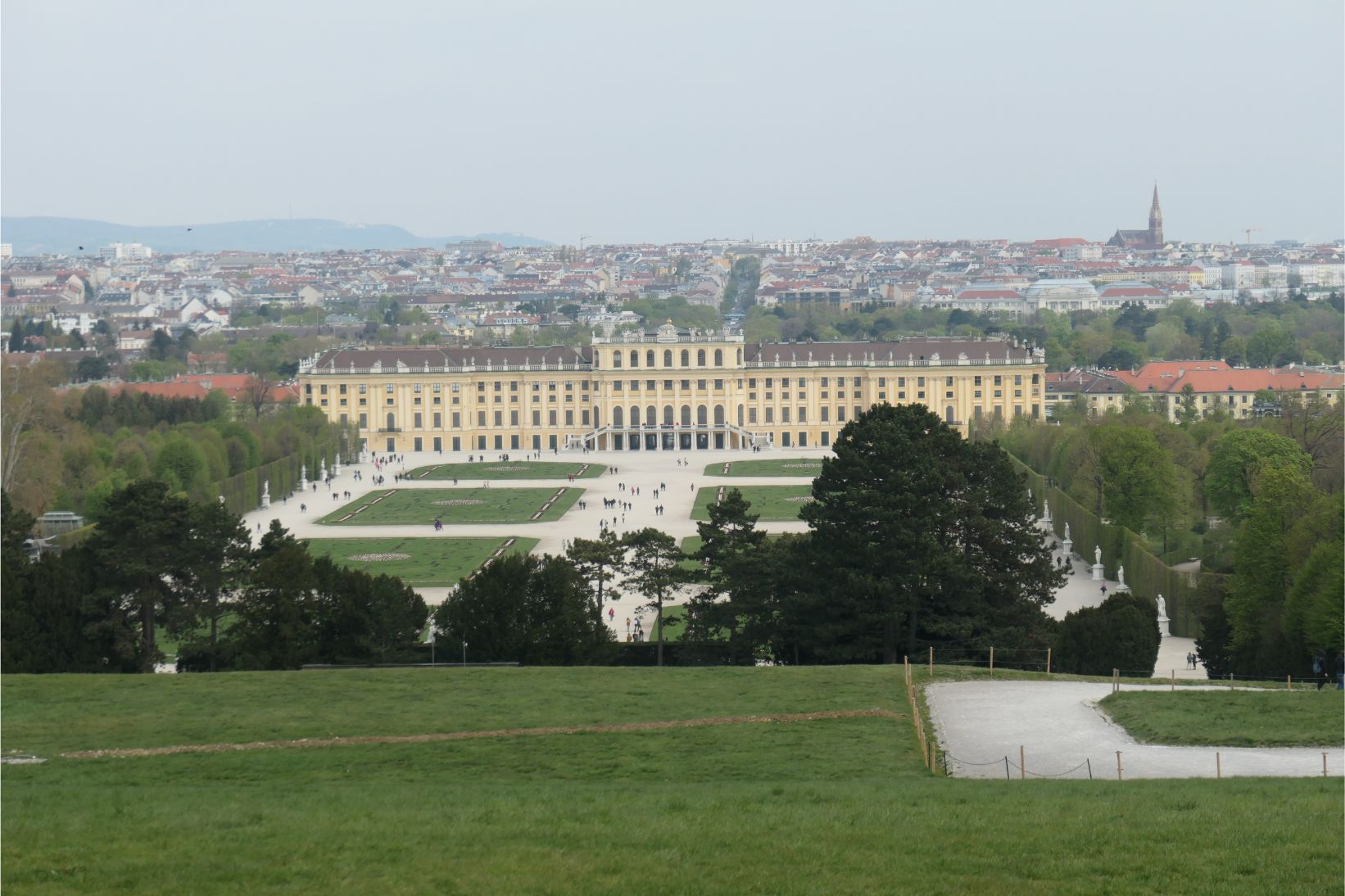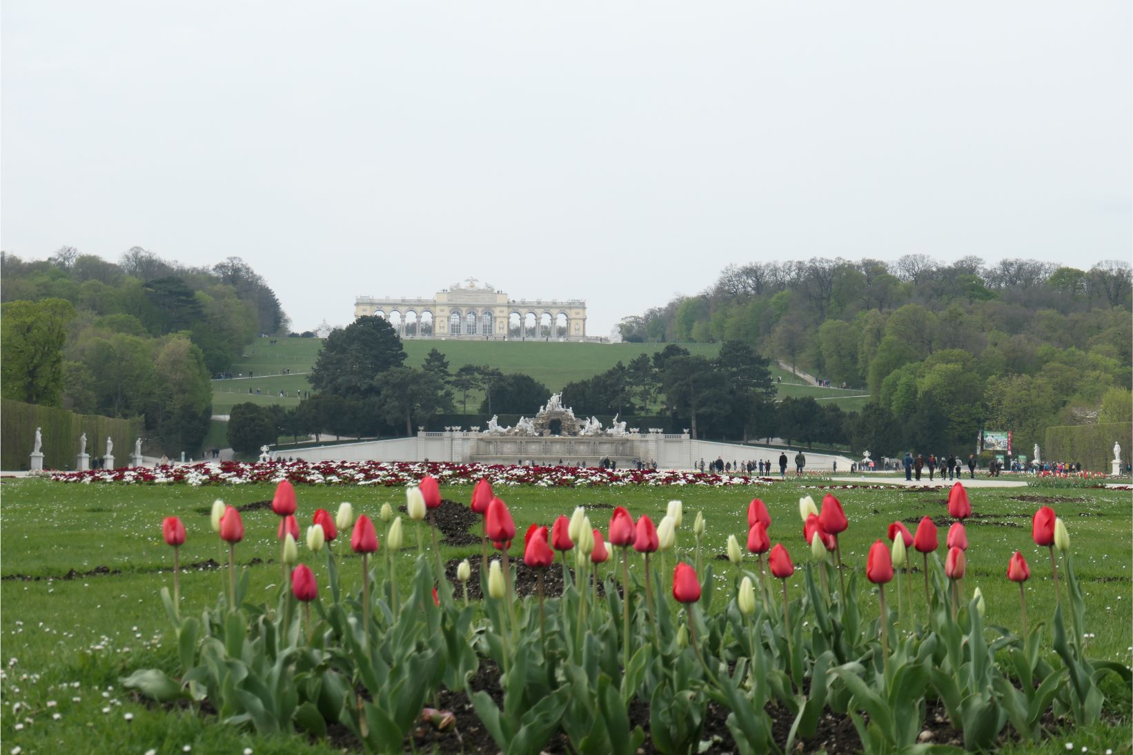 Following the guided tour we strolled through the palace gardens. It is early spring here, and though the tulips are blooming it seems obvious that more colour and new growth is on its way. Unfortunately the great fountain that gives the palace its name (Schönbrunn is German for ‘beautiful fountain’) and is the centrepiece of the garden is not currently in operation. The hilltop Gloriette, which was constructed to celebrate the extent of the Habsburg lands, provides a great vantage point from which to view the palace and the city beyond.