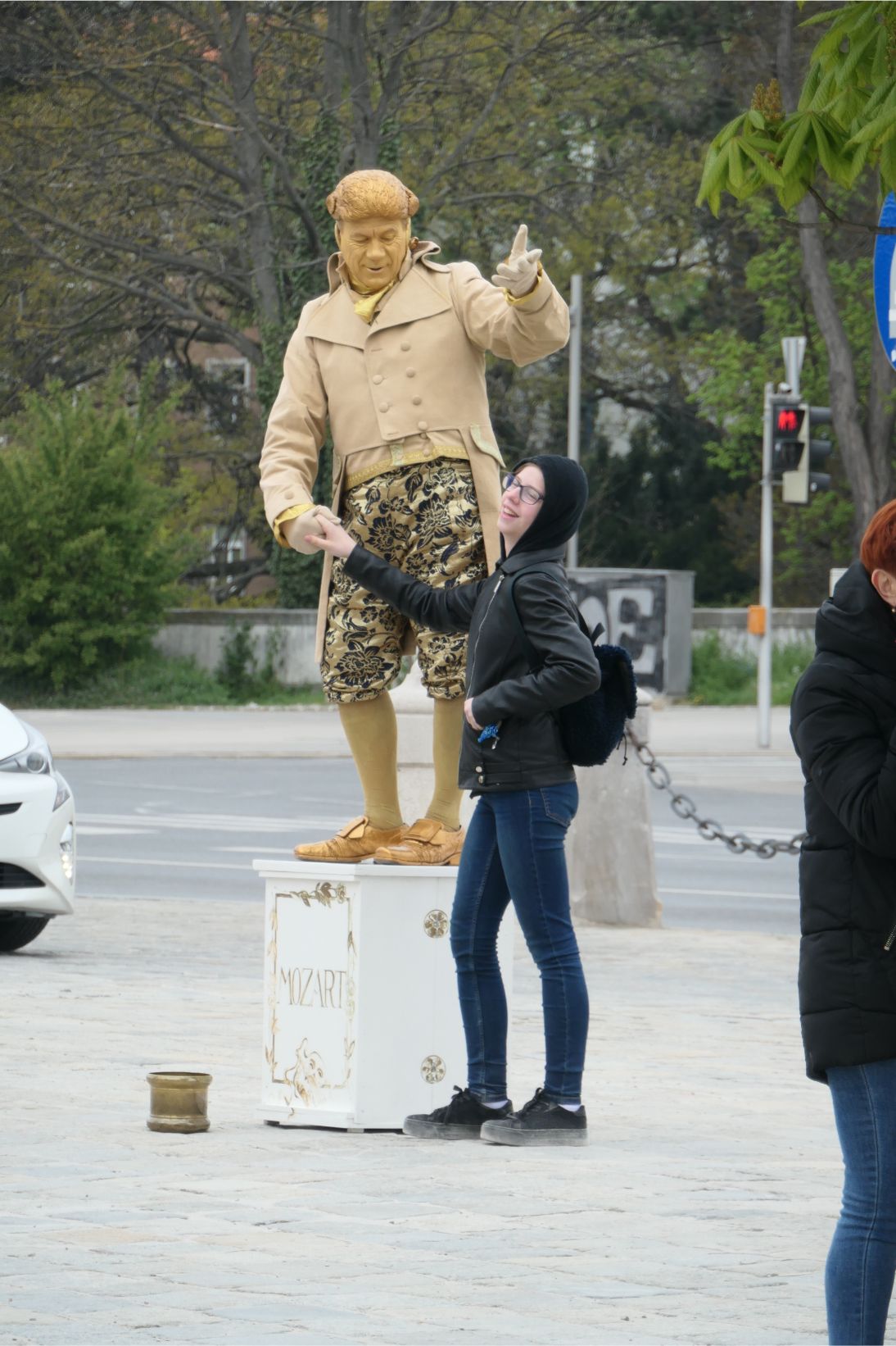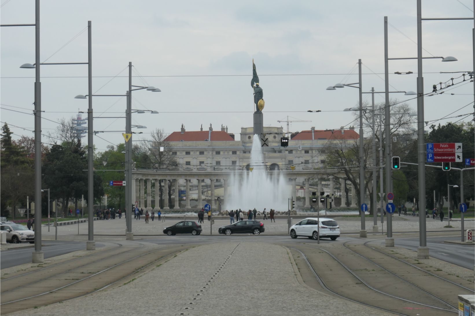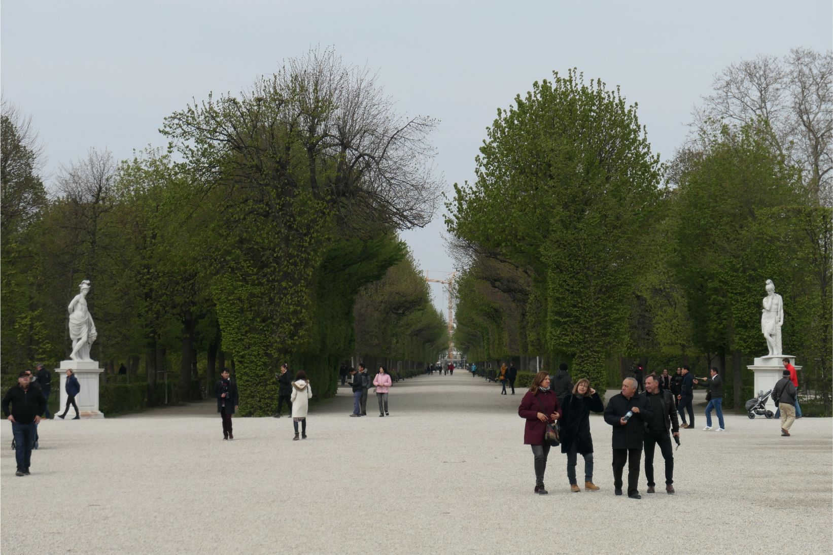Following the guided tour we strolled through the palace gardens. It is early spring here, and though the tulips are blooming it seems obvious that more colour and new growth is on its way. Unfortunately the great fountain that gives the palace its name (Schönbrunn is German for ‘beautiful fountain’) and is the centrepiece of the garden is not currently in operation. The hilltop Gloriette, which was constructed to celebrate the extent of the Habsburg lands, provides a great vantage point from which to view the palace and the city beyond.