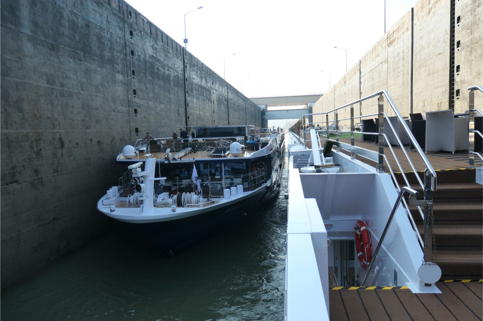 We have passed through a number of locks on this stretch of the river. Each time, the Avalon ship that is following us draws alongside, leaving only centimetres between boat and wall. The water level rises almost magically in front of your eyes and soon the ship is underway again.