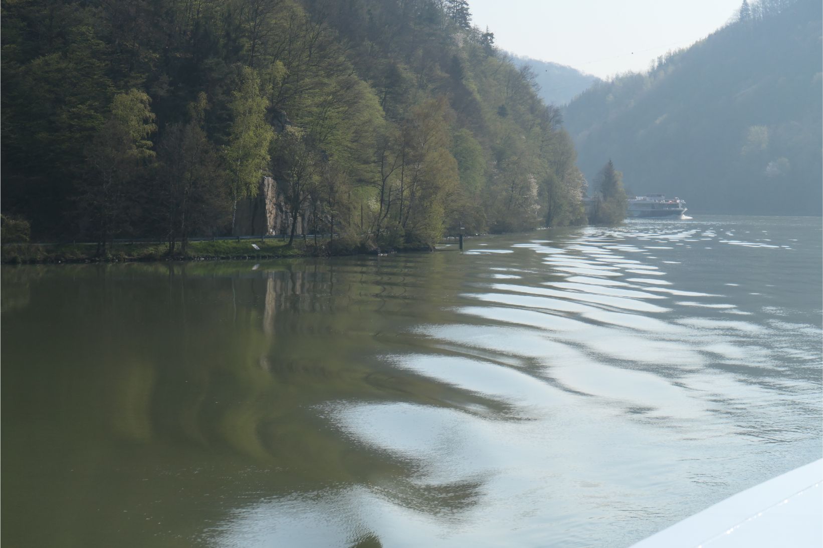 The Danube wound its way around a series of bends through some of the loveliest countryside we have seen. The sky was blue and the sun was shining. The forest on each bank was a sea of different greens, dotted with the occasional white blossom tree. Small riverside villages emerged around a bend and then were gone again. The Austrian countryside in spring is something of beauty to behold.