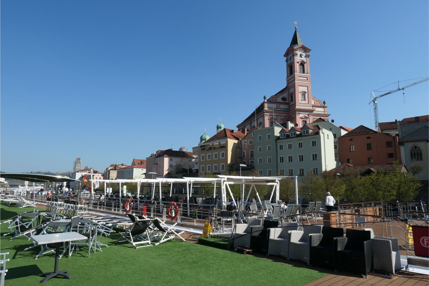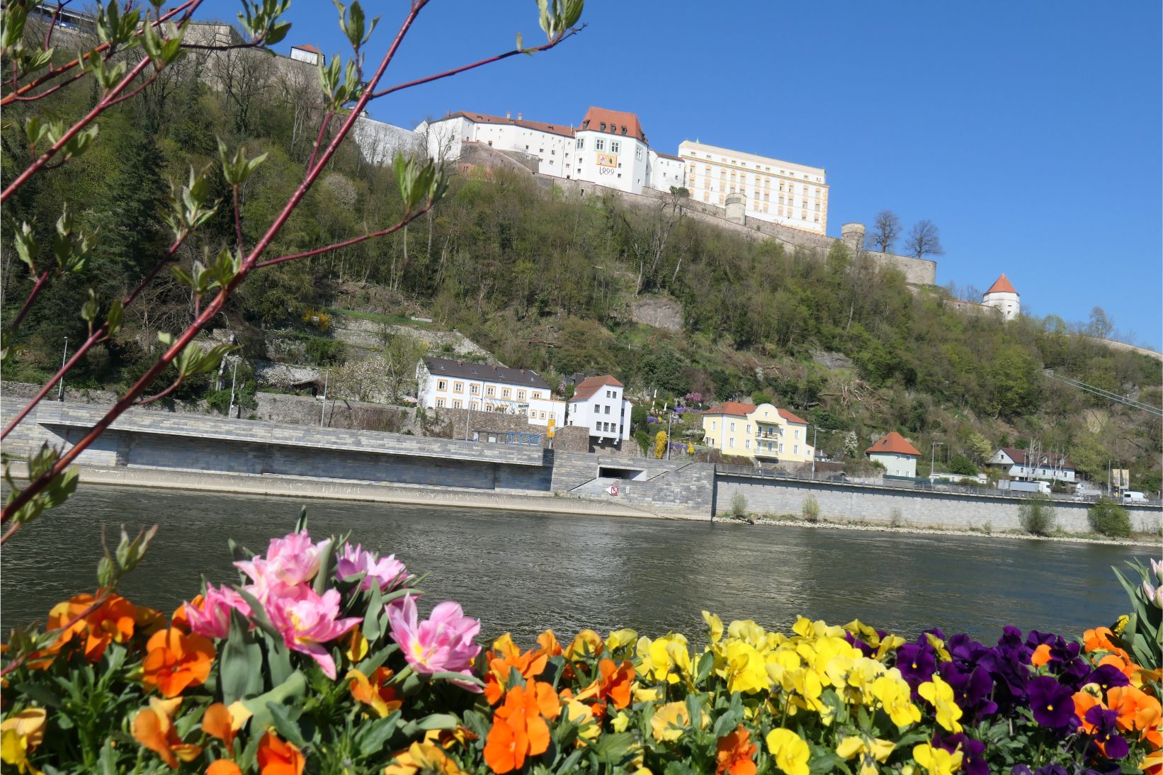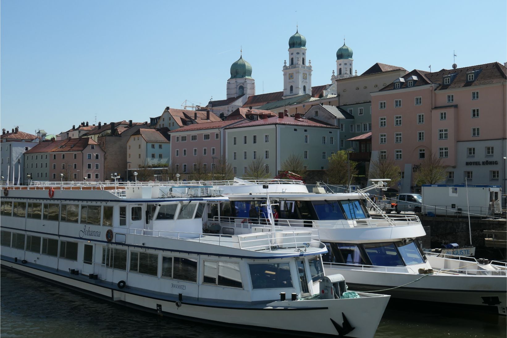 Our ship docked in Passau in mid-afternoon. It was our first opportunity to set foot on German soil and we were not disappointed. Passau lies at the confluence of the Danube and Inn rivers in the region of Bavaria. Its winding cobbled laneways and streets are lined with immaculately preserved old buildings, many of which are now souvenir shops for tourists. There are flower beds and blossom trees dotted around the town. Church bells ring out across the town every hour. Under blue skies, Passau looked simply stunning.