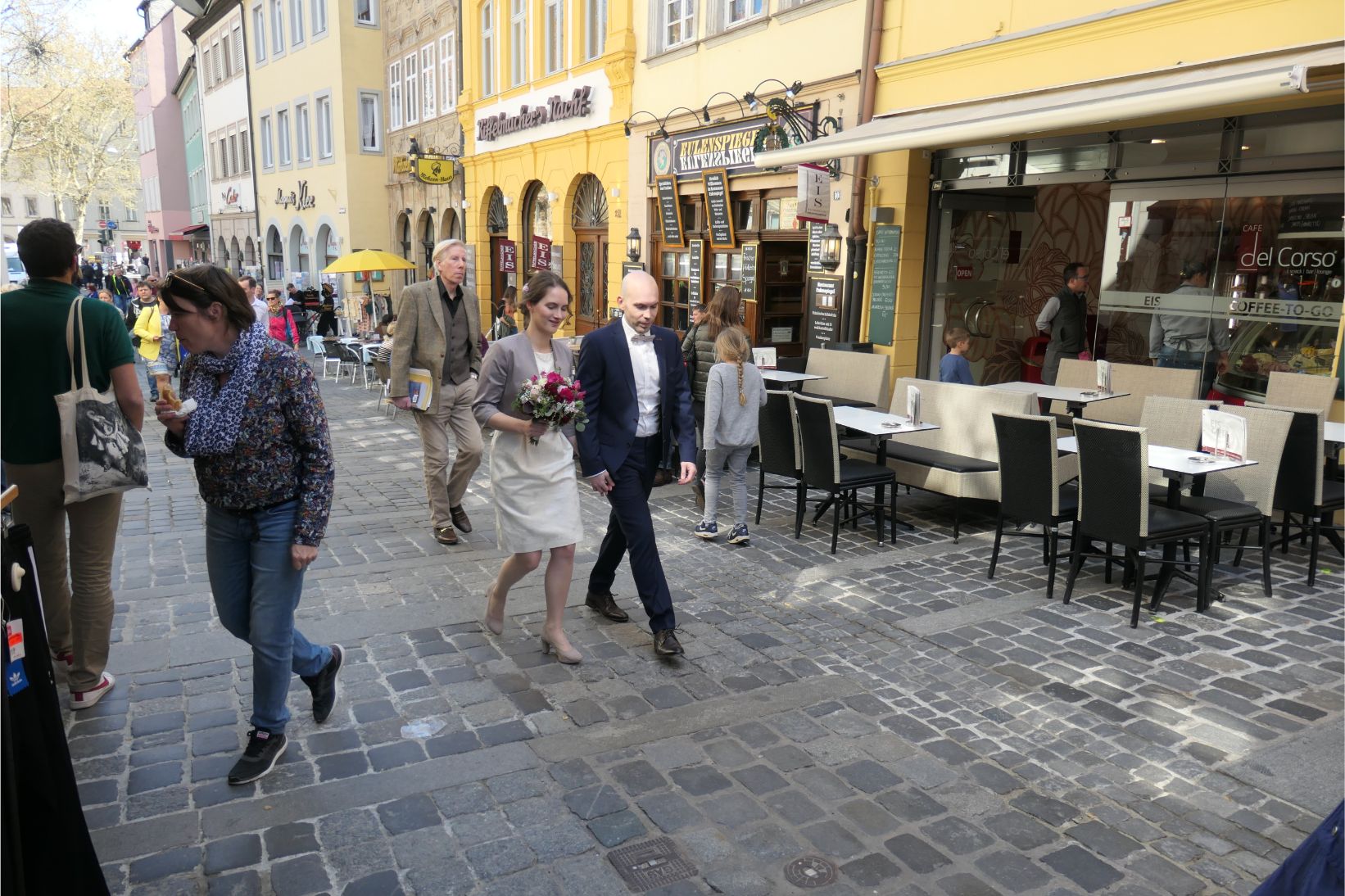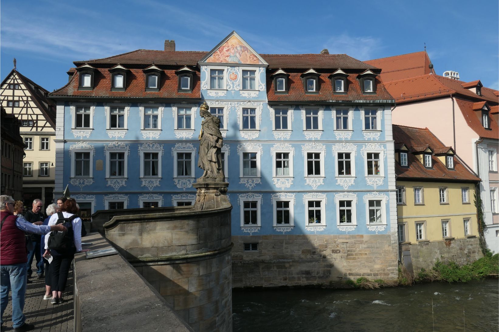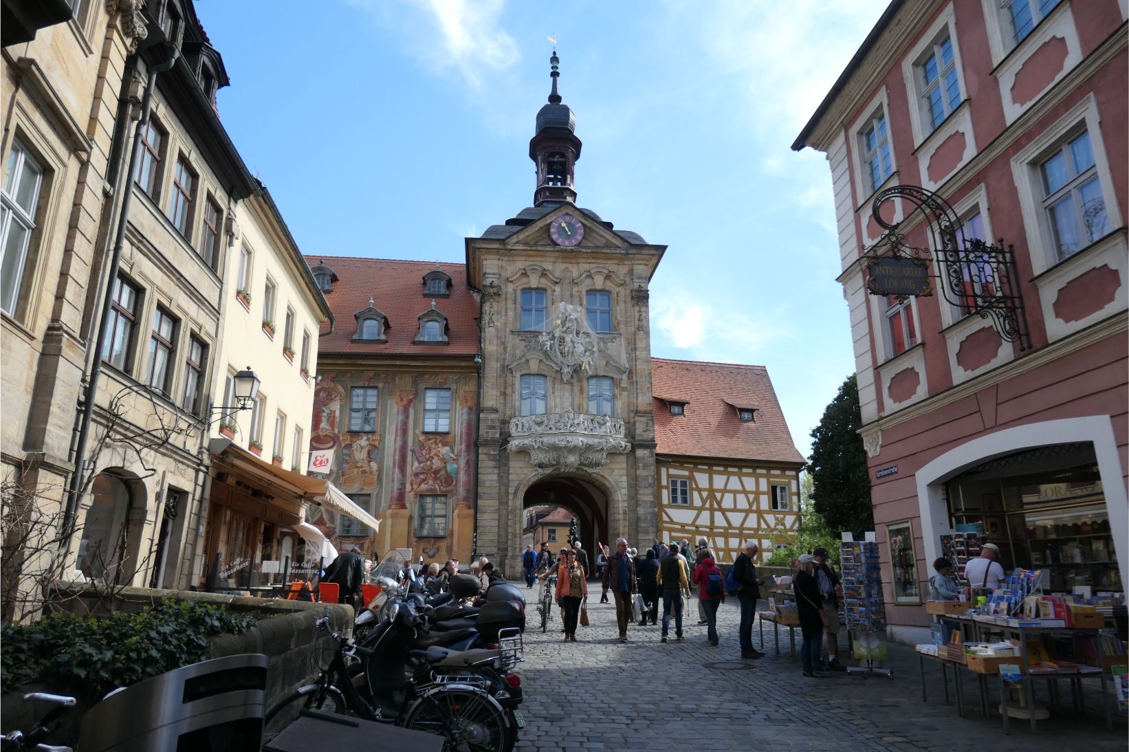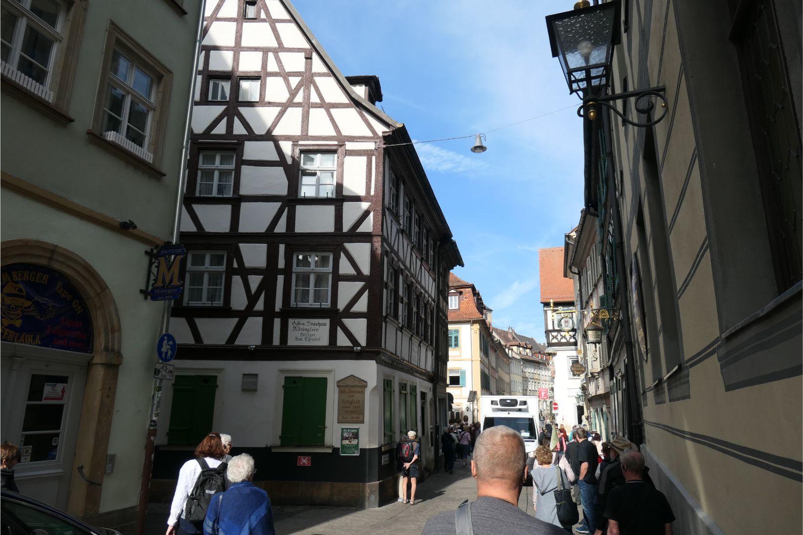 Our ship docked early this morning in Bamberg, the small Bavarian town built on seven hills. Like every place we’ve visited in Germany so far, it is a photographer’s dream, with rivers flowing through the medieval old town, stone bridges, boats, cobbled streets, half-timbered houses, statues, a cathedral, open public squares and quaint little souvenir shops.