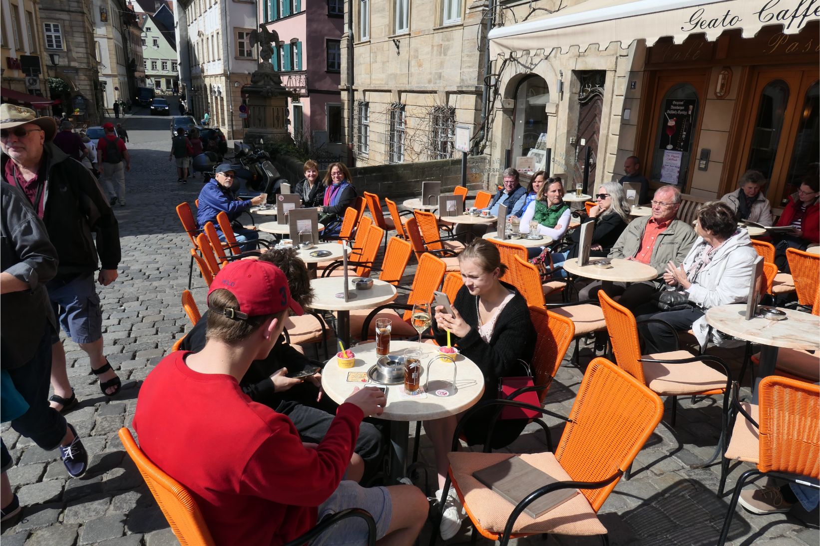 Germany is turning on the most perfect spring weather for us. It’s warm and sunny and the skies are blue. We stopped at a cafe for a coffee at an outdoor table in the sun and reflected on the memories we’d take away from Bamberg before returning to the ship in preparation for a mid-afternoon departure.