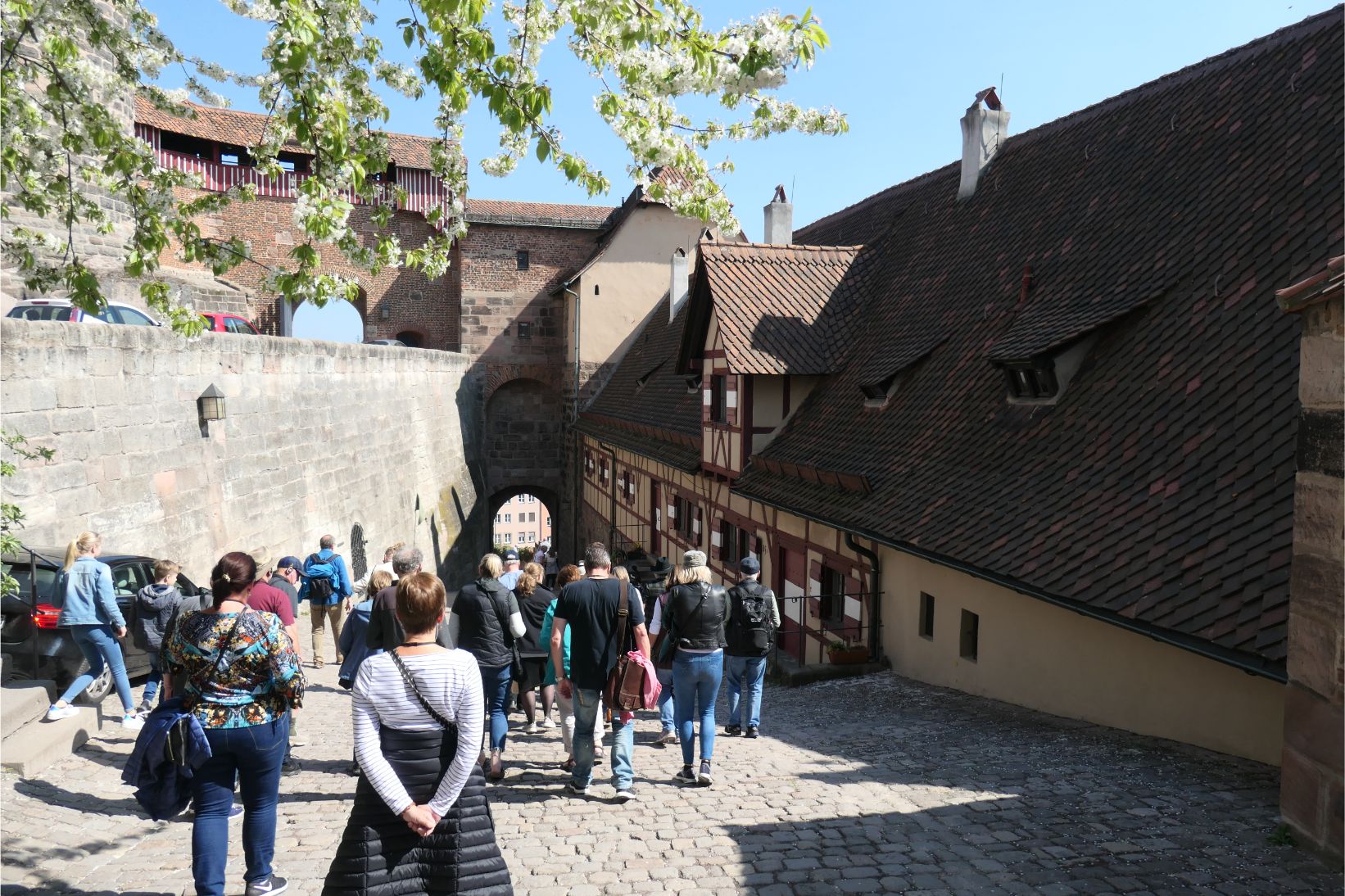 The Aldstadt, or Old Town, lies within a strongly fortified city wall, built over 500 years ago. It is surrounded by a dry moat. At the highest point is the Kaiserburg Castle. Neither the castle nor the walled city were ever penetrated by an enemy, though parts of the town suffered tragic bomb damage during World War II.