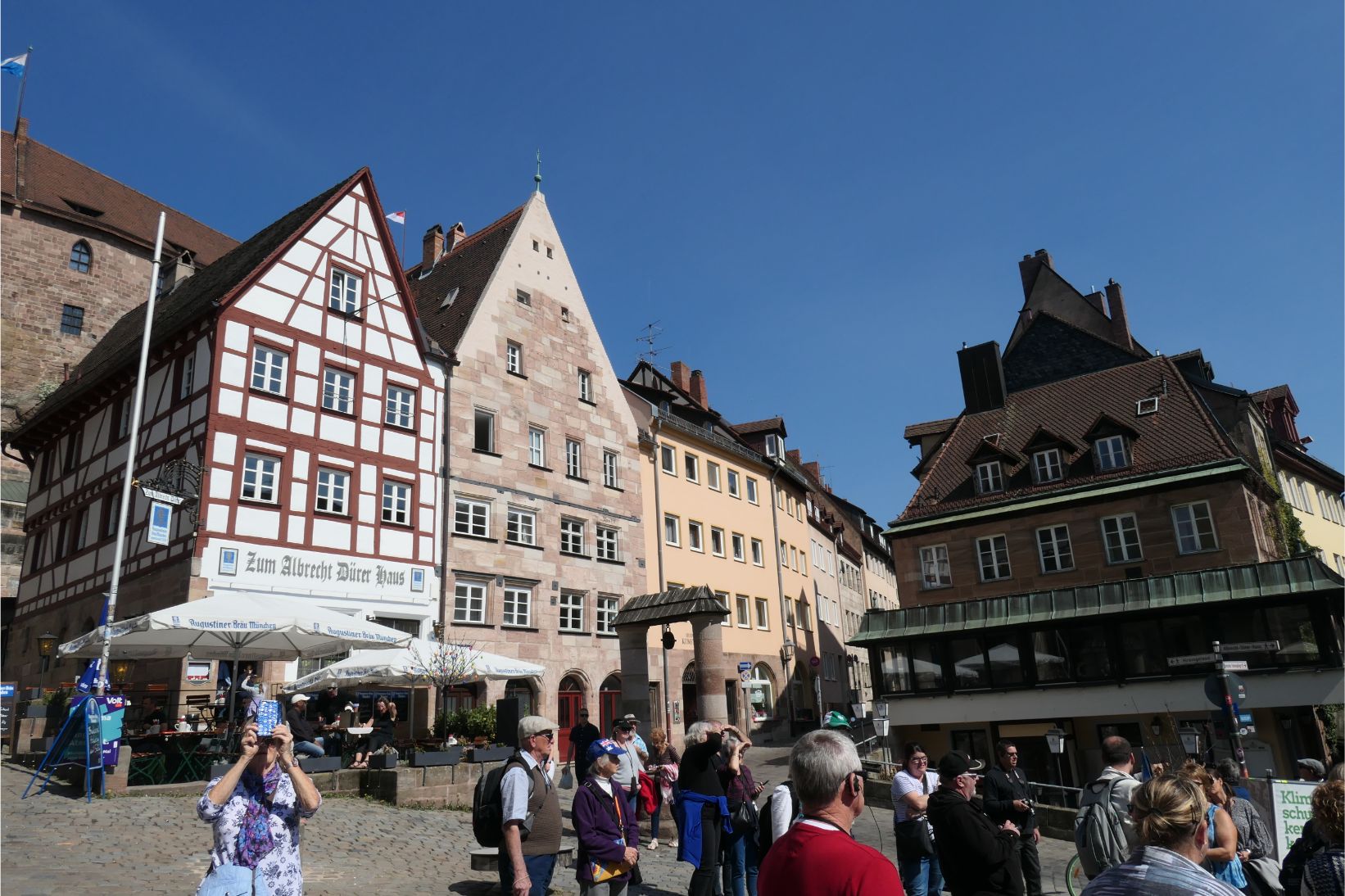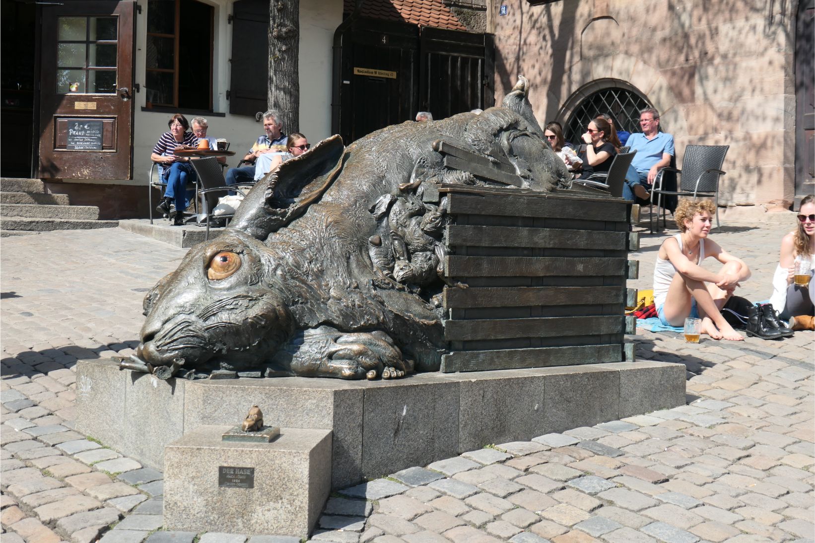 We passed by Albrecht Dürer’s house, and also his statue. There was even a large sculpture in the town, protesting the treatment of animals, which featured a Dürer-like rabbit. Art prints and postcards of his works were on sale in the souvenir shops.