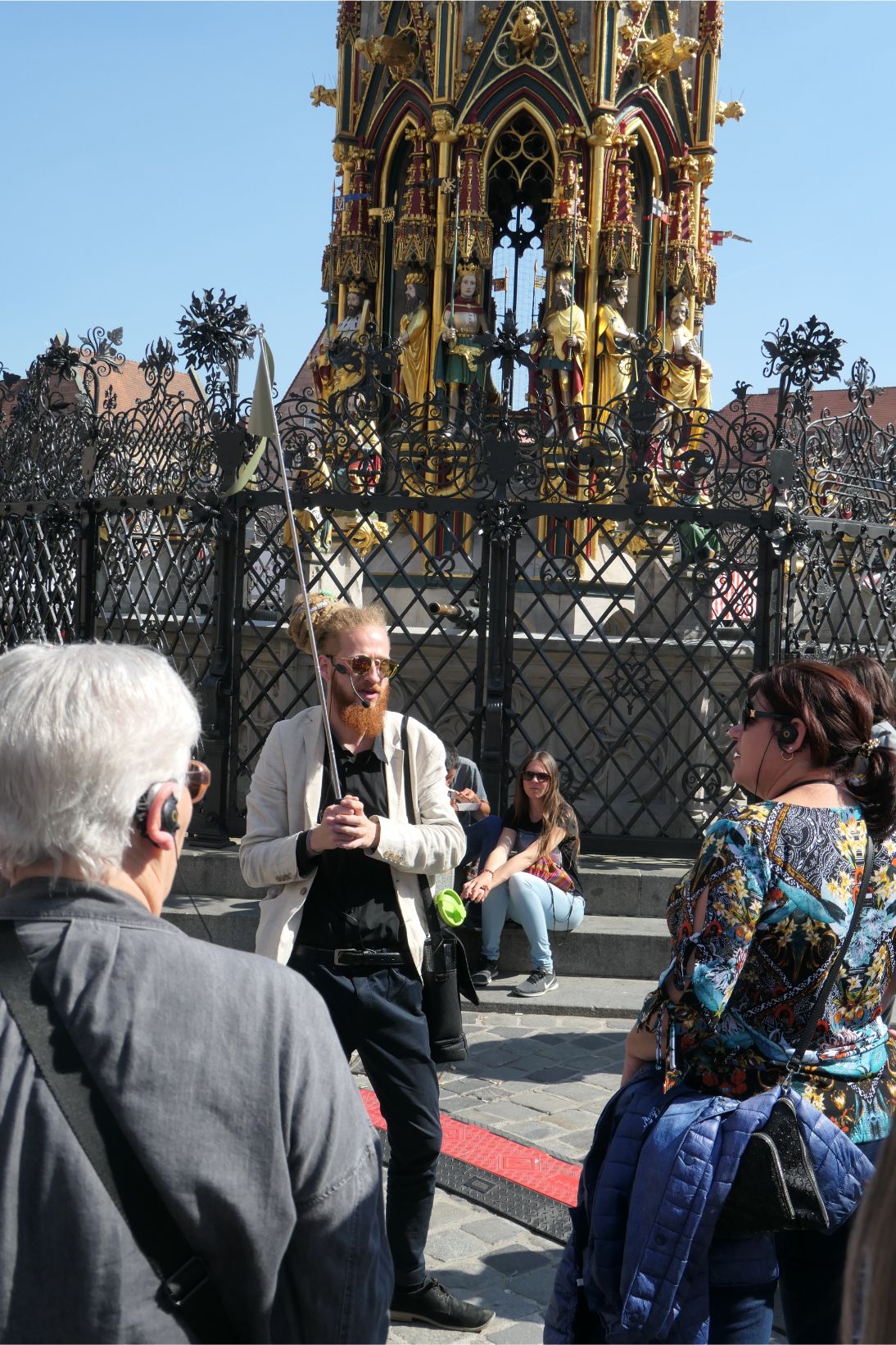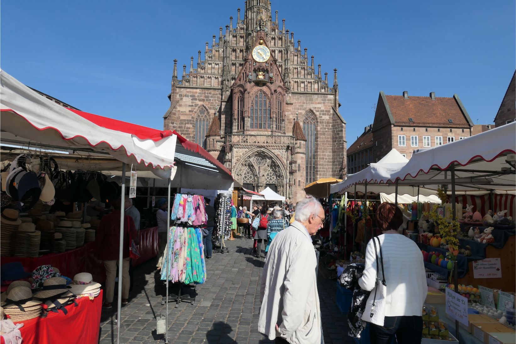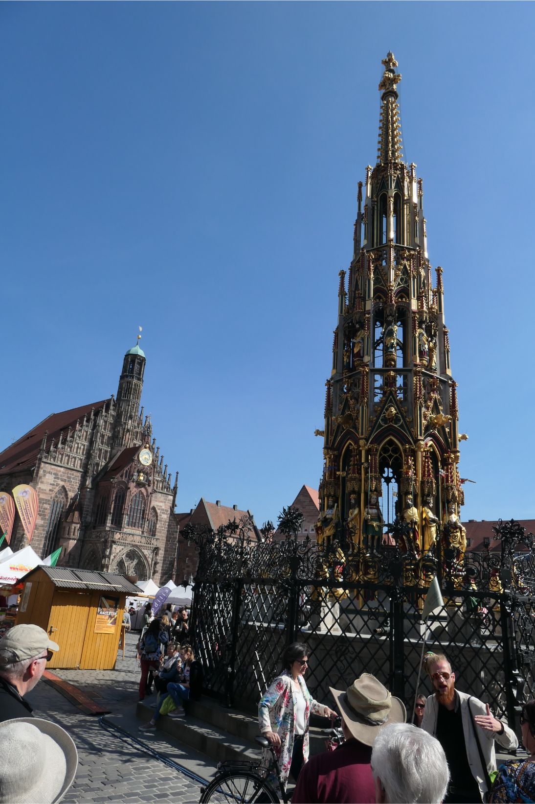 The Hauptmarkt, or central square, features a gothic cathedral which dates back to the 14th century, and the aptly named gilded ‘beautiful fountain’. Being only two days until Good Friday, the market place had a thriving Easter market when we visited, full of food and craft stalls, with most of the goods proudly made in Germany.