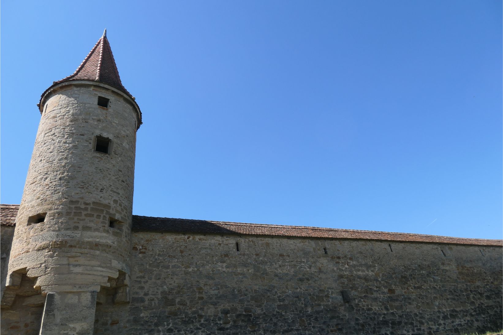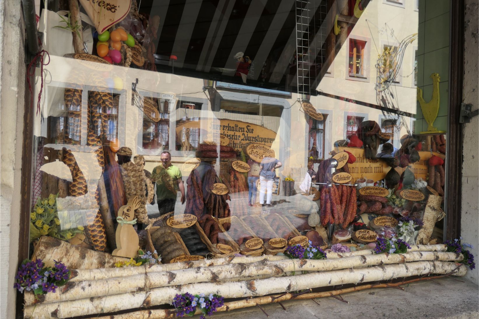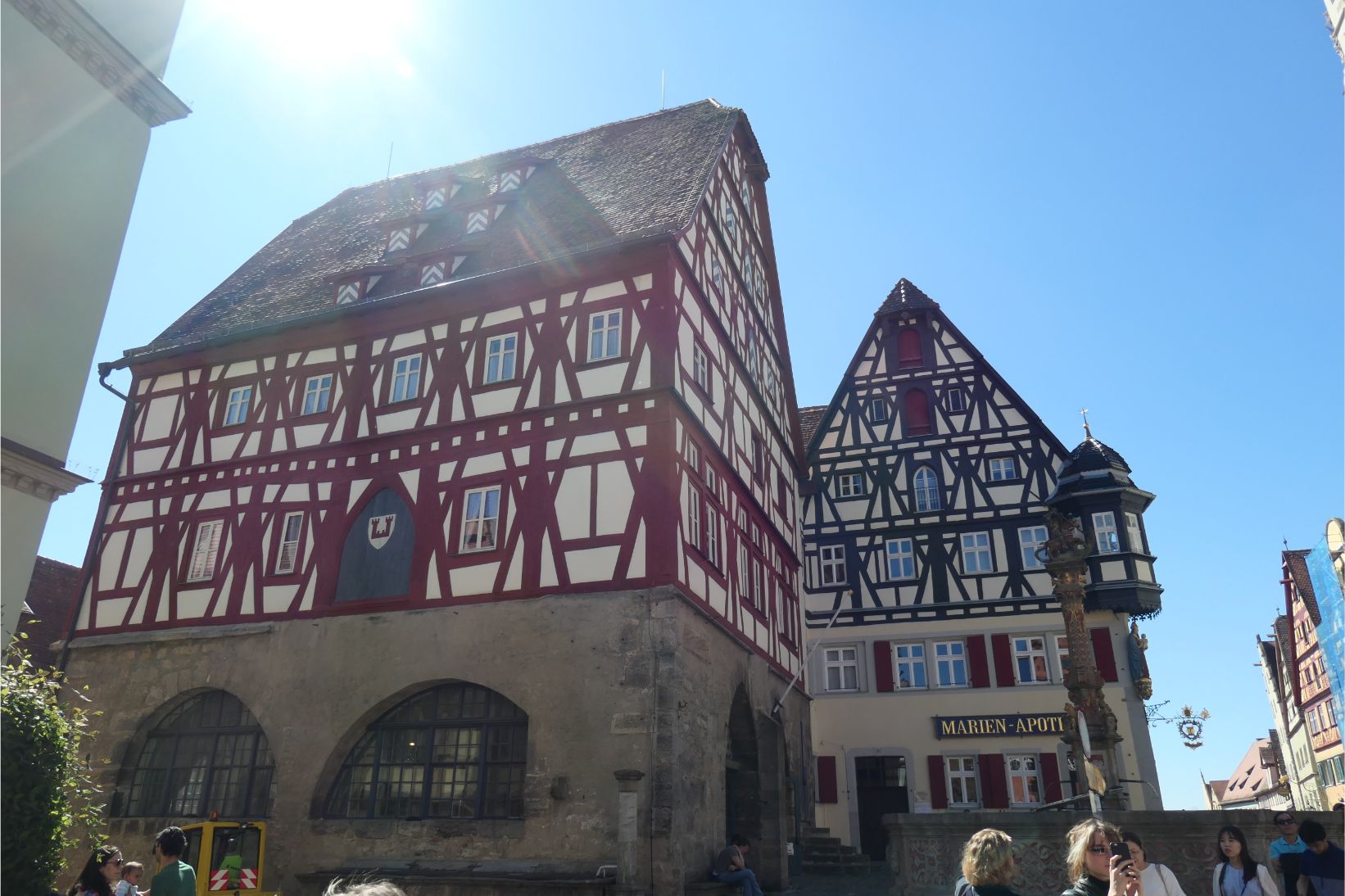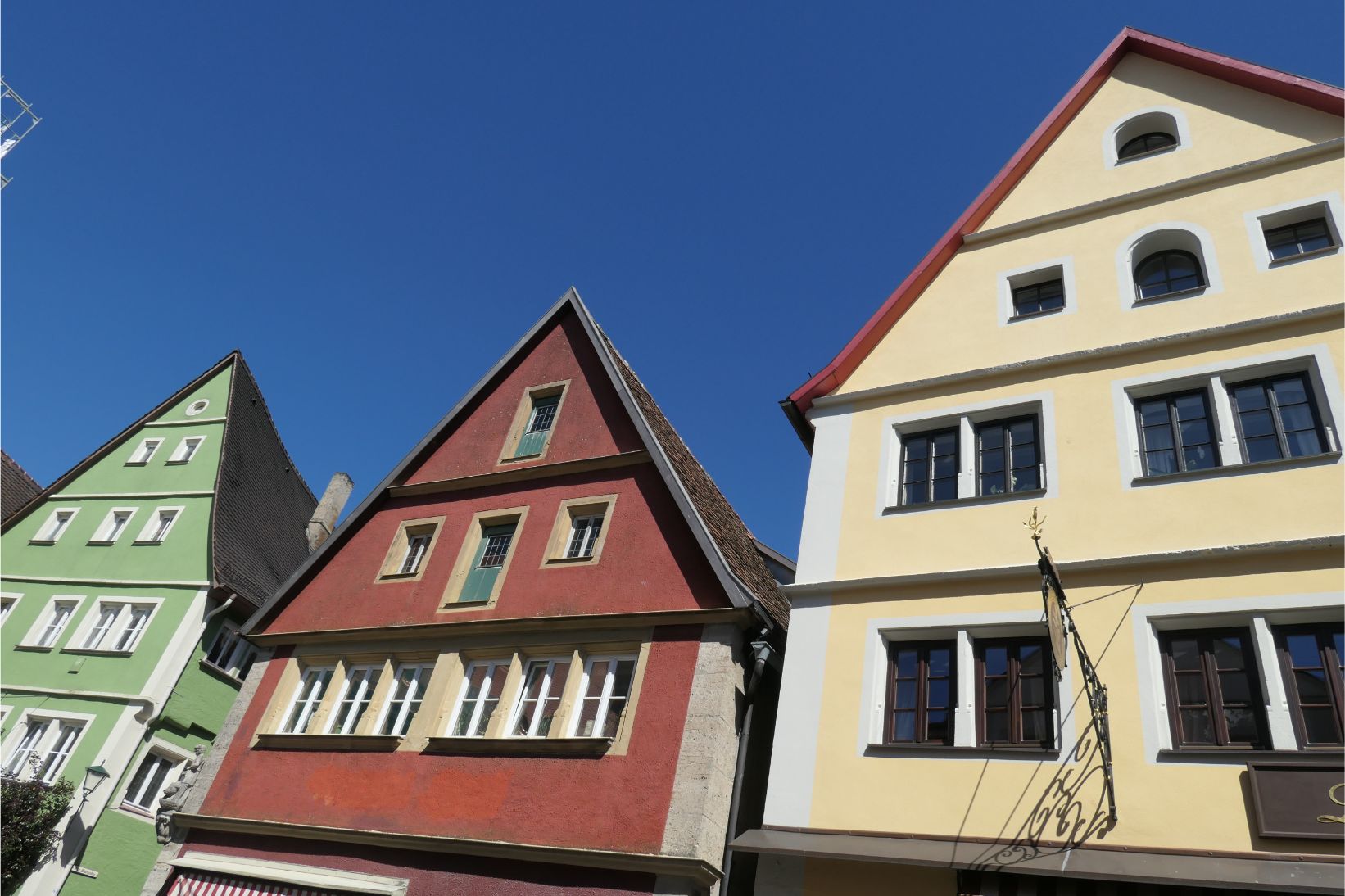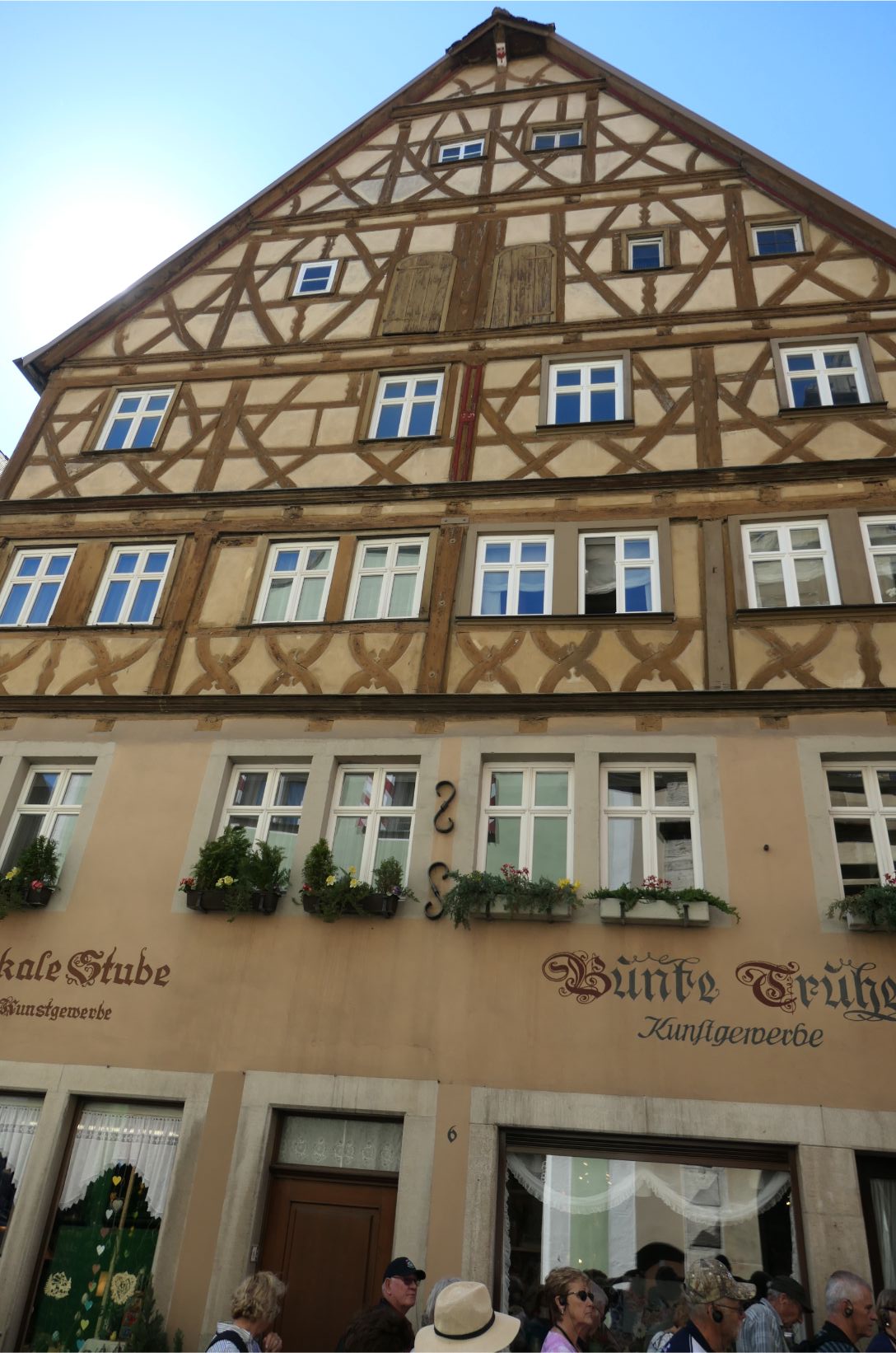 The houses in Rothenburg span several centuries and building styles, although several features were common. Many were half timbered. A large number had installed a pulley near the peak of the gable, which was used to haul sacks of grain up to the highest level for storage in an attic. If the city was ever besieged, the residents could survive on over a year’s food held in storage in every house. Many of the pitched roofs had rails above the eaves to prevent the snow from falling onto the ground in front of the house. There is a law that says you must have cleared the snow from out the front of your home by 7am (8am on Sundays) or else you risk a heavy fine.