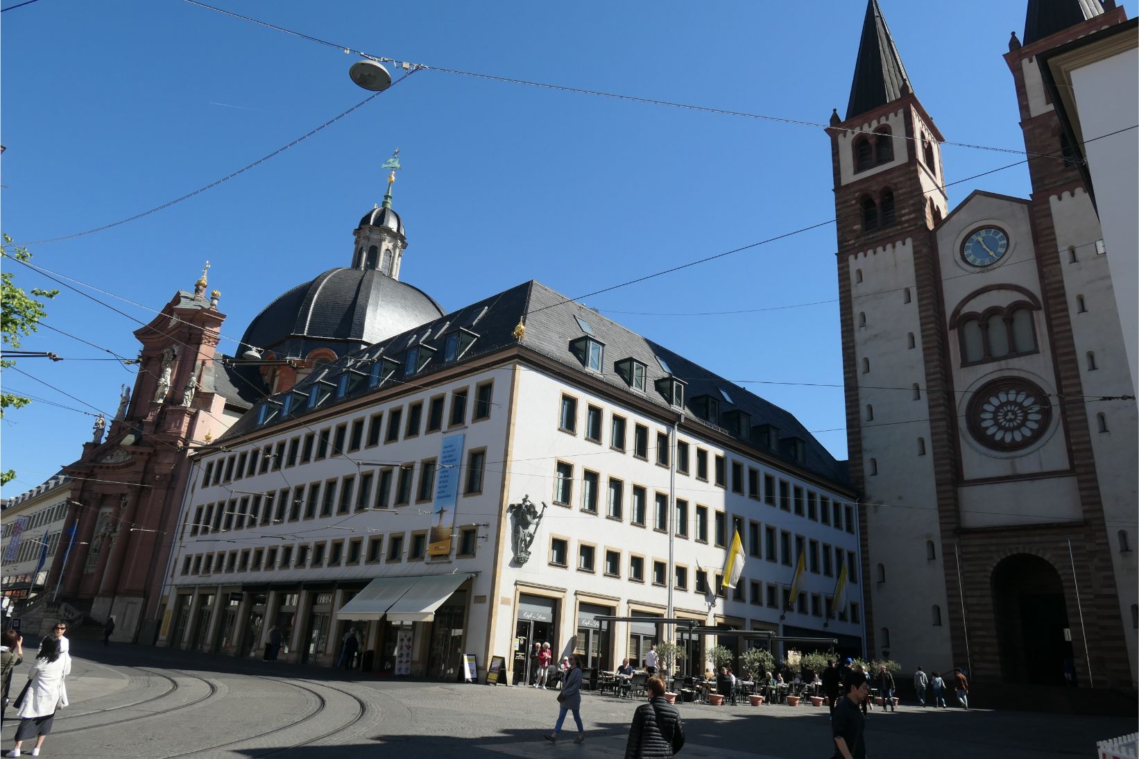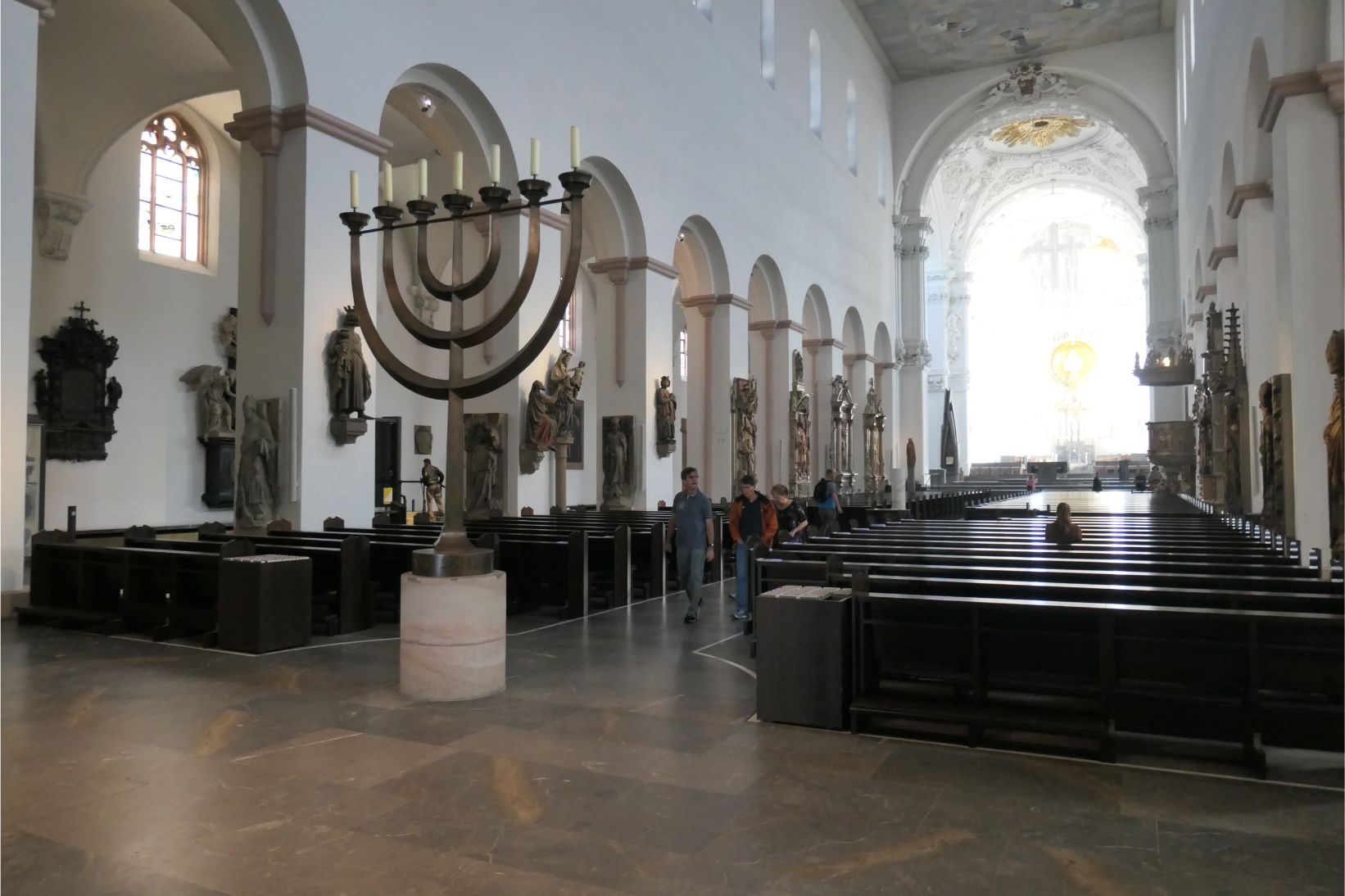 We didn’t really have time to see much of the town, particularly after stopping for an ice cream, but I did quickly take a peek inside St Kilian’s church. Würzburg was the home of many of Germany’s once very powerful prince-bishops, and many of them are buried in this Romanesque church, which dates back to the 11th century. I was very surprised to find a Jewish menorah directly inside the entrance. Apparently it was placed there to acknowledge Christianity’s roots in Judaism.