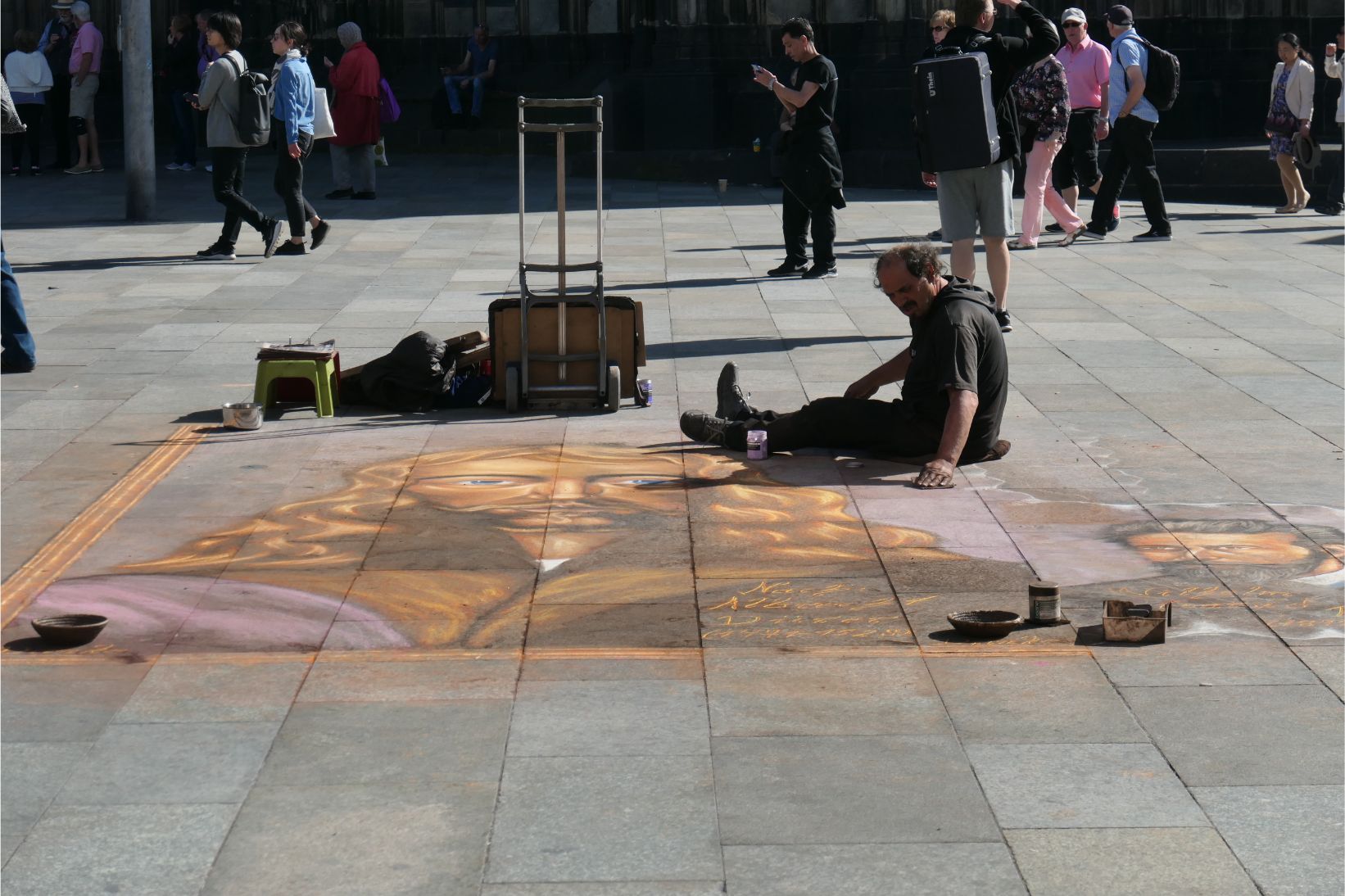 Approaching the Catholic cathedral, I stopped to admire some of the chalk drawings of a number of street artists. The police came along and gave one of them a hard time. He was agitated, but eventually allowed to continue with his work. Perhaps he hadn’t paid a licence fee that would allow him to create street art there.