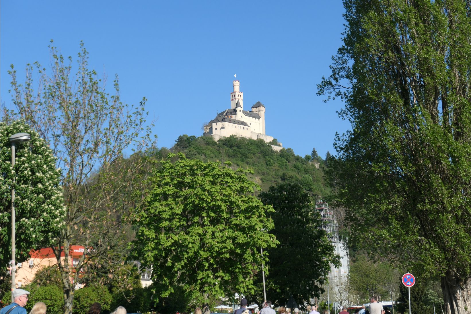 After three magnificent hours cruising the Rhine Gorge, viewing medieval castles on multiple occasions throughout the journey, we arrived at Braubach, near Koblenz. High on a hill above Brauback sits Marksburg Castle. Much of the castle is well preserved and available for public viewing.