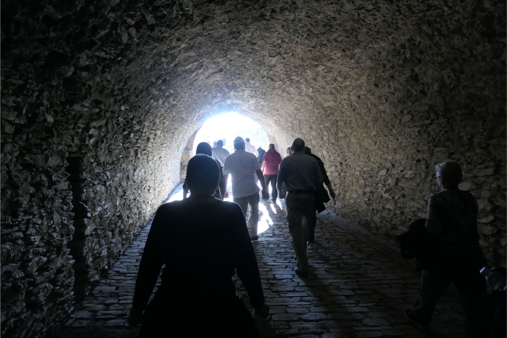 Buses carried us up the steep hill, and it was a short rocky walk from the car park. We took a guided tour, which covered many facets of medieval life, and gave us a chance to view furnishings, household implements, and weaponry and armour dating back to the 13th century, when the castle was originally built to provide protection for ruling families of the region.