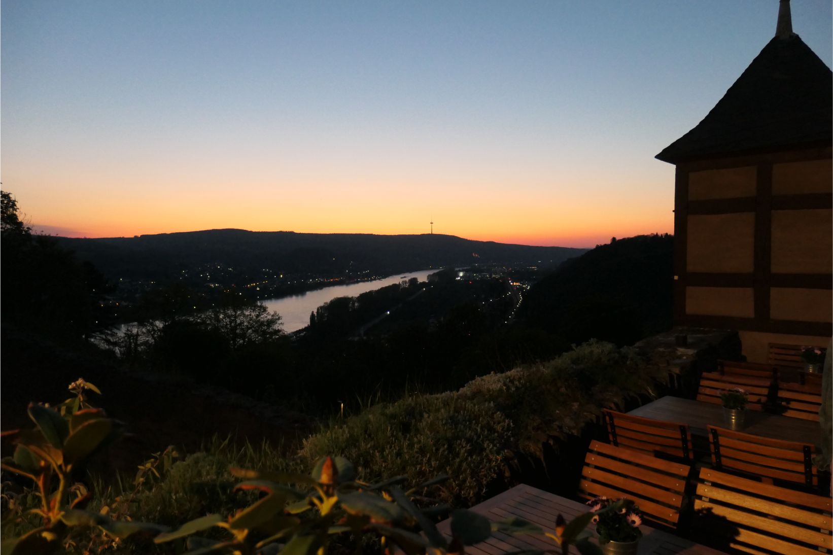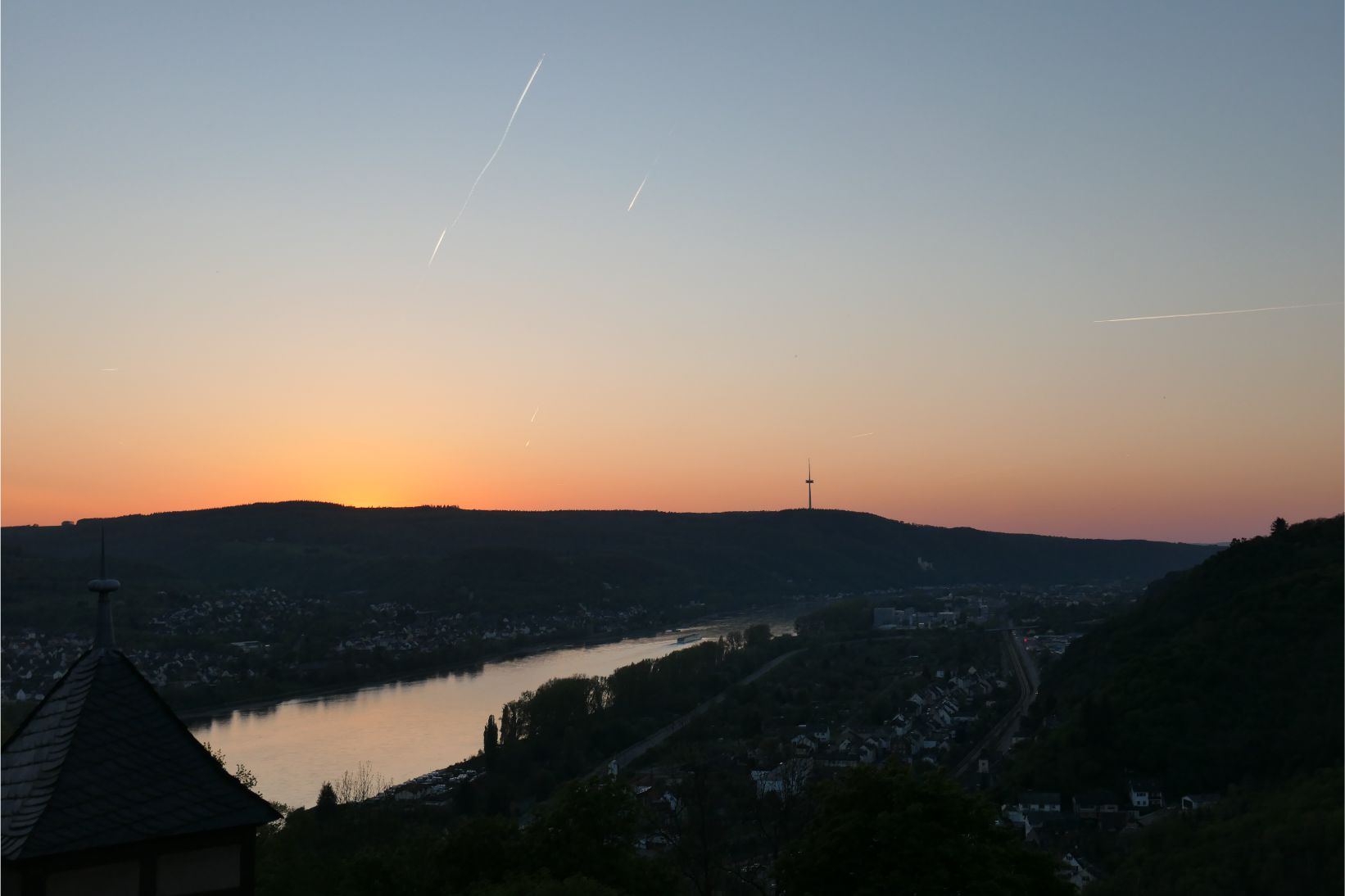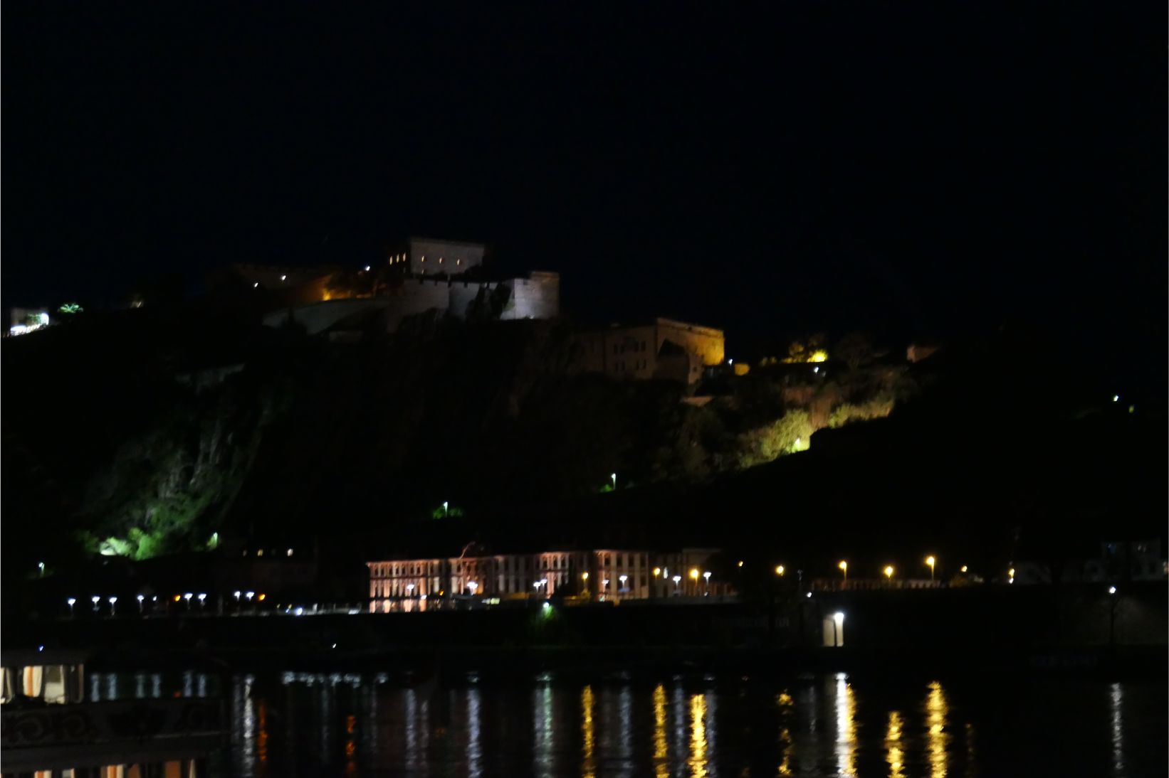 The buses brought us to the ship’s new mooring in Koblenz. In the darkness across the river was the faint outline of yet another Rhine Gorge castle.