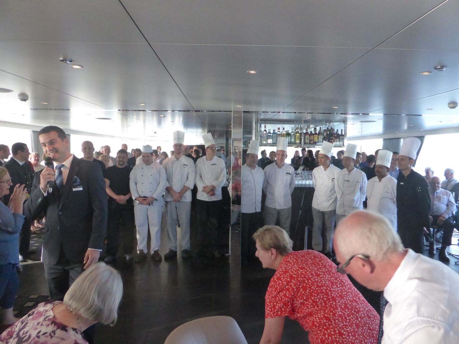 The ship’s captain invited the passengers to a farewell cocktail event, where the 57 members of the crew were presented to us individually. They received a standing ovation. They’ve been outstanding in every aspect of their service, and I can’t speak highly enough of Scenic as a company to travel with. After spending two amazing weeks with them, we’ll miss their friendly smiles and daily greetings.