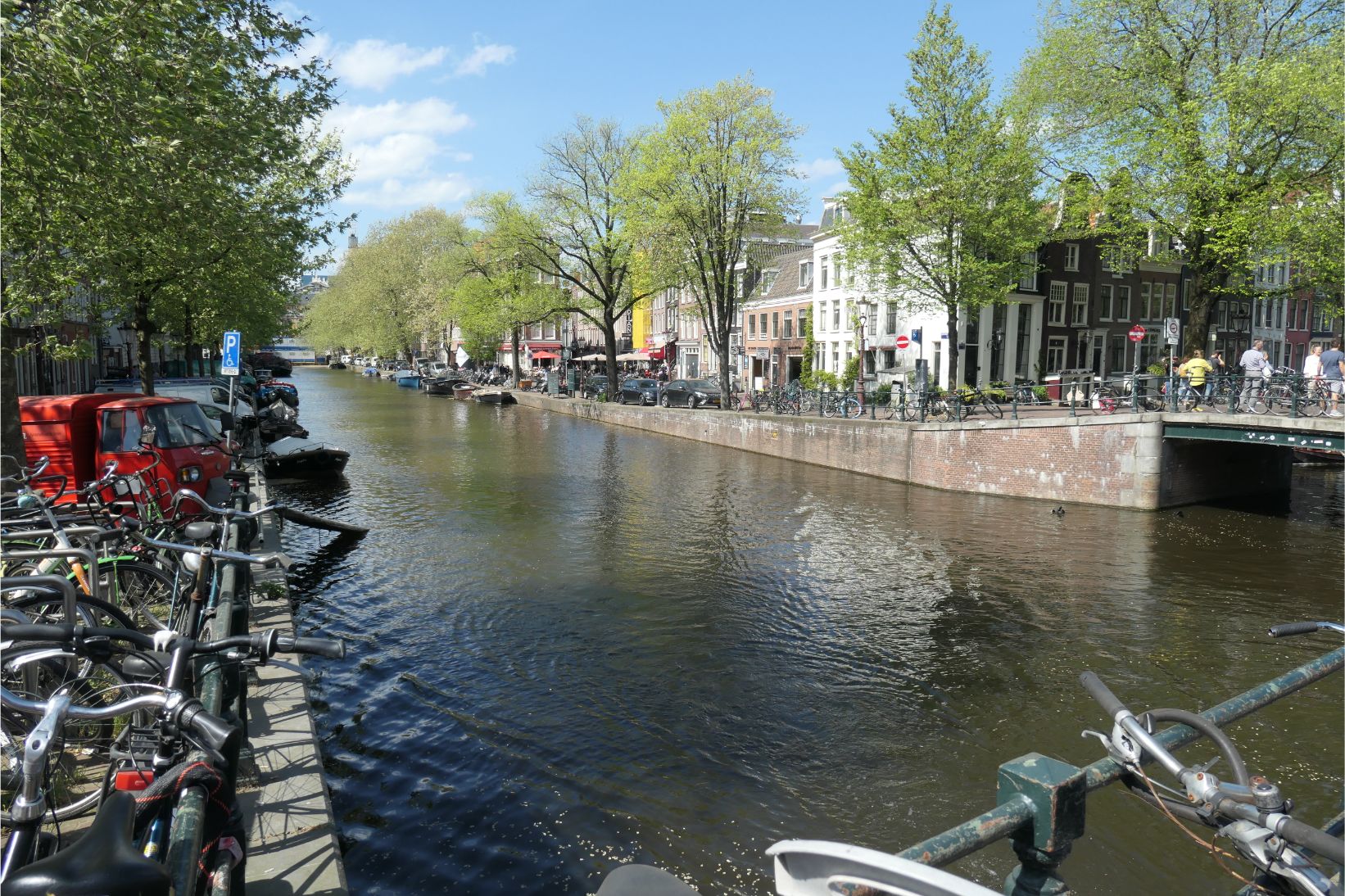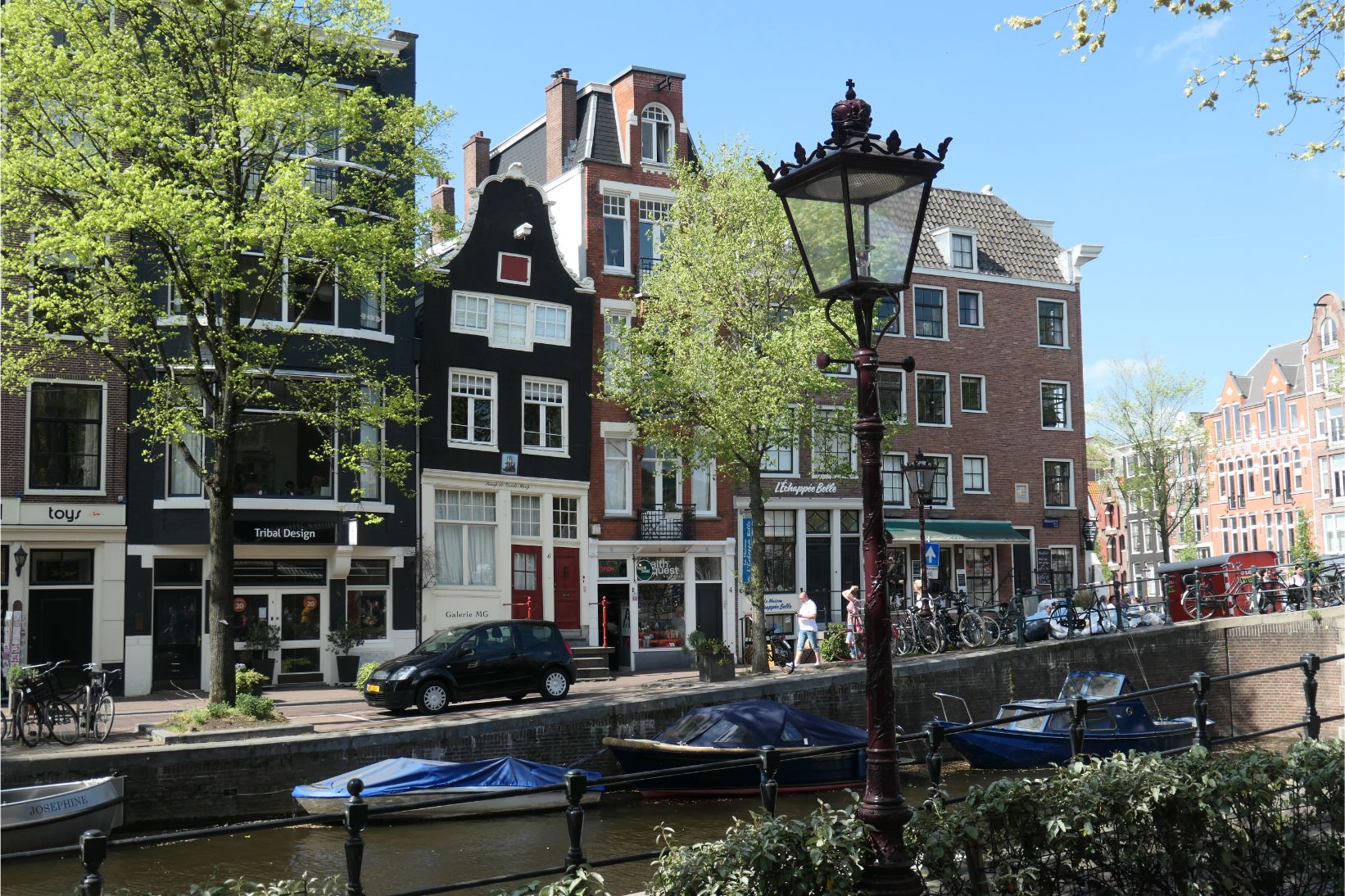 A taxi brought us to our hotel, in a street running adjacent to the Vondelpark in Amsterdam. We’d been warned that hotel rooms in Europe can be quite small, and this one was no exception. There was barely room for the two of us and our suitcases and three sides of our moderately-sized bed were jammed up against walls. But it’s home for a couple of nights, so we’ll get used to it.