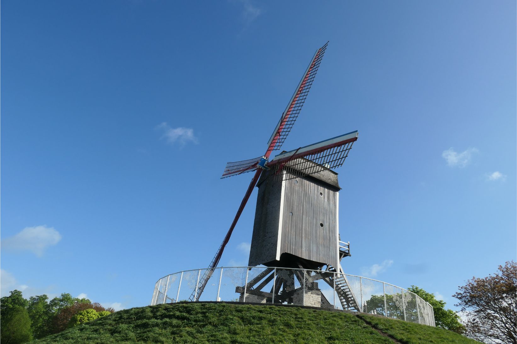 So without a blister to hinder me, today we walked and walked and walked around Bruges, just as we did yesterday. We visited a few old haunts from the previous day, but also found quite a few new parts of the town to explore. We began by visiting a couple of the windmills on the banks of the river that flows past the town. One was slowly turning, although I think this was entirely because paying tourists had climbed up to see it.