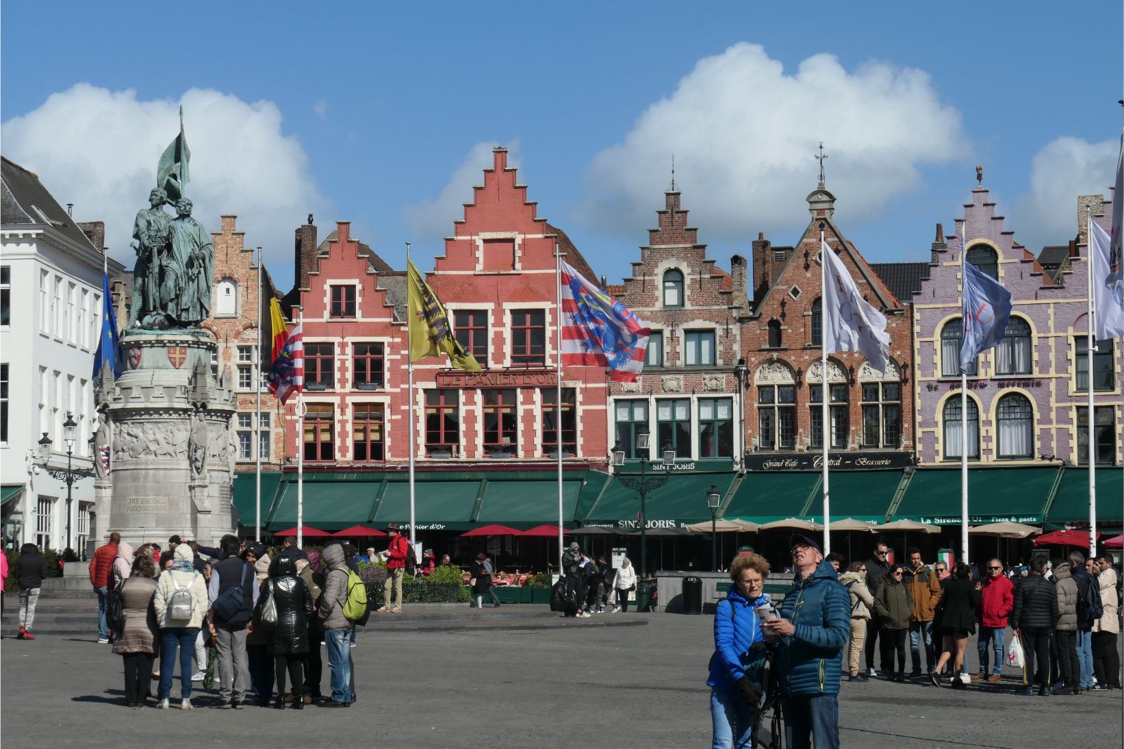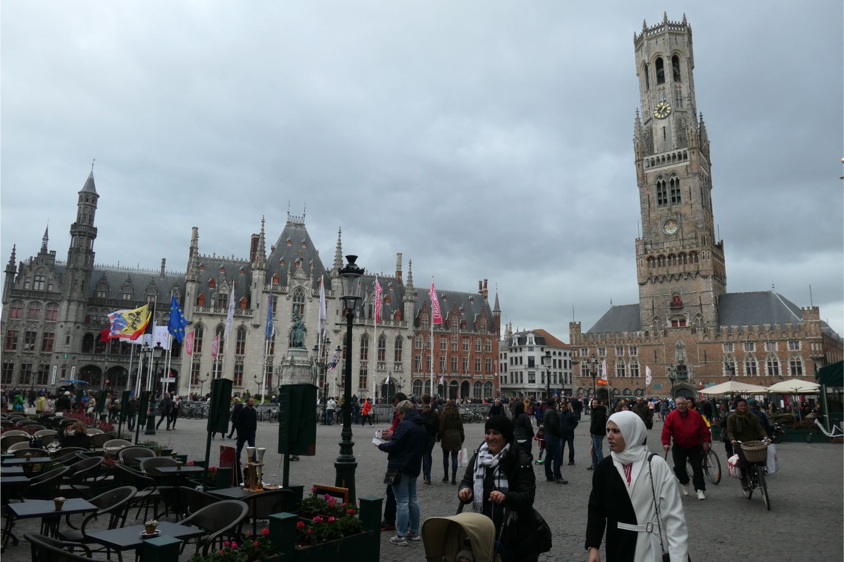 The weather was chopping and changing. The forecast had been for a cool 12 degrees, but the day began with blue skies and warm sunshine. It didn’t last. When the rain came, the skies turned grey, the temperature dropped by about ten degrees almost instantly and the chilly wind rattled our bones. Just when people started looking for cover, the rain eased off, the sun came out again and suddenly it was warm again. If it’s true that Melbourne sometimes has four seasons in one day, then Bruges is not far behind it.