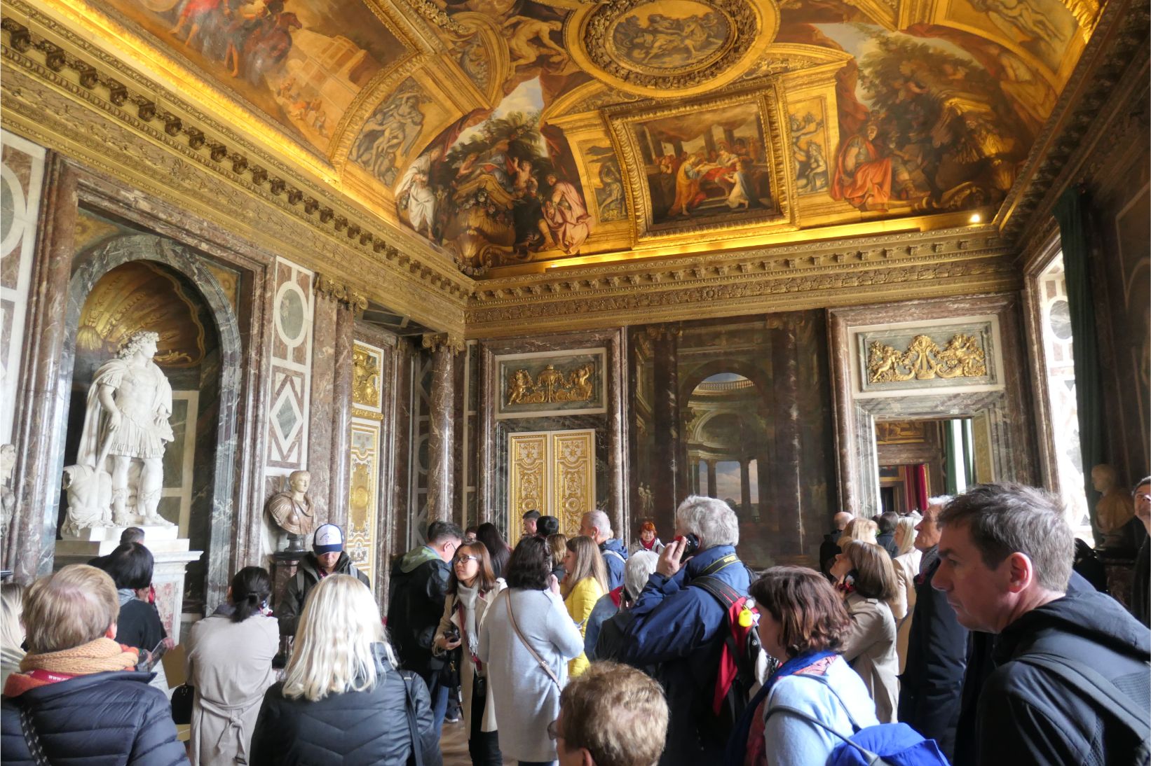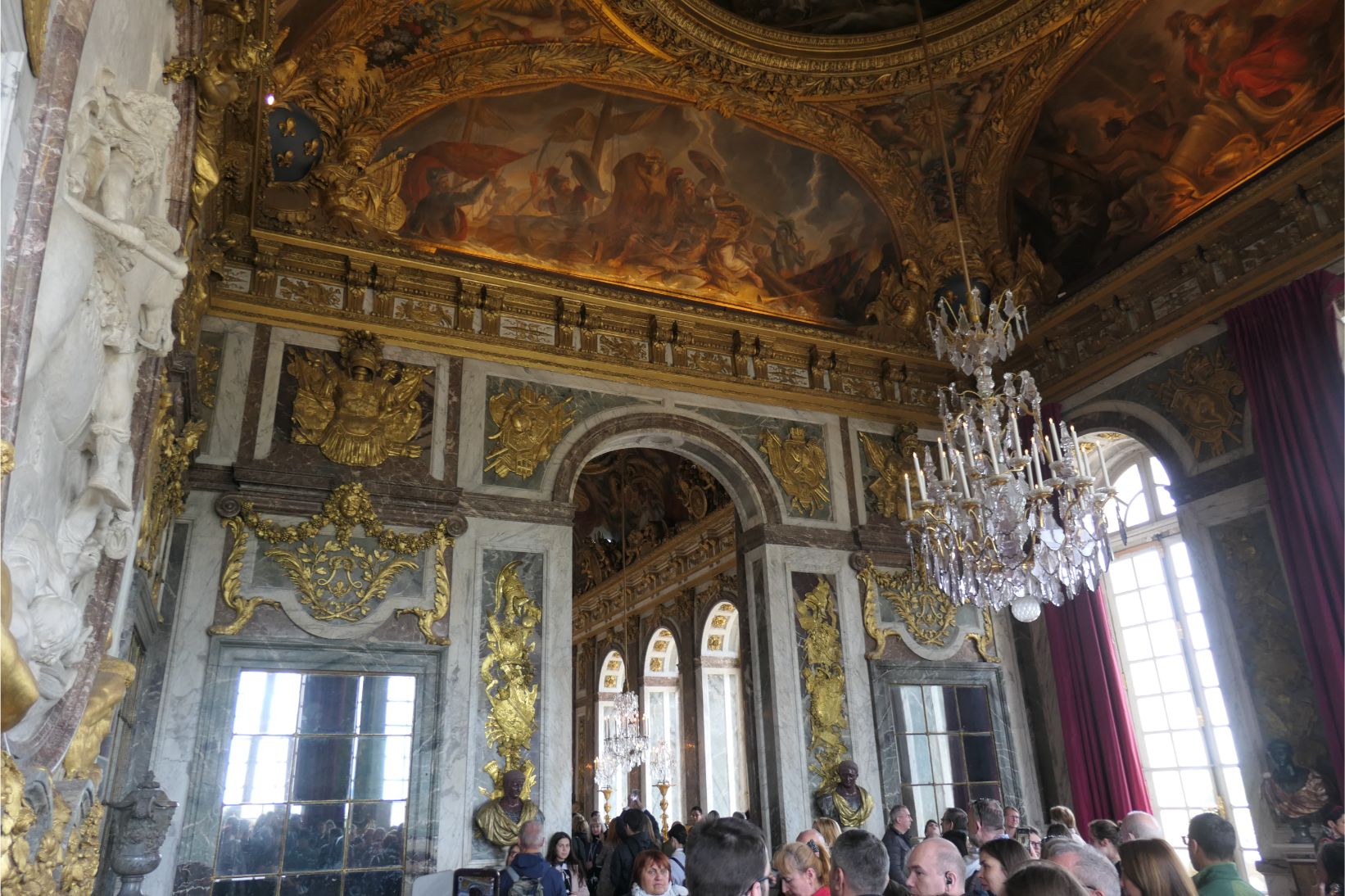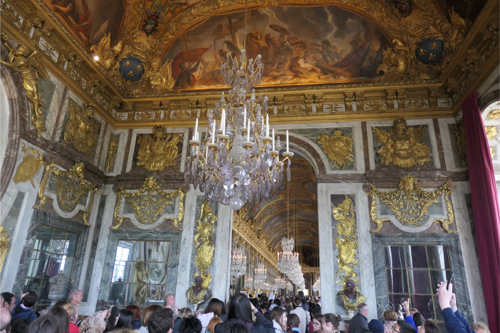 Inside the chateau, the decadence of Louis’s France was everywhere to see. Beautifully painted ceilings, gilded decorative wall panels, floor-to-ceiling height oil paintings, marble statues and decorative furniture seemed to be on show in every room. Who else but the Sun King would fill an entire room with large mirrors and crystal chandeliers at a time when even small mirrors were almost impossible to obtain. In addition to Louis XIV, we heard stories of Louis XV and Louis XVI, Marie Antoinette and Napoleon.