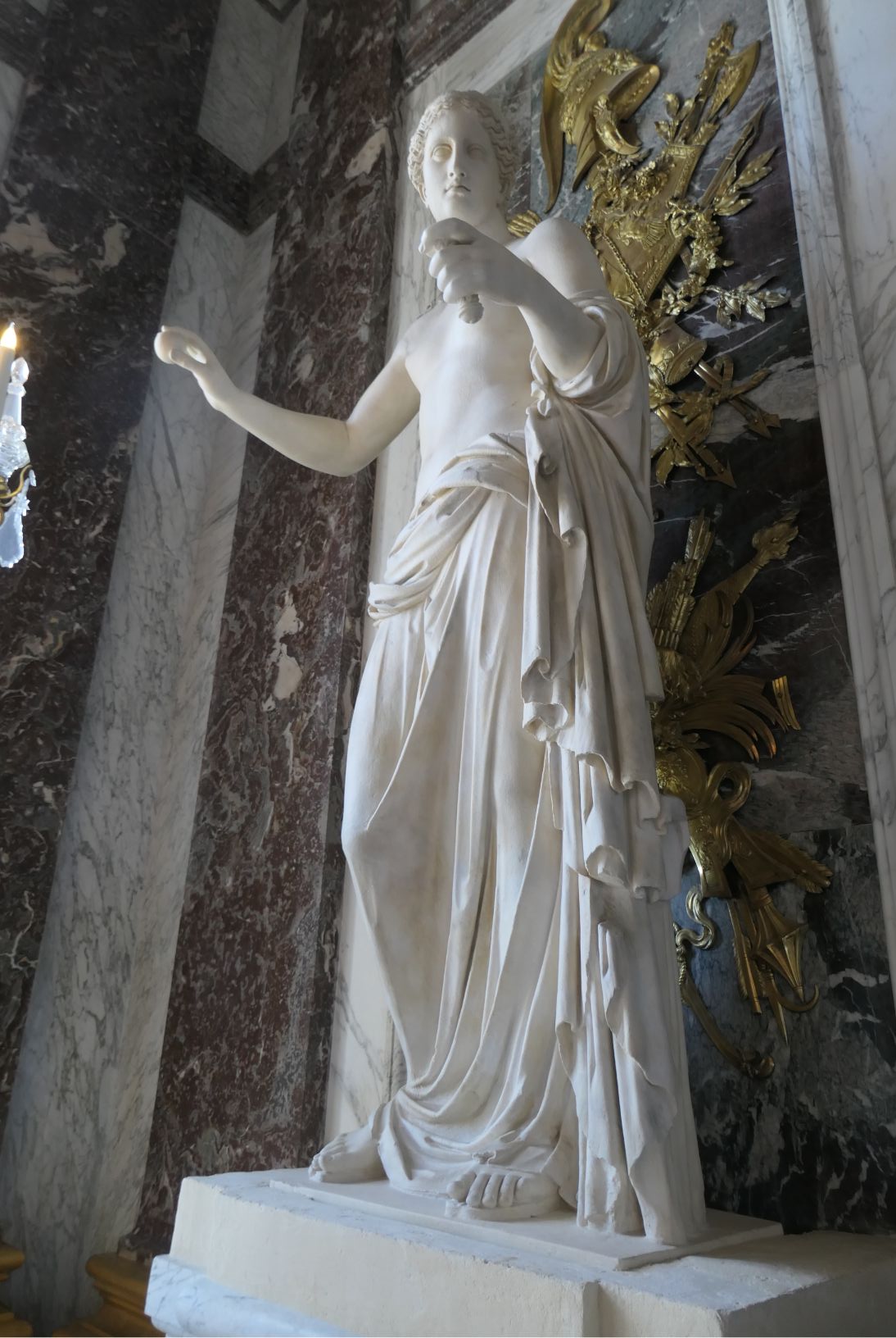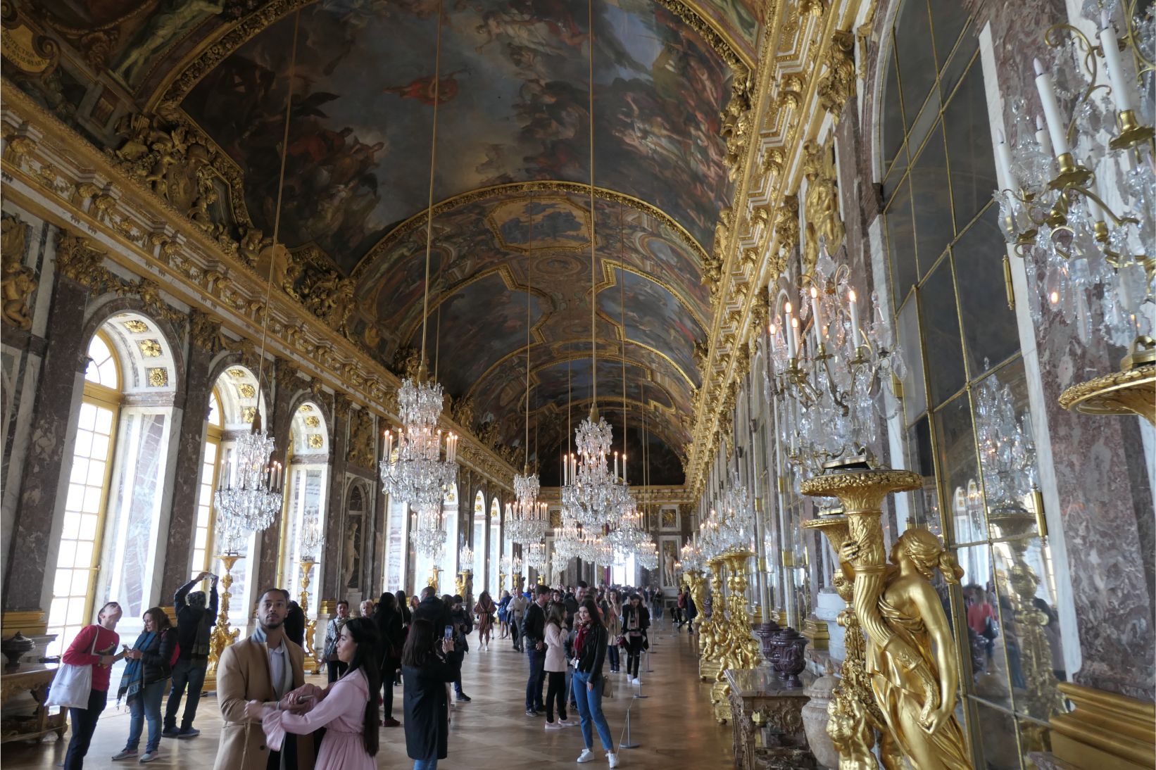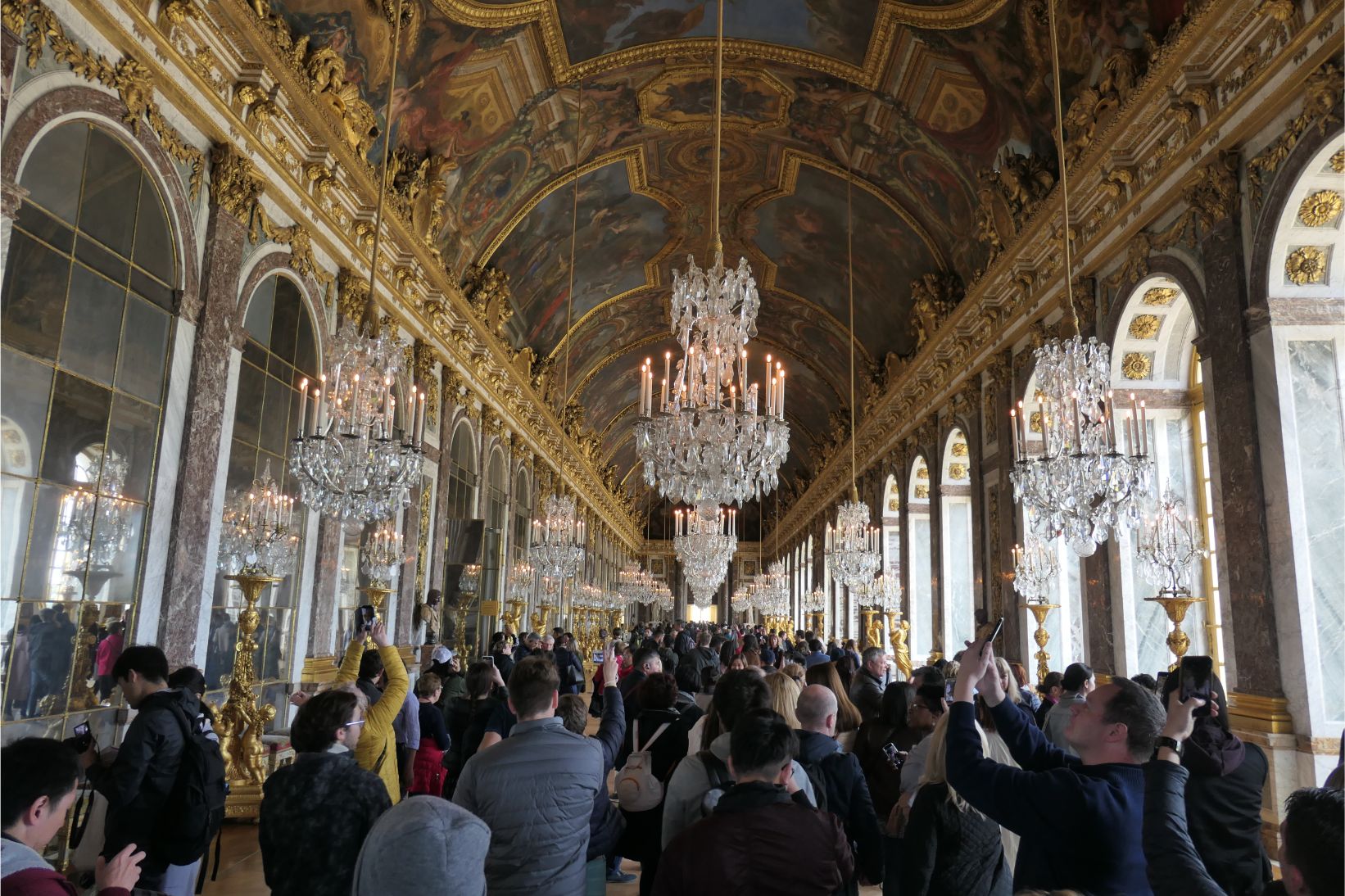 Inside the chateau, the decadence of Louis’s France was everywhere to see. Beautifully painted ceilings, gilded decorative wall panels, floor-to-ceiling height oil paintings, marble statues and decorative furniture seemed to be on show in every room. Who else but the Sun King would fill an entire room with large mirrors and crystal chandeliers at a time when even small mirrors were almost impossible to obtain. In addition to Louis XIV, we heard stories of Louis XV and Louis XVI, Marie Antoinette and Napoleon.