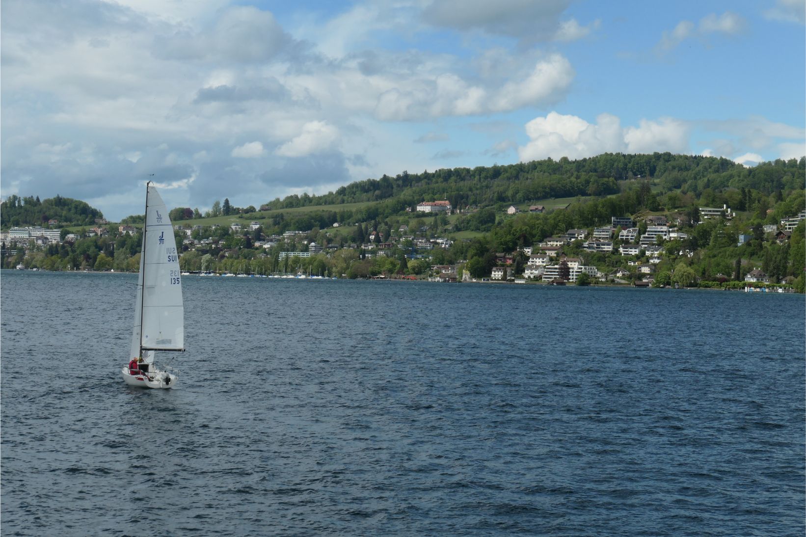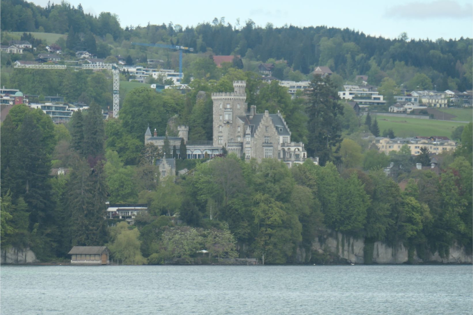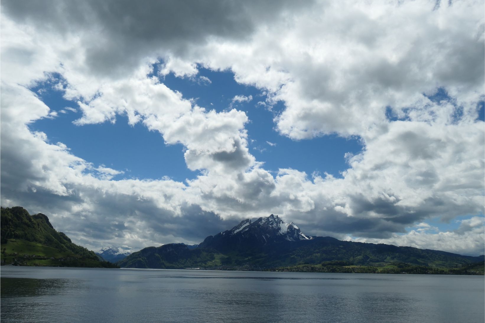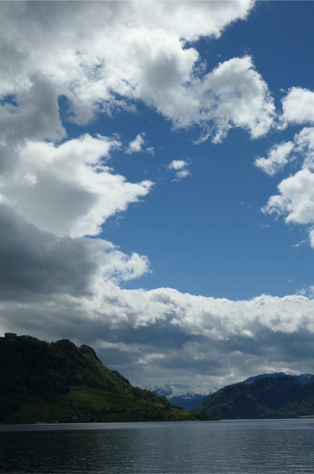 The cable car had brought us down from high on Rigi to the shores of Lake Lucerne. Although grey clouds obscured some of the peaks, the lake was surrounded by beautiful white snow capped mountains. A boat picked us up at the dock in Weggis and took us to Lucerne. We went out to the bow of the boat to take photos, but it was quite windy and chilly up there. To our starboard side, the massive form of Pilatus dominated the landscape. It’s a majestic mountain.