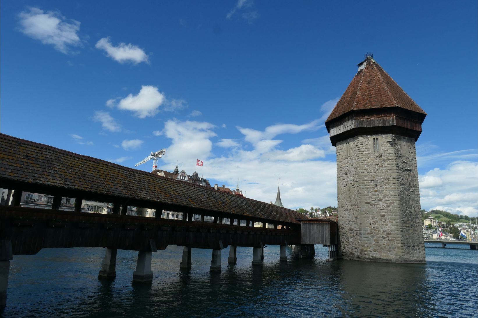 In Lucerne, the weather brightened up for a while. Rod and Cornelia took us to the old wooden bridge, which caught fire in the 1990s, causing a number of irreplaceable historic artworks housed within the structure to go up in flames. It’s also the place where Rod and Cornie first met back in 1985, so it was kind of special for them to take us back there today.