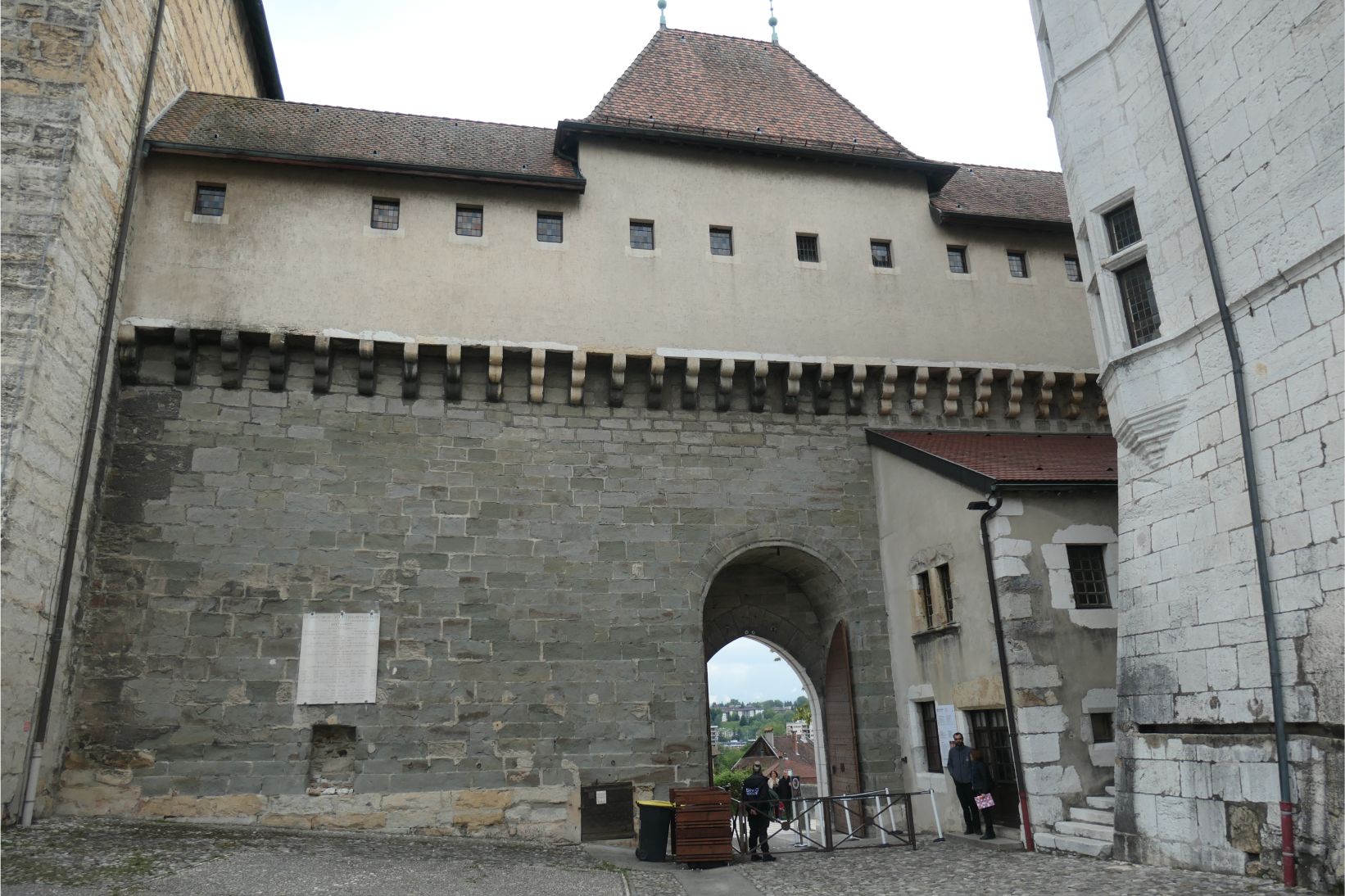 We walked up the steep slope to the castle. After 6pm there was no entrance fee to pay, so many couples and family groups were coming in at the same time. It’s a beautiful old castle with some parts dating back as far as the Romans and the Gauls, but a good deal of what is standing today goes back to a time when the rulers of Geneva were using it as a stronghold. There were information panels, but the English translations of the French originals were almost incomprehensible in places, or in many places there was only French language used, so we learnt very little of the history of the castle. Nevertheless, it was a fascinating old building to walk through, and we enjoyed features of the centuries old architecture.