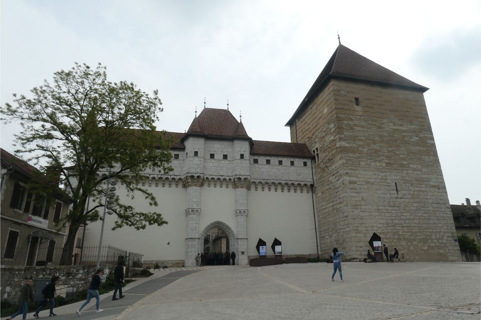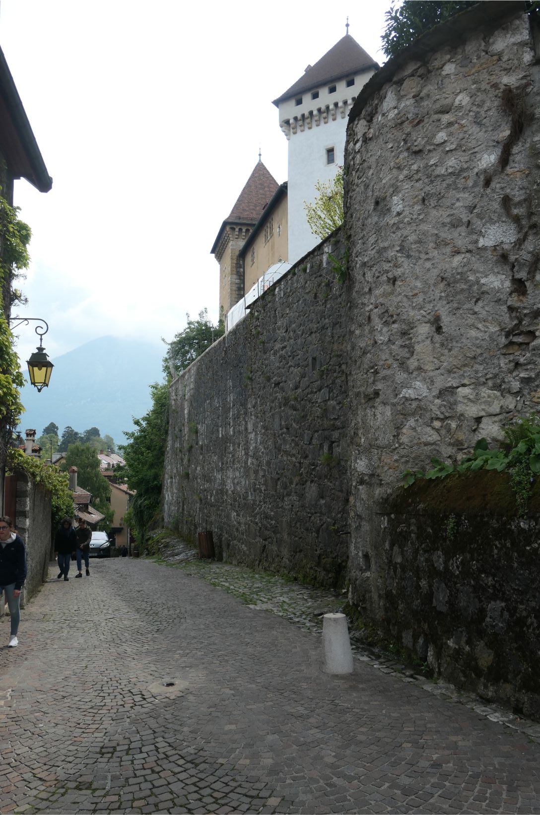We walked up a steep incline to the old Annecy Castle, but it was closed to the public for the morning, so we decided to try again this evening. We went back into the old town and wandered through the streets. It’s such a beautiful place. We found a place that sold baguettes, so we bought one each and headed over to the park by the lake to eat our lunch. We were there for quite a while, as it’s virtually impossible to eat a crusty baguette quickly, watching all the people come and go. Some hired boats or pedalos and ventured out onto the lake. Annecy on a Saturday is so laid back in comparison to what we’ve been witnessing in Paris on a Saturday, where the city remains on high alert while the yellow jacket protests continue.