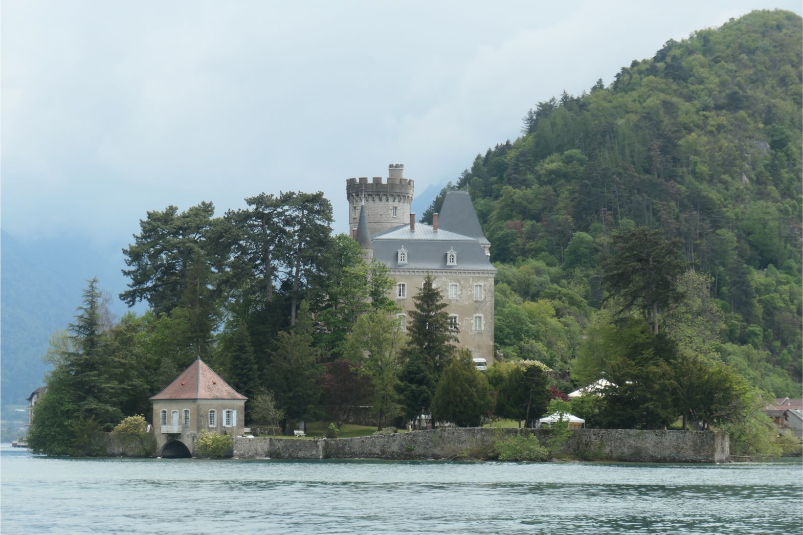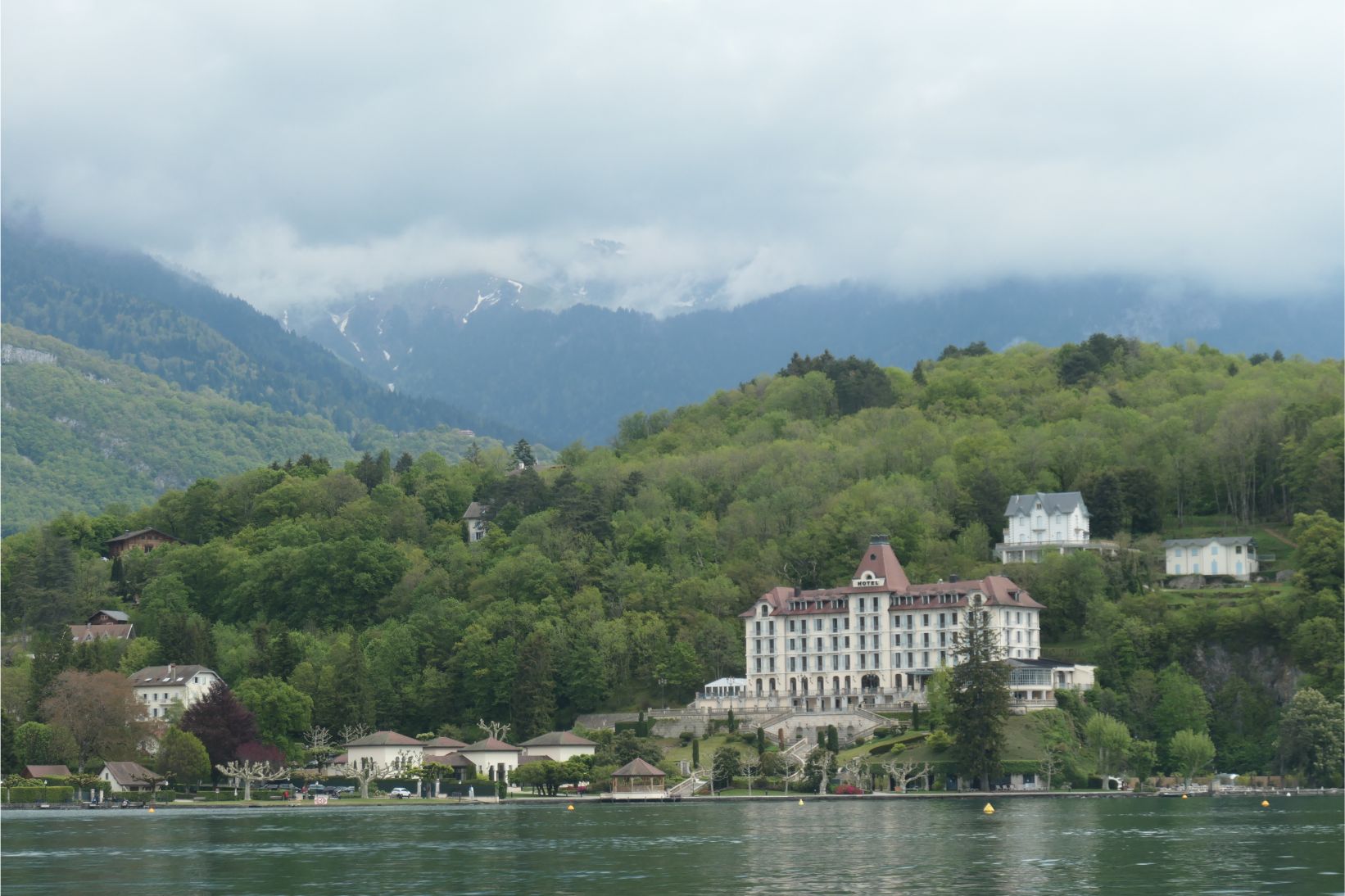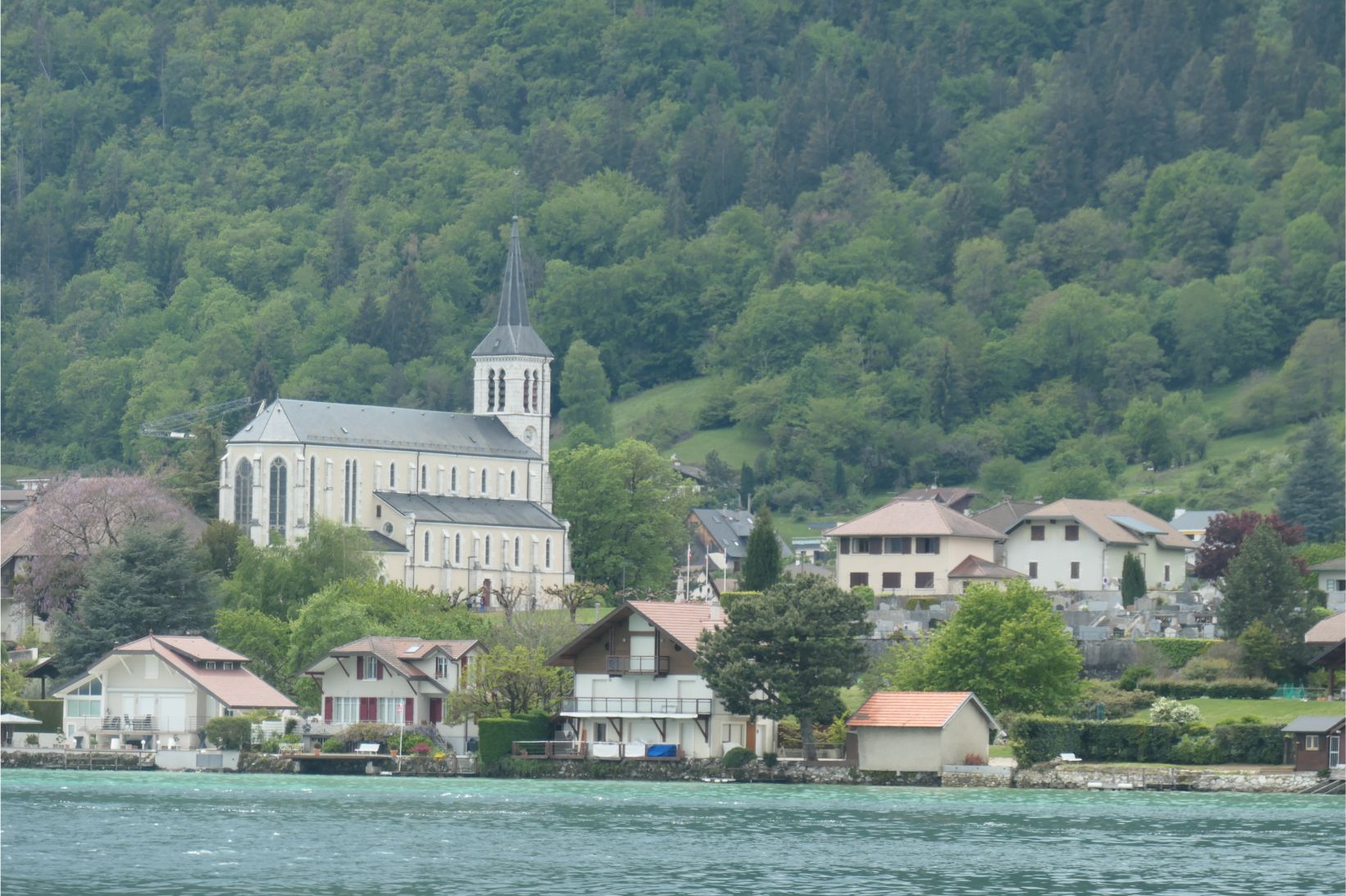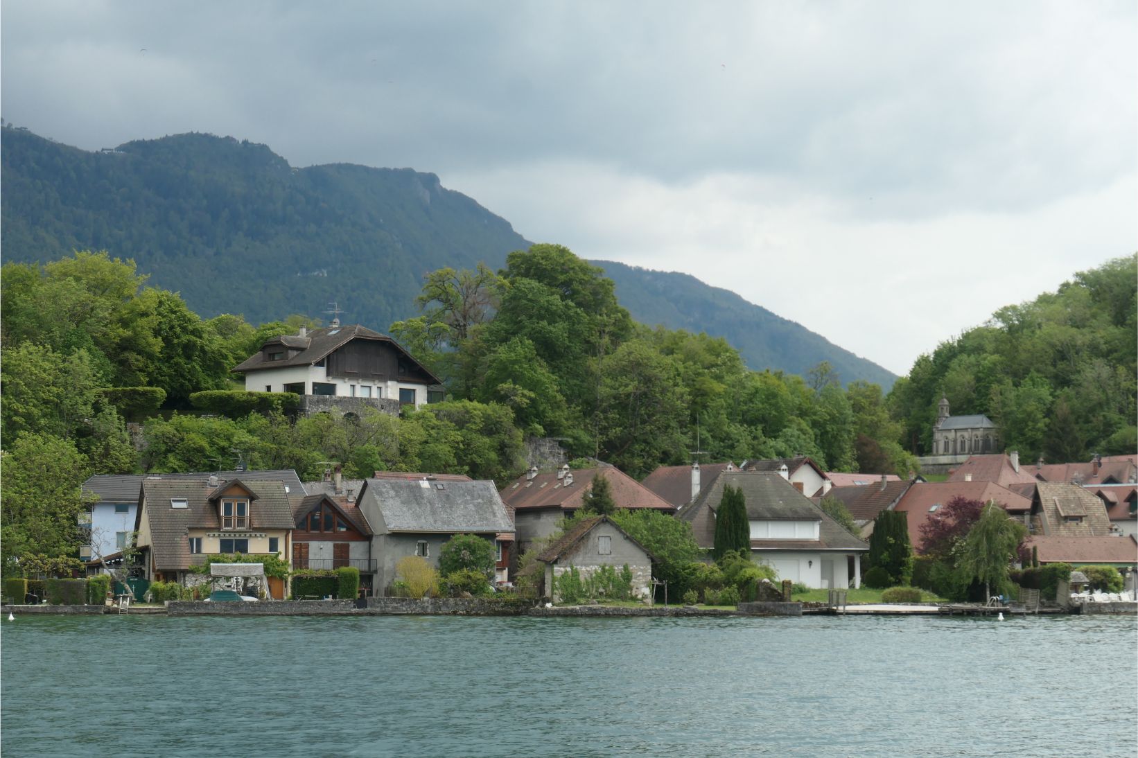 At 2.30pm we boarded a boat for a one hour cruise around Lake Annecy. Unfortunately the mountains on the far side of the lake, including Mont Blanc, were obscured by clouds, although we could see a little snow on at least one peak.