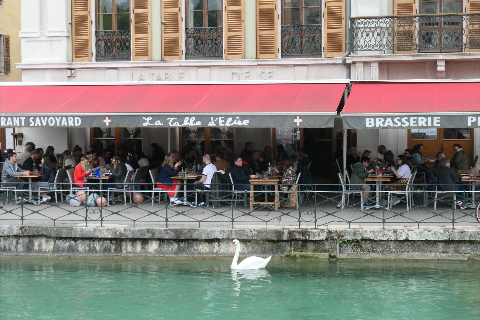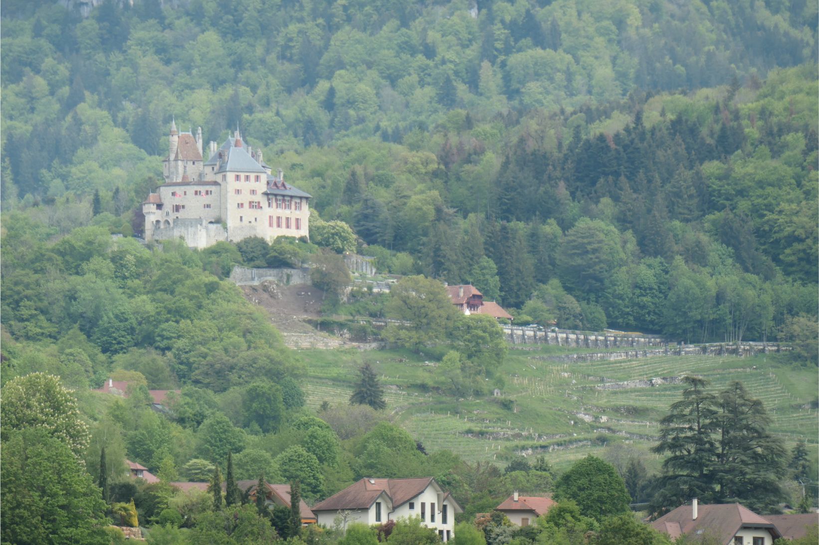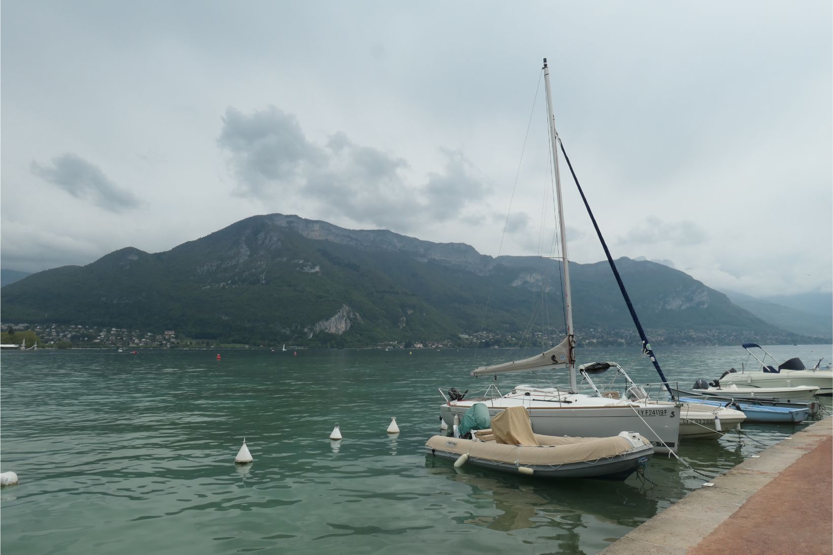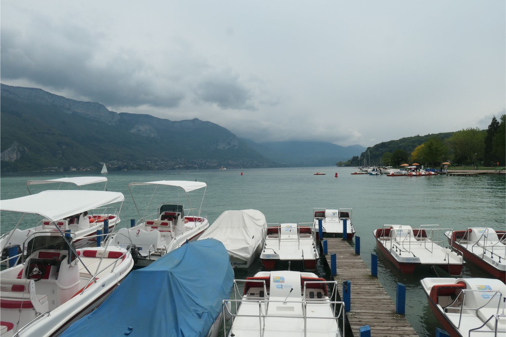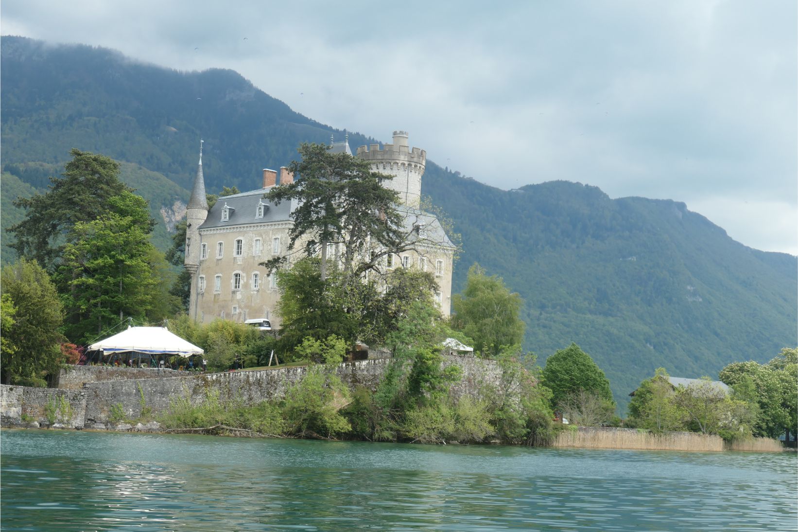 At 2.30pm we boarded a boat for a one hour cruise around Lake Annecy. Unfortunately the mountains on the far side of the lake, including Mont Blanc, were obscured by clouds, although we could see a little snow on at least one peak.