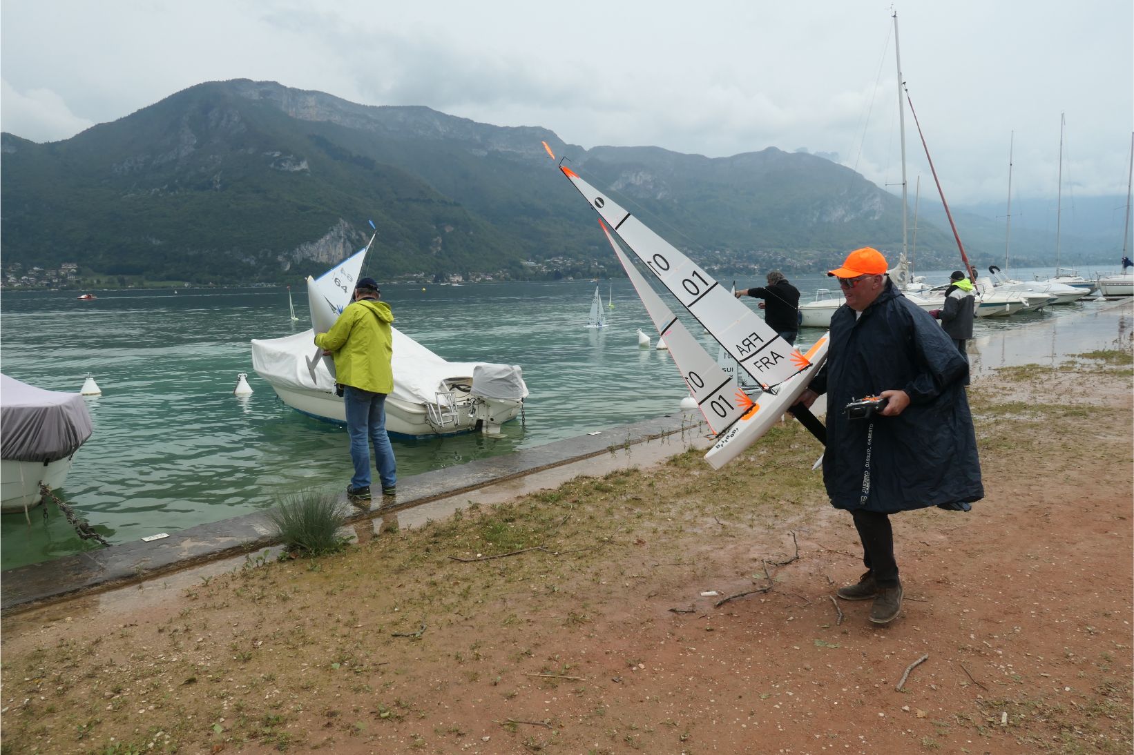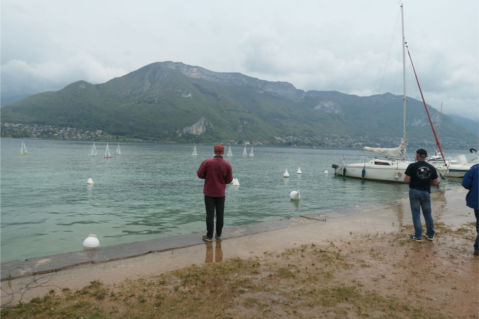 Along the lake shore we came upon a group of guys and one woman racing scale model yachts by remote control. They were taking it very seriously, with one man clearly officiating and making sure everyone was following the rules. After some practice runs, the model boats were lined up behind the starting buoys and the race began when the starting signal was given. One boat failed to make it to the next buoy and was withdrawn from the race by an official. Eventually the Swiss competitor was first across the line, defeating its French rivals.