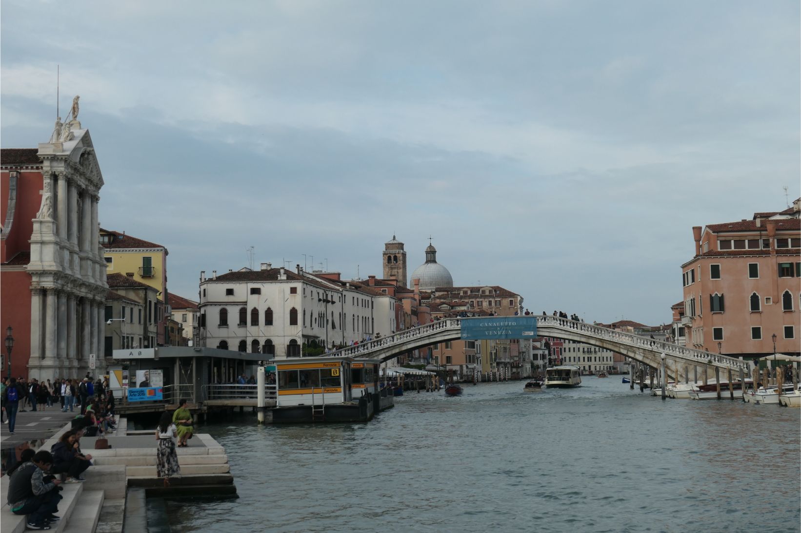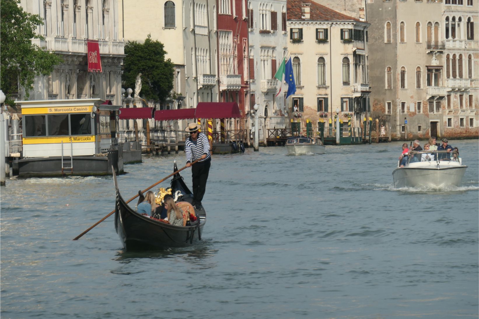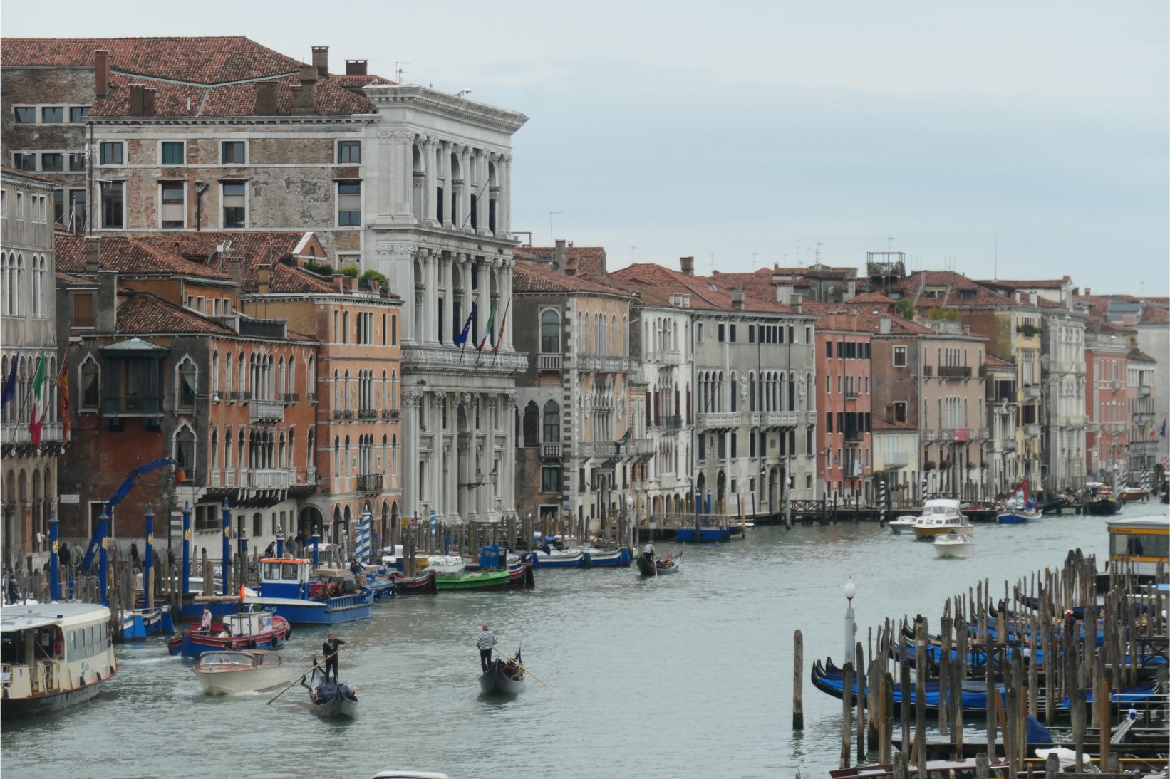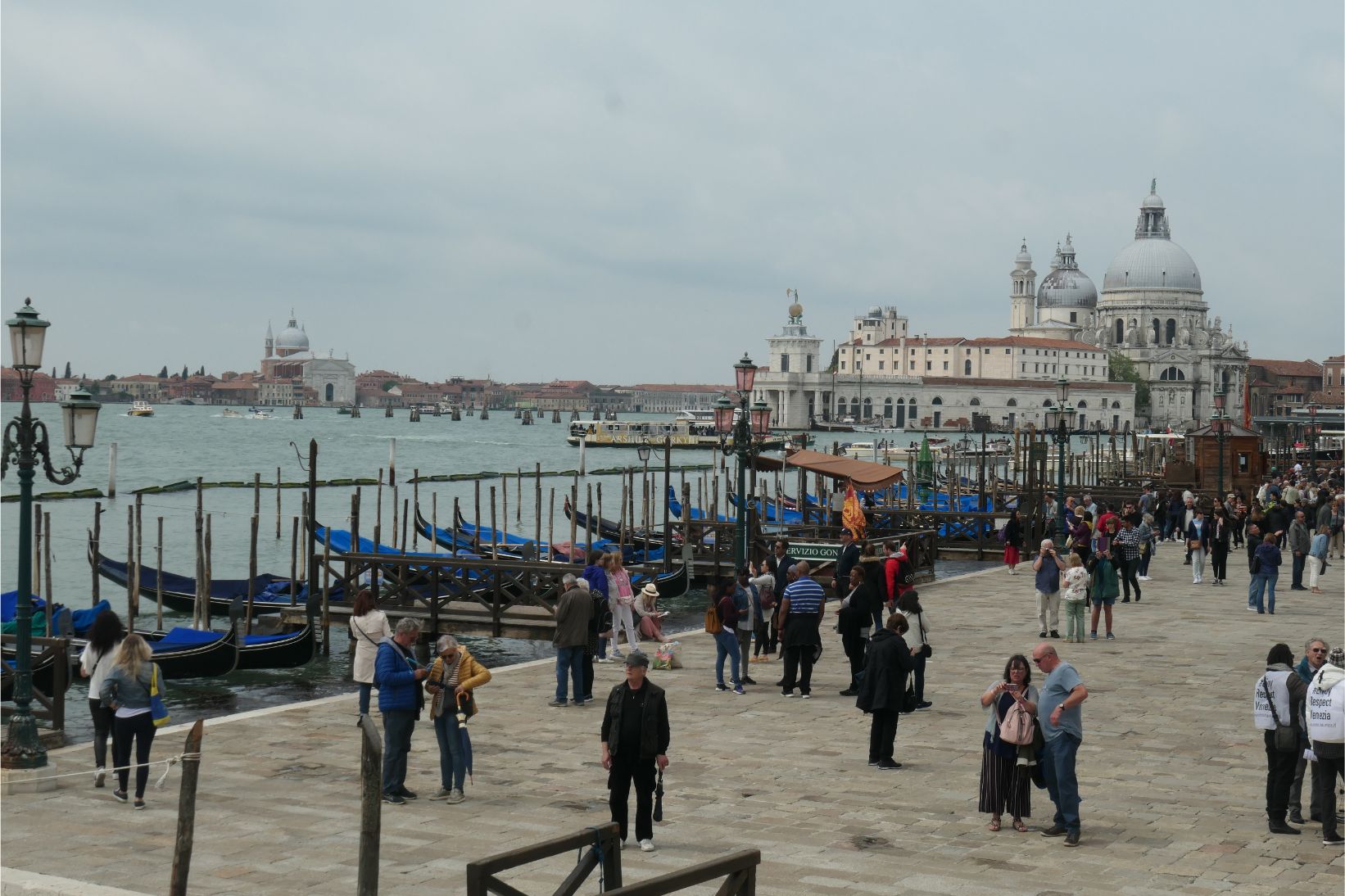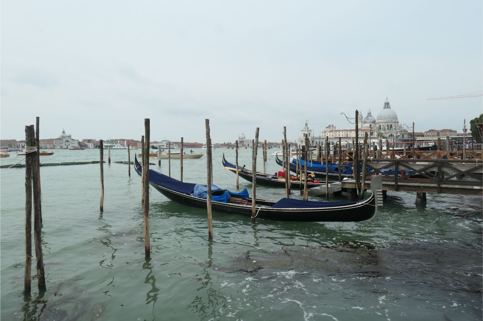 We walked along the waterfront from Piazza San Marco, where the bridges were crowded with selfie-taking tourists. We did a bit of window shopping. We bought ice creams and took them to waterways where we could watch the gondolas passing by. There are gondolas everywhere, as you can see in the photos above. They’re quite expensive at 80 euros per person for half an hour, so we’ll save our money and walk instead. A couple of times we saw them caught up in traffic jams, not moving, as a bigger boat coming the other way forced them to wait patiently for clearance to move. Of course, with so much water here, and only foot traffic on the streets, there are no cars or even bikes here in Venice, so much of the transport of heavy goods is restricted to guys pushing trolleys around, including carefully pushing them up the steps of the bridges and down the other sides. I wouldn’t want to be a truckie in Venice.