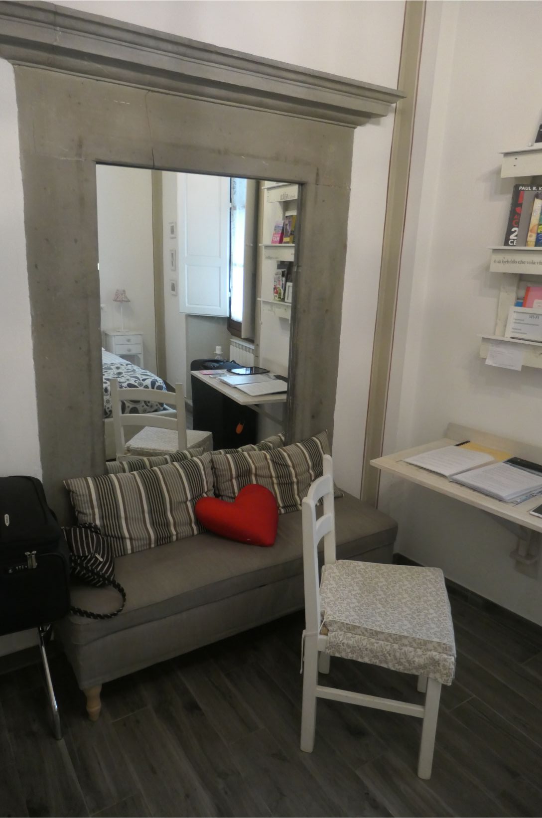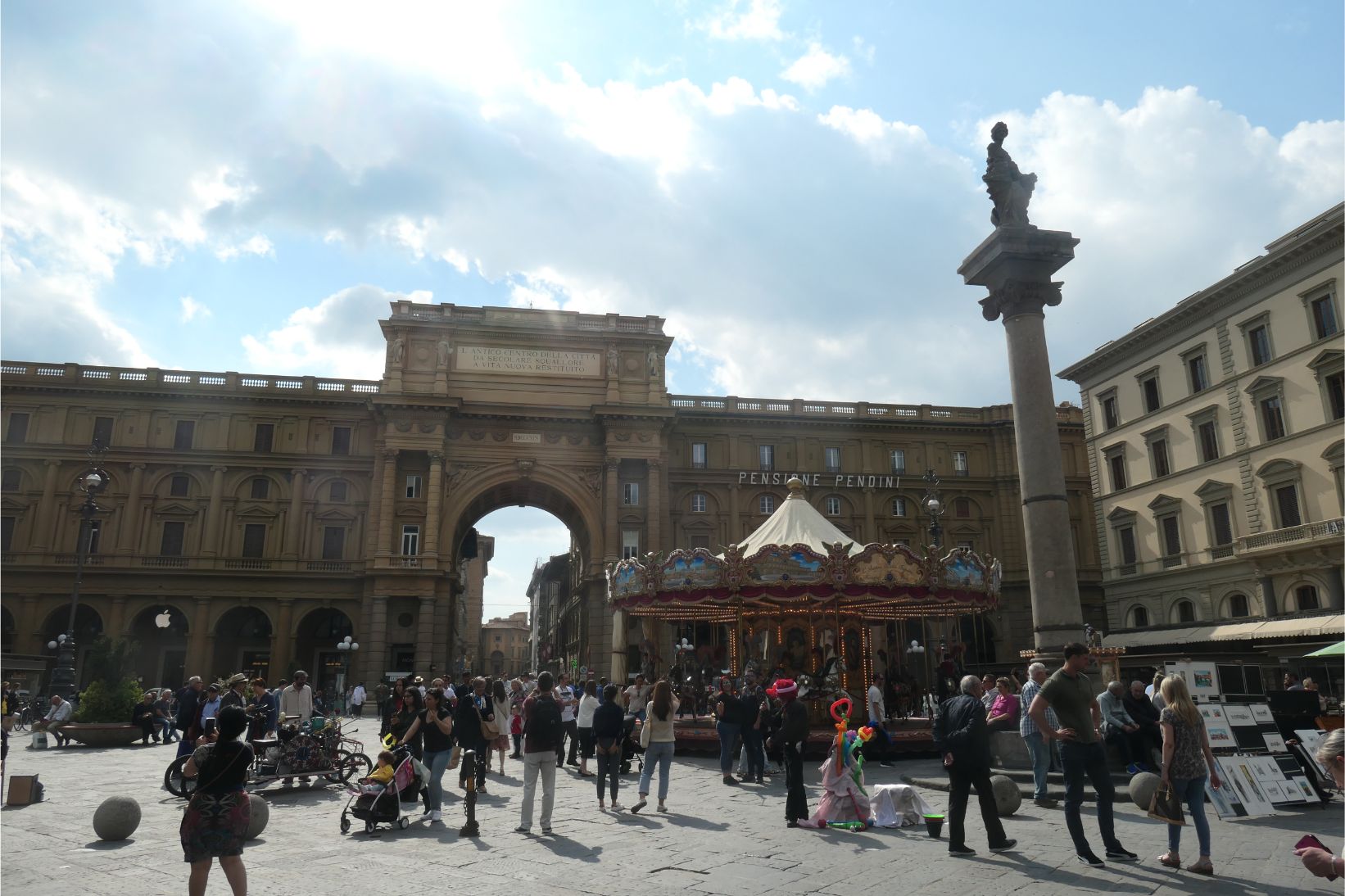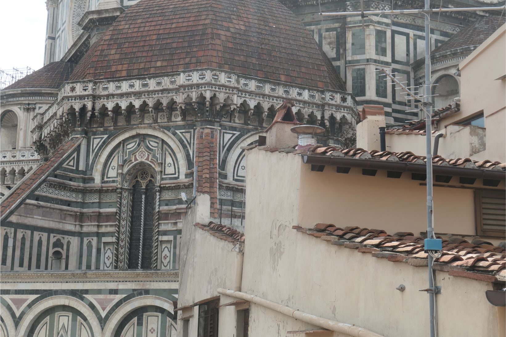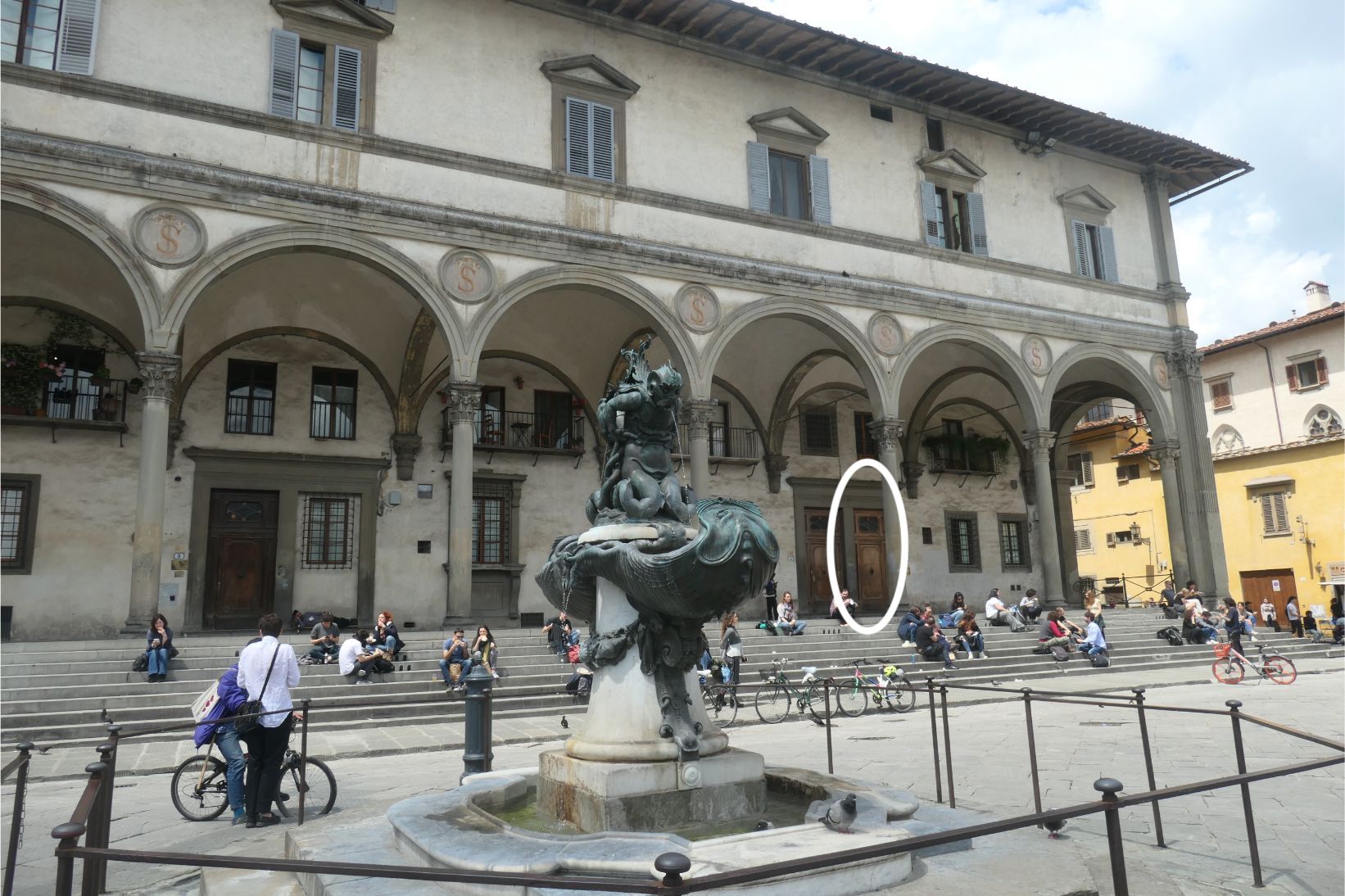I was really looking forward to seeing our accommodation, as it is our first stay in an AirBnB. I booked the place in a historic area of the city within walking distance of some of the tourist highlights. We weren’t disappointed. As you can see from the set of photos below, it is clean and well stocked with everything we are likely to need during our five night stay. It’s on the ground floor of a large building that occupies one side of the Piazza della Santissima Annunziata, and apparently elsewhere in this building is museum housing Michelangelo’s David. We’ll probably go looking for him tomorrow. As the photos show, the piazza also hosts another museum, a large bronze statue and a couple of fountains. And right at the far end of the street, maybe two hundred metres away, is the Duomo of the Santa Marie Cathedral of Florence. Wow!