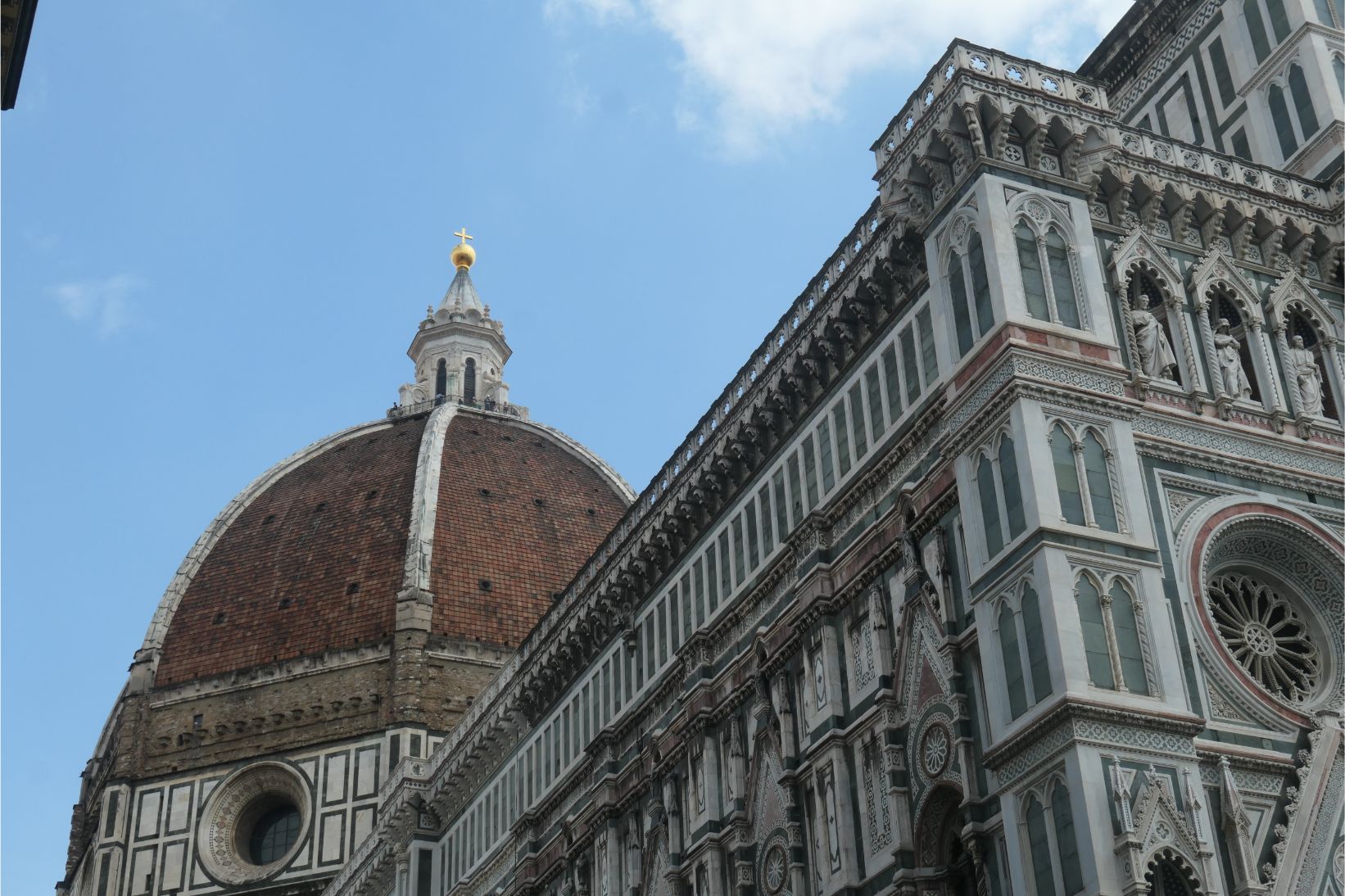 It was mid-afternoon by the time we left the apartment and walked down to the cathedral. At that time of day there were really long queues to get into both the cathedral and the baptistry. Even the skip-the-line queue was long and not moving. So we decided to leave our visit to another day and we’ll make sure we get there early in the morning before the lines get too long. Instead we bought our 3-day cathedral tickets, which also give entry to the adjacent museum, and we spent time in there learning about Brunelleschi and the magnificent dome he designed. The museum housed some of the art treasures connected with the cathedral, and the two that fascinated we most were the wooden scale models of the dome constructed by Brunelleschi before he built the real thing, and the unfinished Pieta by Michelangelo, which he apparently abandoned and mutilated after he found flaws in the marble. Thankfully it was salvaged and restored.