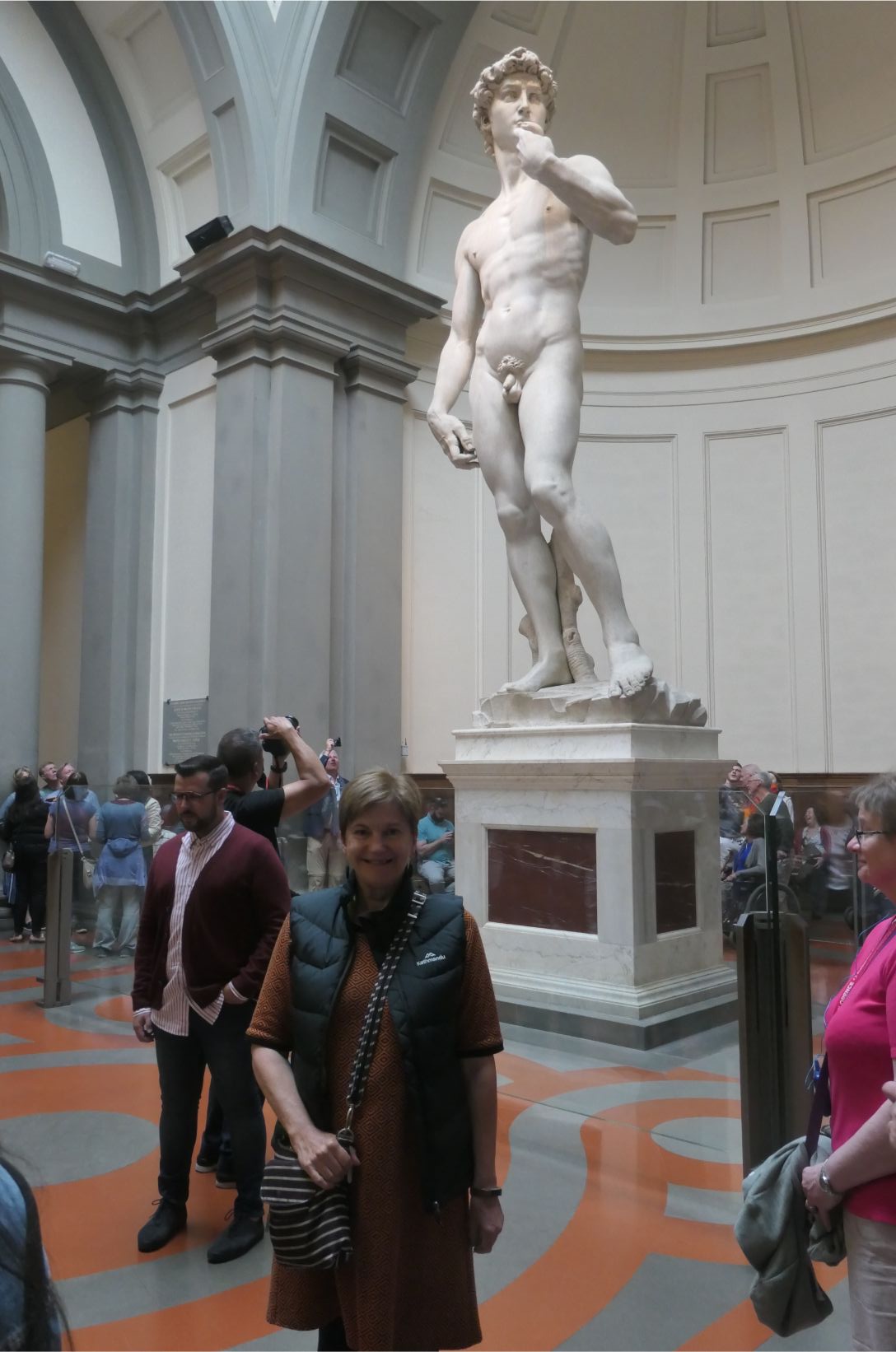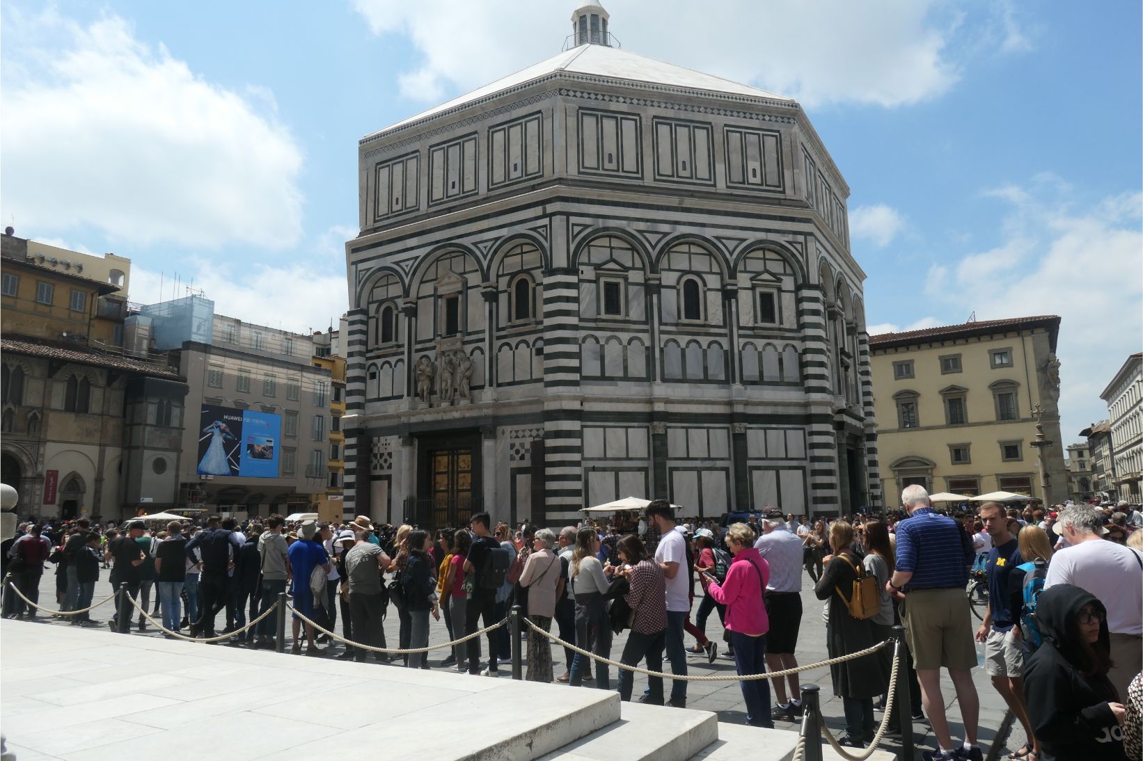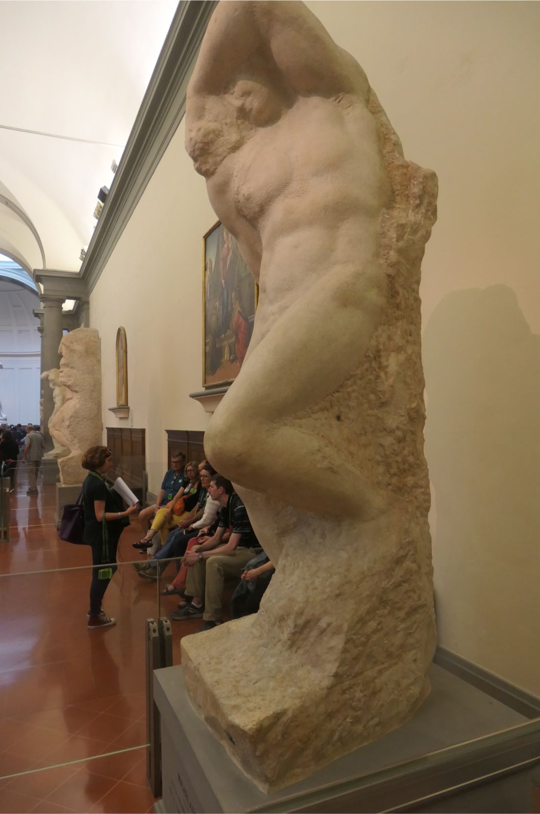 This morning we walked around two corners of the large building on the piazza where we are staying and joined the end of the queue to enter the Galleria dell’Accademia, which is another one of Florence’s art museums housing priceless Florentine Renaissance masterpieces. It was a static queue for most of the time. Every fifteen minutes, the door man counted twenty people and opened the gate for them to enter the building. The skip-the-line queue alongside of us moved just a little faster than we did, kind of like a snail racing a sloth. So, for most of the two hours we stood in line, nothing much happened. We started chatting to the American family behind us and that helped to make the two hour wait a lot more enjoyable.