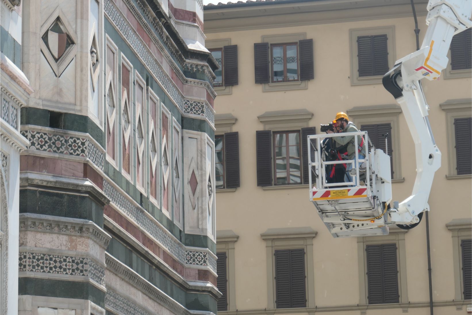 When it was built in the 1400s, this was the largest dome in the world. The architect, Brunelleschi, was a genius who found a way to build a dome that required no supporting timber or stone work to support the masonry. He built an octagonal dome in the shape of an egg, with an outer and an inner dome. The ceiling on the inner dome is a masterpiece of Renaissance religious painting.