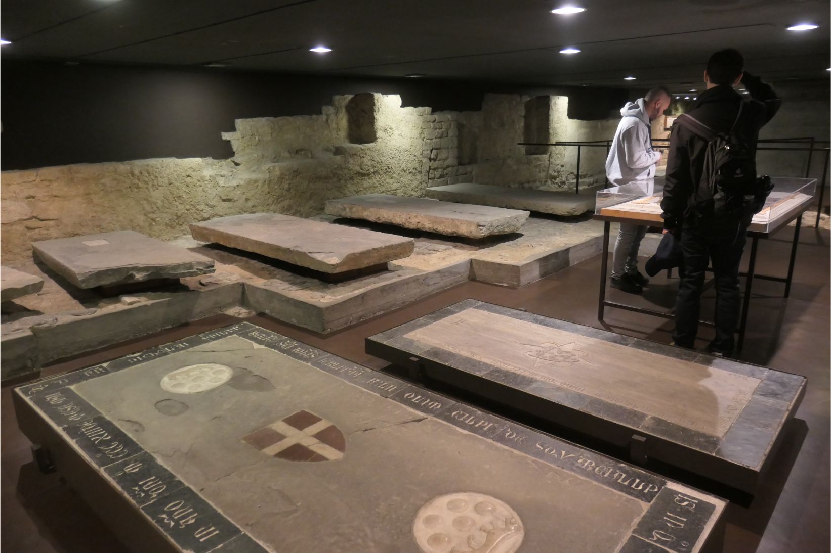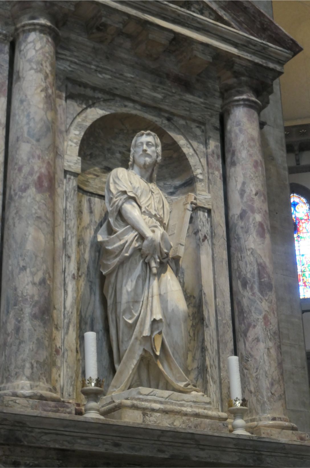 Steps leading down from floor level in the cathedral took us to a museum display where some of the original Roman artefacts from a church built here between the 1st and 4th centuries could be seen. Large sections of beautiful Roman mosaic floor tiling remain in very fine condition. There was evidence down here of further construction work done during the early medieval period.