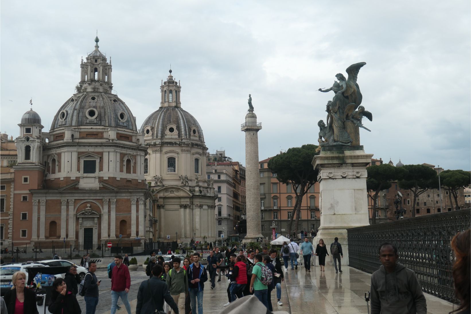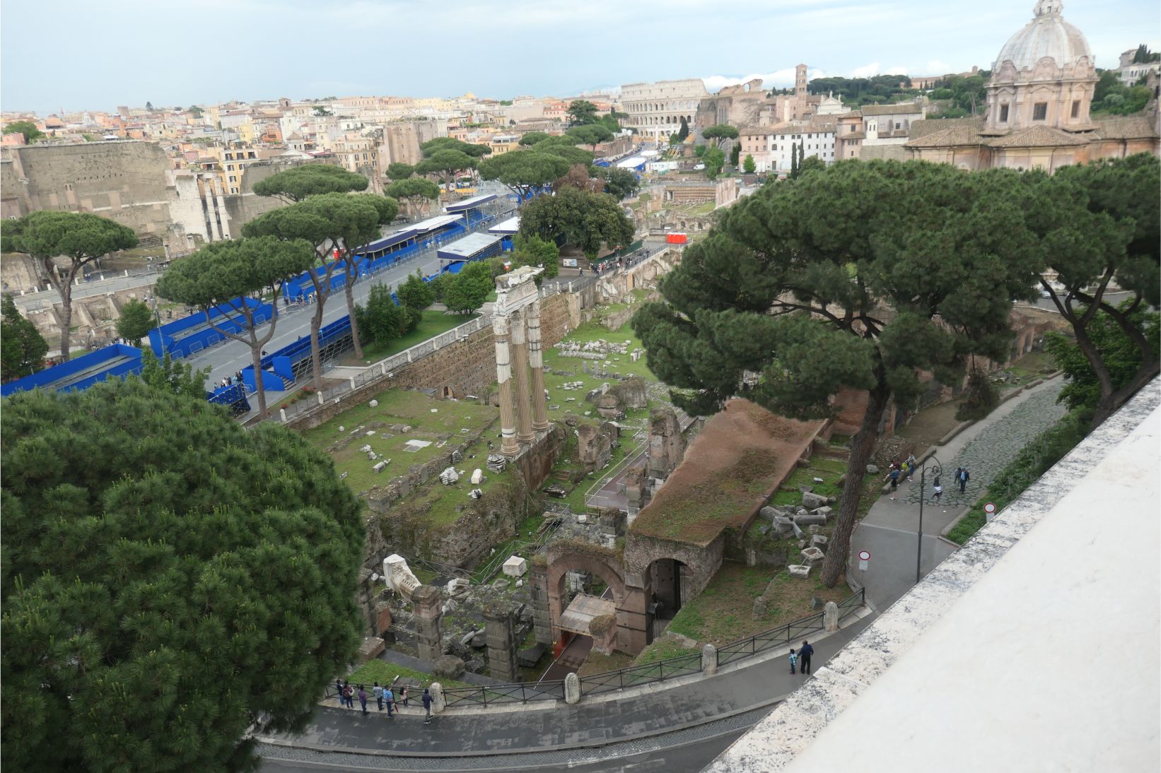 At the Piazza Venezia we arrived at the massive Monument to the first King of Italy, Vittorio Emanuele II. The tomb of Italy’s Unknown Soldier is also here, attended dutifully by a guard of honour which has watched over it since 1932. Climbing several flights of stairs within the monument took us to a viewing platform which allowed us to look out over Old Rome. The Colosseum was just down the road, but we could see a long queue, so it will wait for another day when we have more time. The ruins of the Roman Forum, Trajan’s Forum and Trajan’s Market were even closer still, and hopefully we’ll have a chance to have a longer look at these a later time as well.