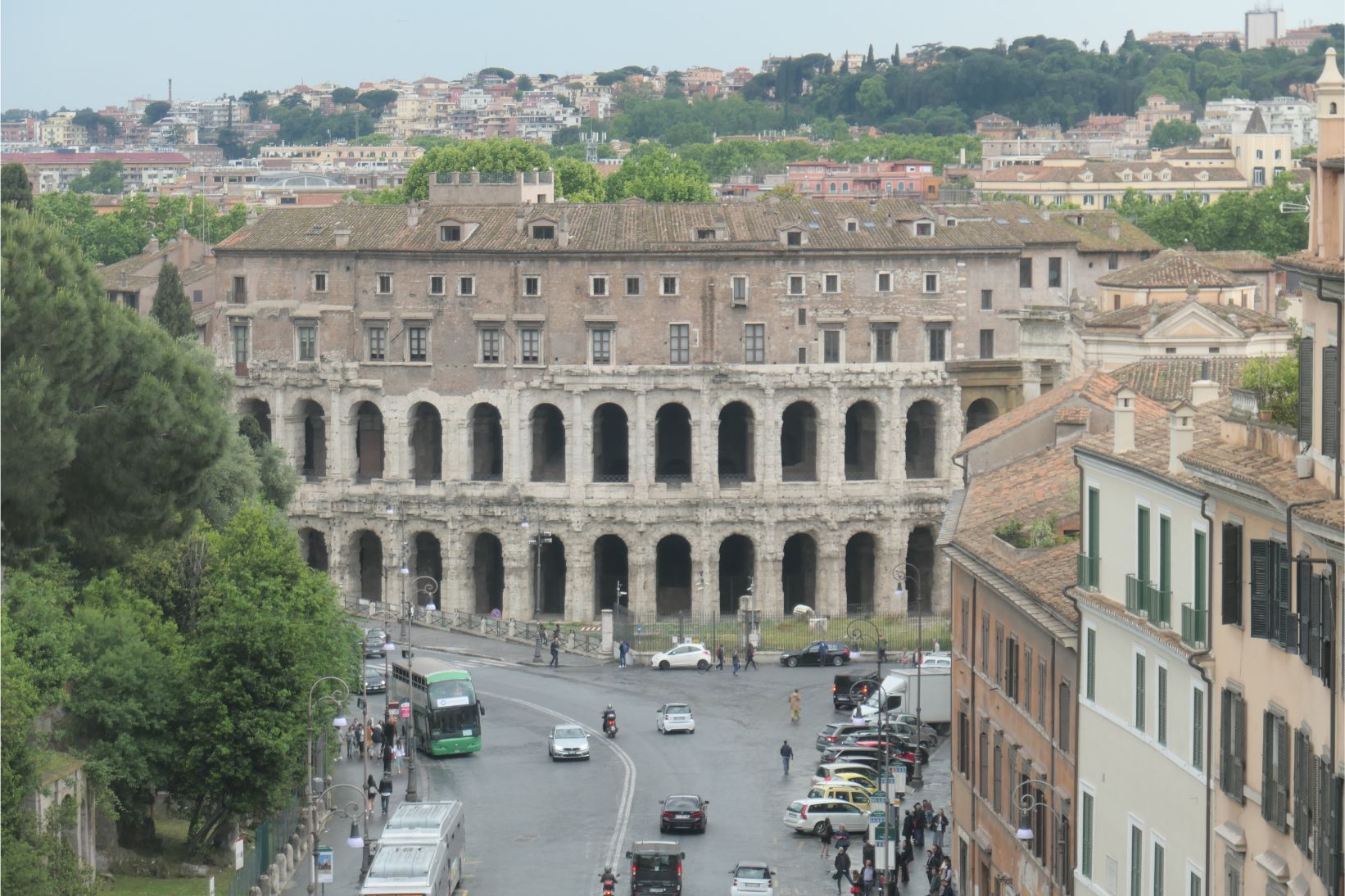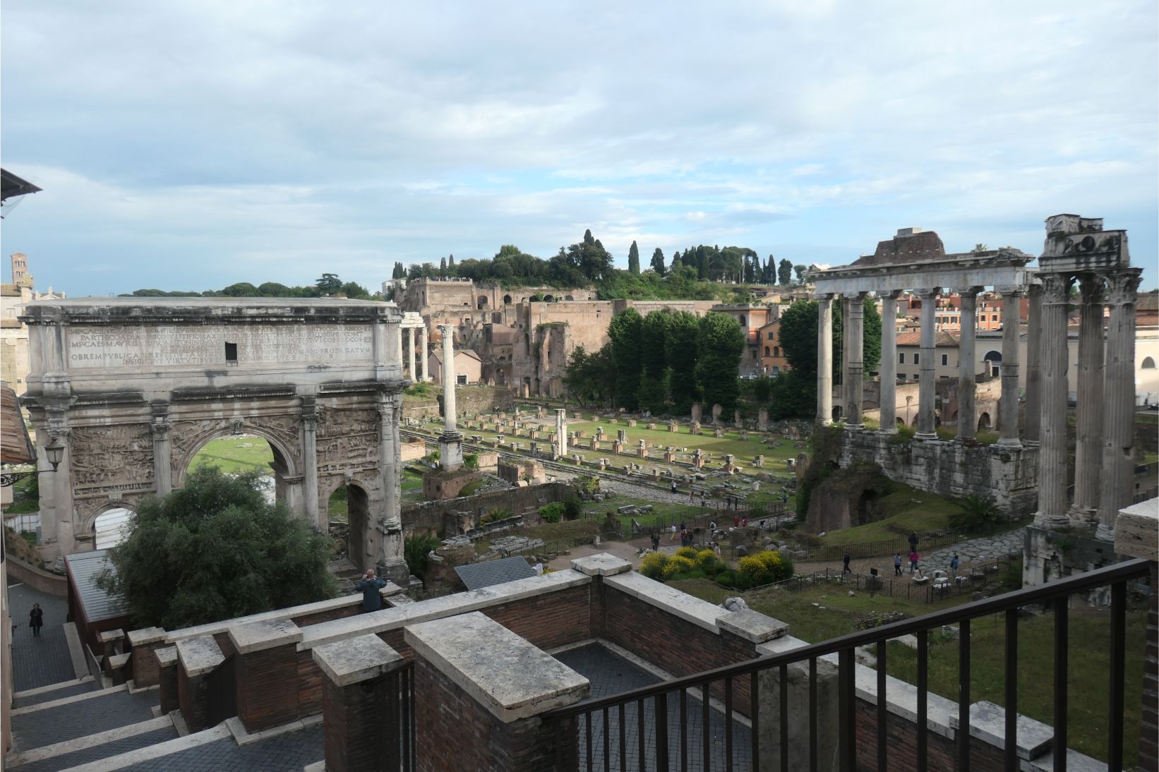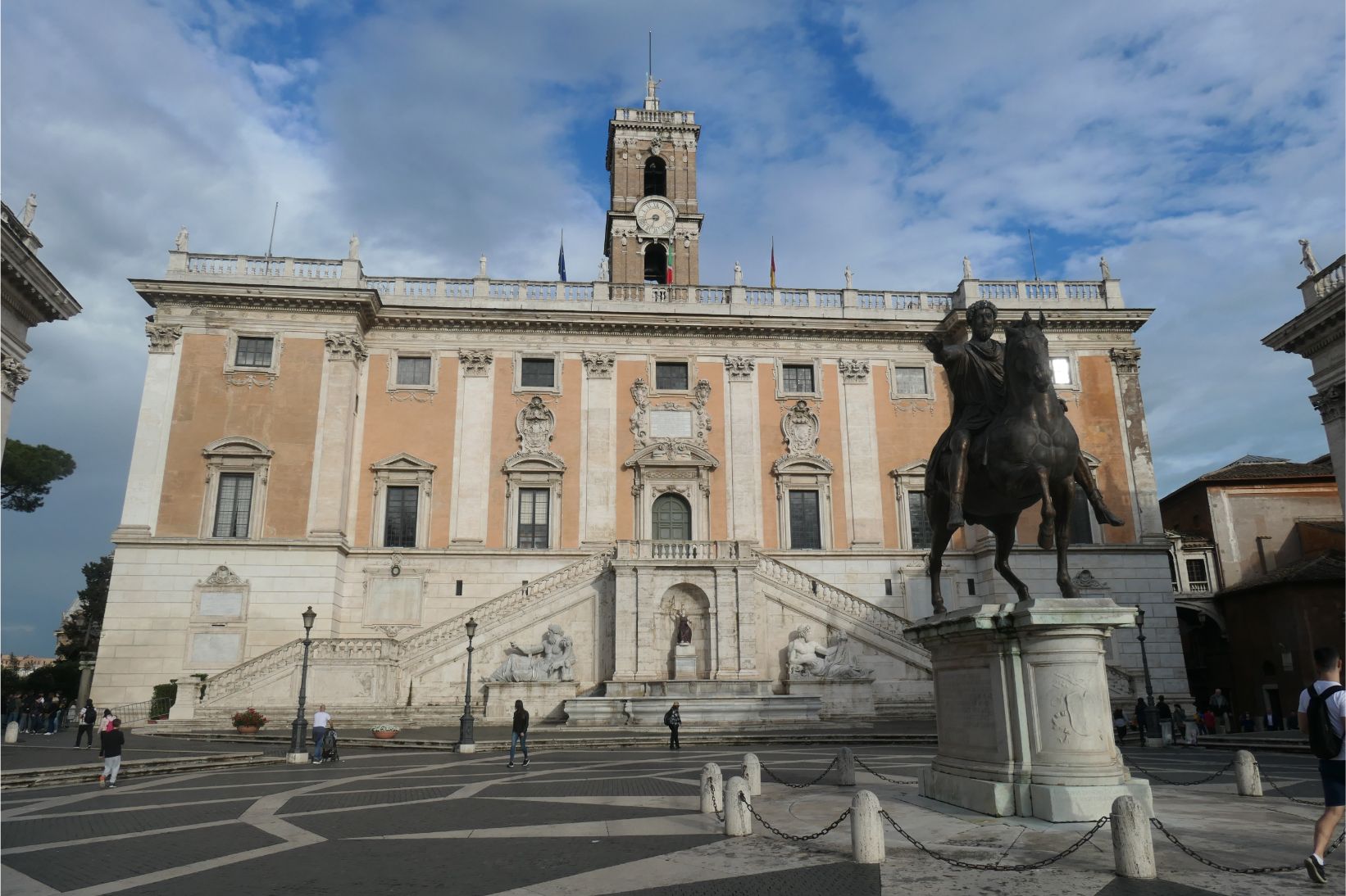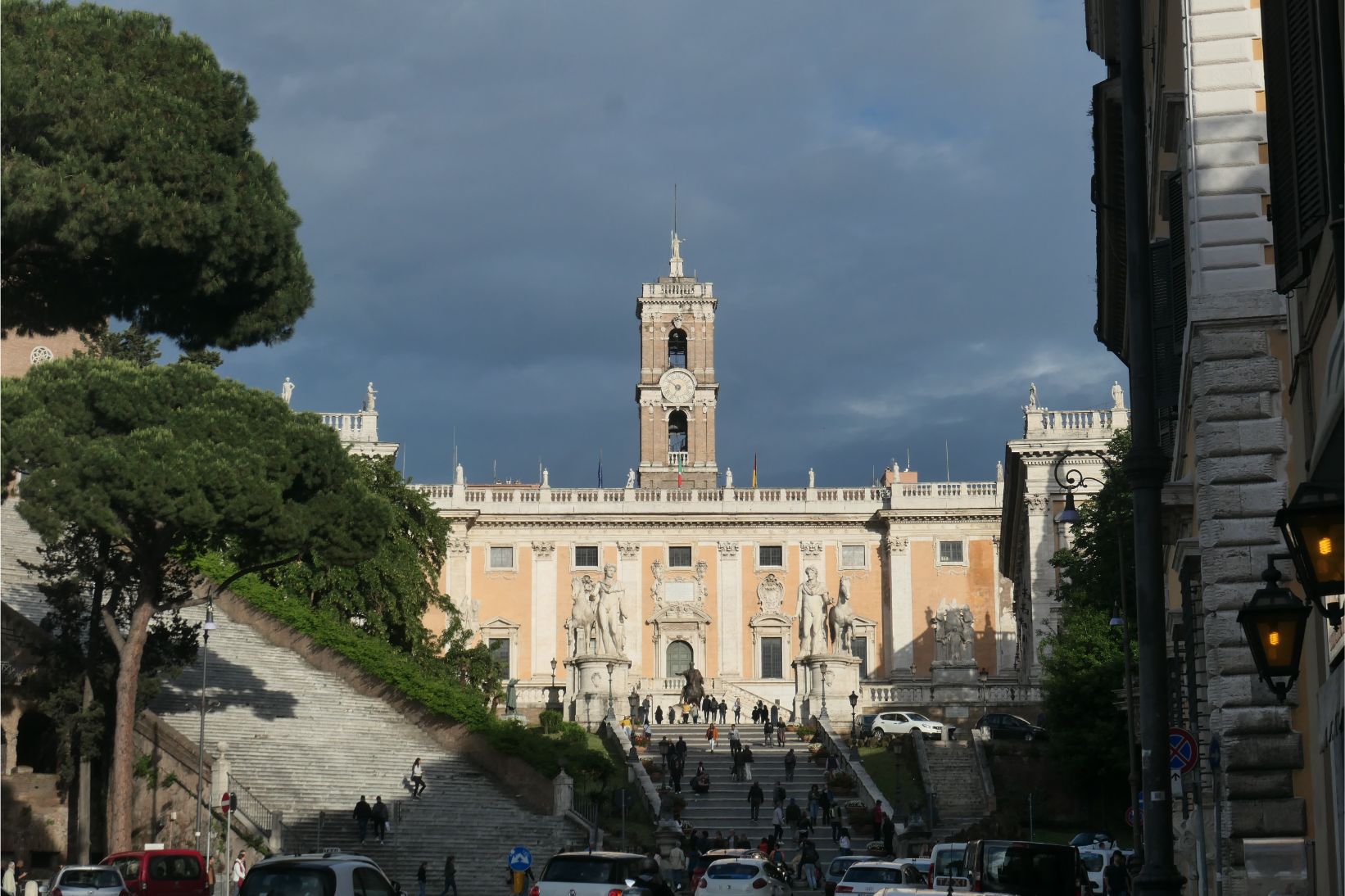 The rain had stopped and the late evening sun was lighting up the buildings on the Capitoline Hill as we began our walk back to the apartment. This is located on one of the famous Seven Hills of Rome. The Piazza del Campidoglio here was designed during the Renaissance by Michelangelo. A statue of Marcus Aurelius on his horse is the centrepiece of the piazza, surrounded by three impressive buildings, or palazzi, which are now collectively known as the Capitoline Museums. In many places we saw SPQR, which stands for Senātus Populusque Rōmānus in Latin, and literally translates to The Senate and People of Rome.
