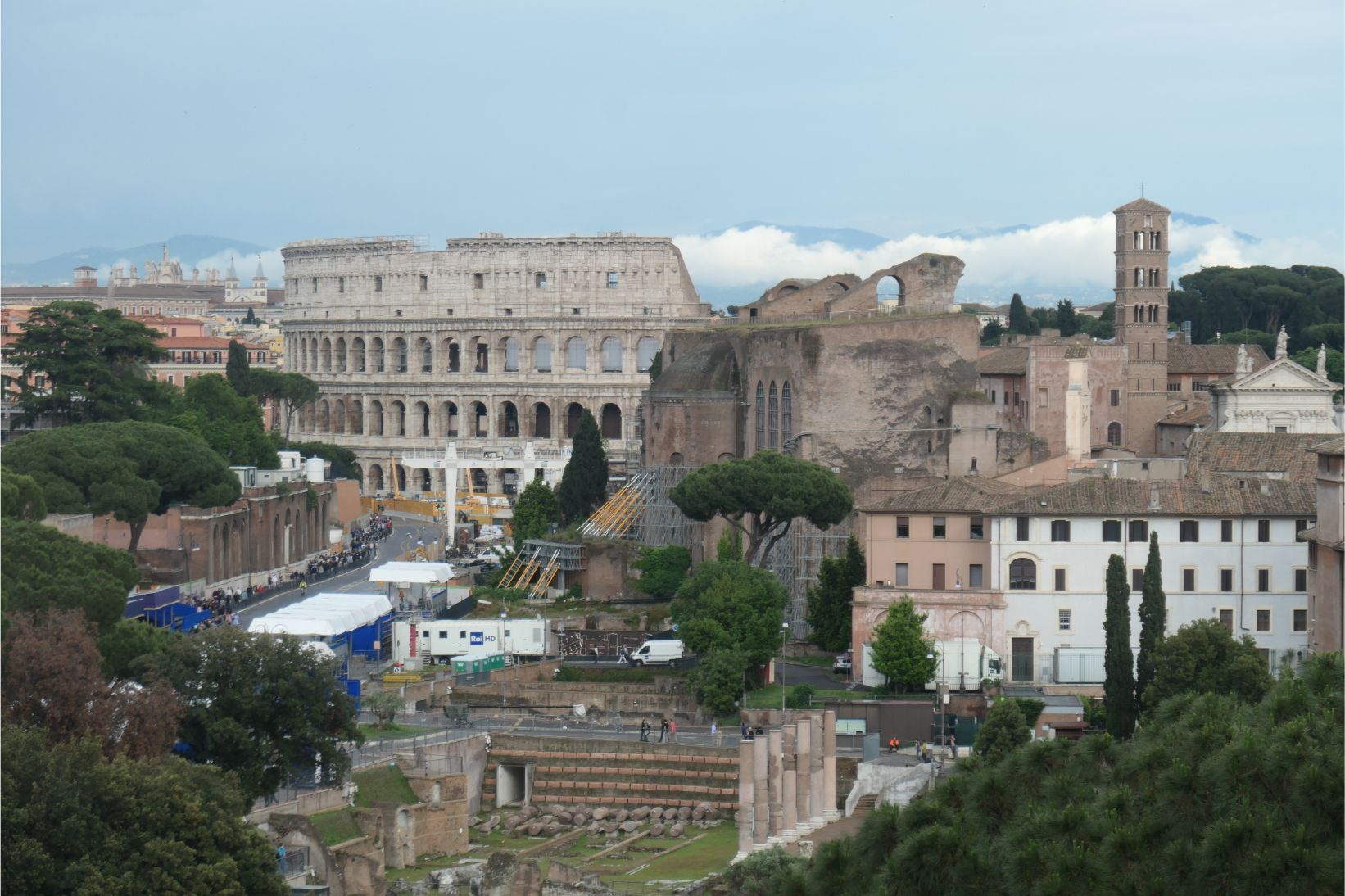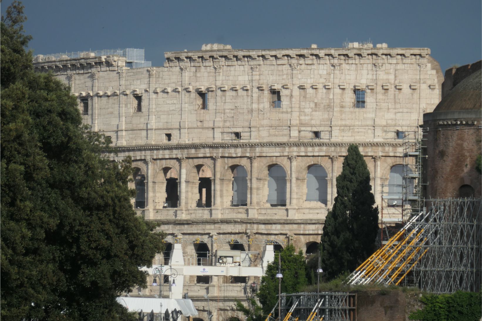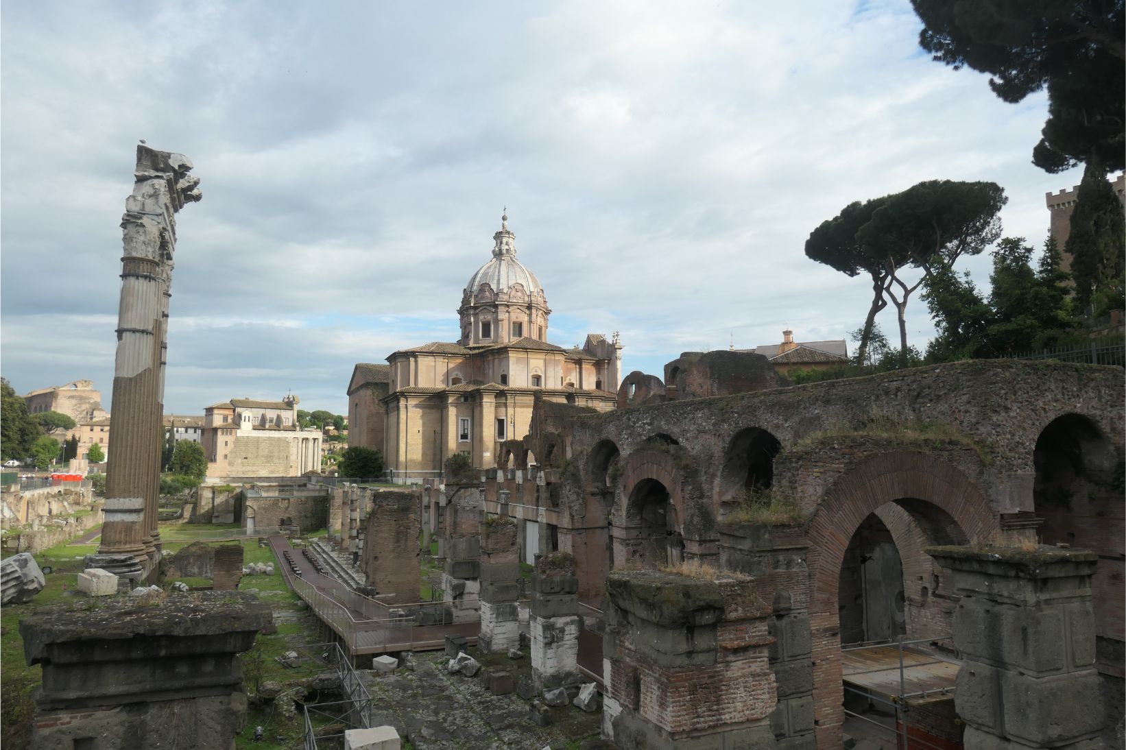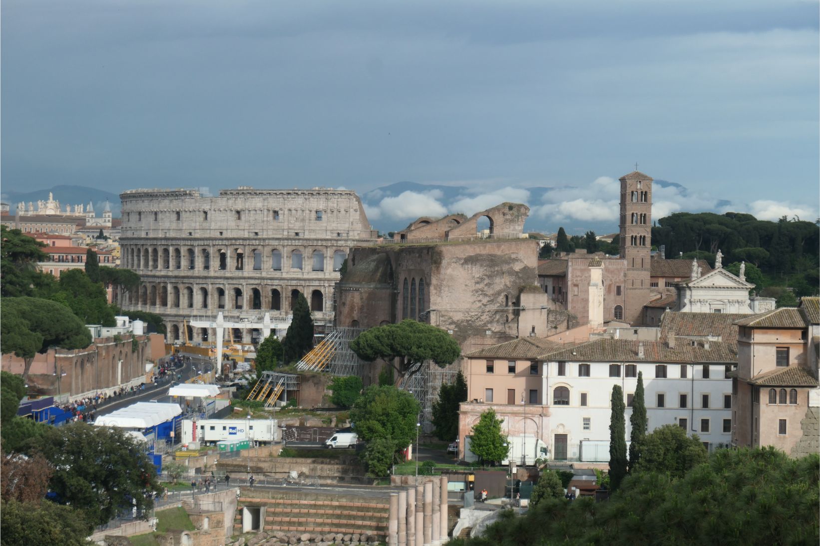 The rain had stopped and the late evening sun was lighting up the buildings on the Capitoline Hill as we began our walk back to the apartment. This is located on one of the famous Seven Hills of Rome. The Piazza del Campidoglio here was designed during the Renaissance by Michelangelo. A statue of Marcus Aurelius on his horse is the centrepiece of the piazza, surrounded by three impressive buildings, or palazzi, which are now collectively known as the Capitoline Museums. In many places we saw SPQR, which stands for Senātus Populusque Rōmānus in Latin, and literally translates to The Senate and People of Rome.